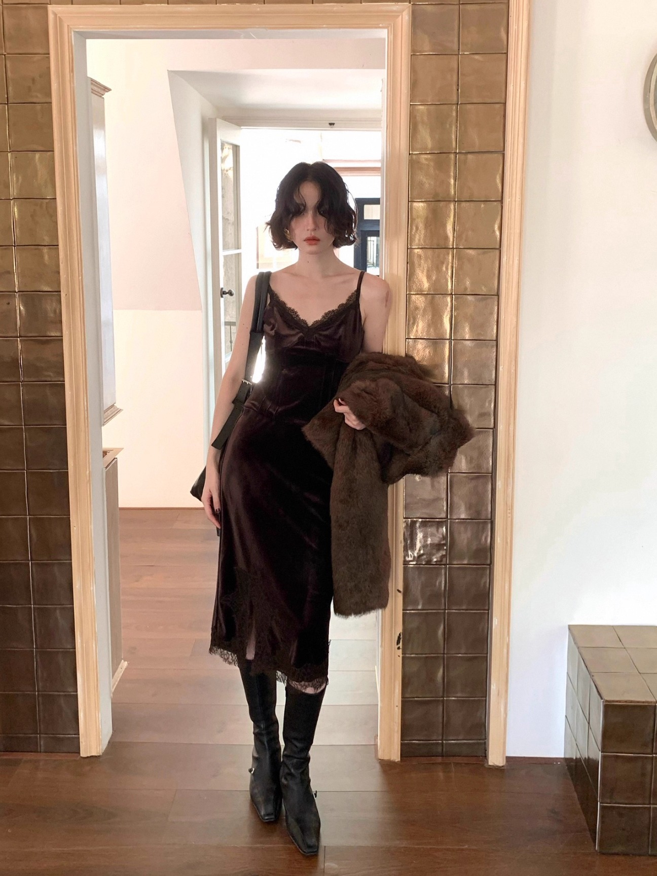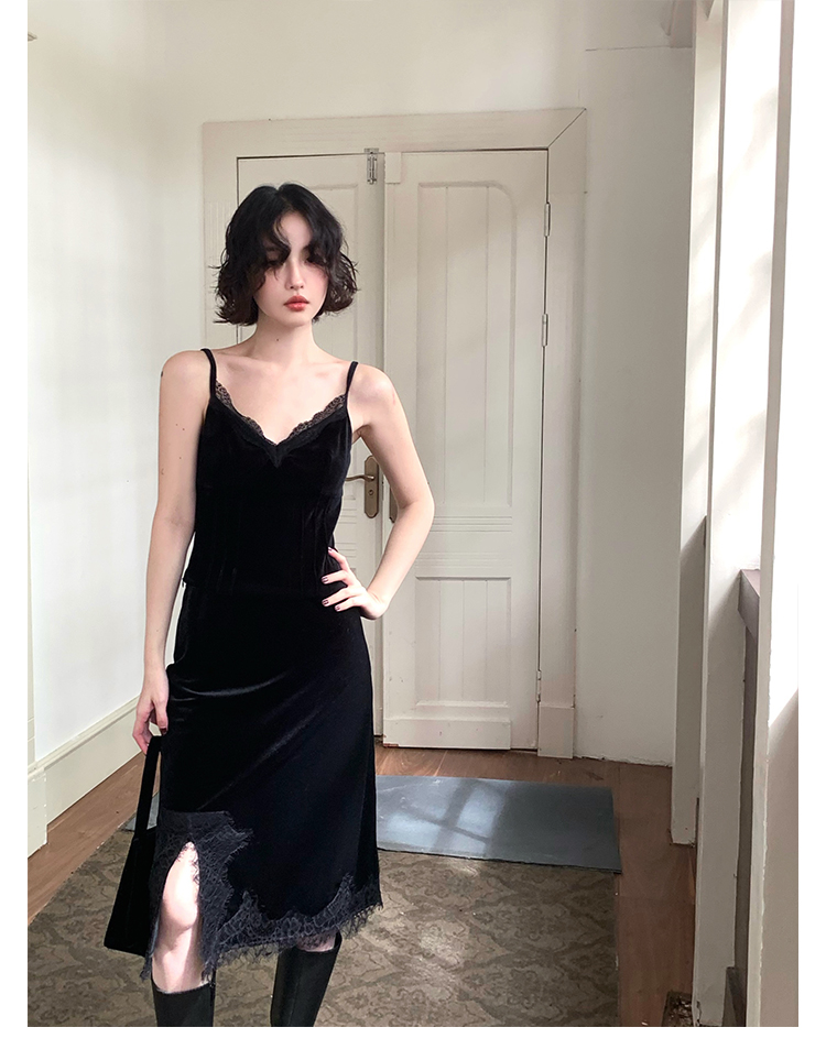 Night Banquet Whisper Lace Slip Base Top – Retro 2025 Fall/Winter Collection