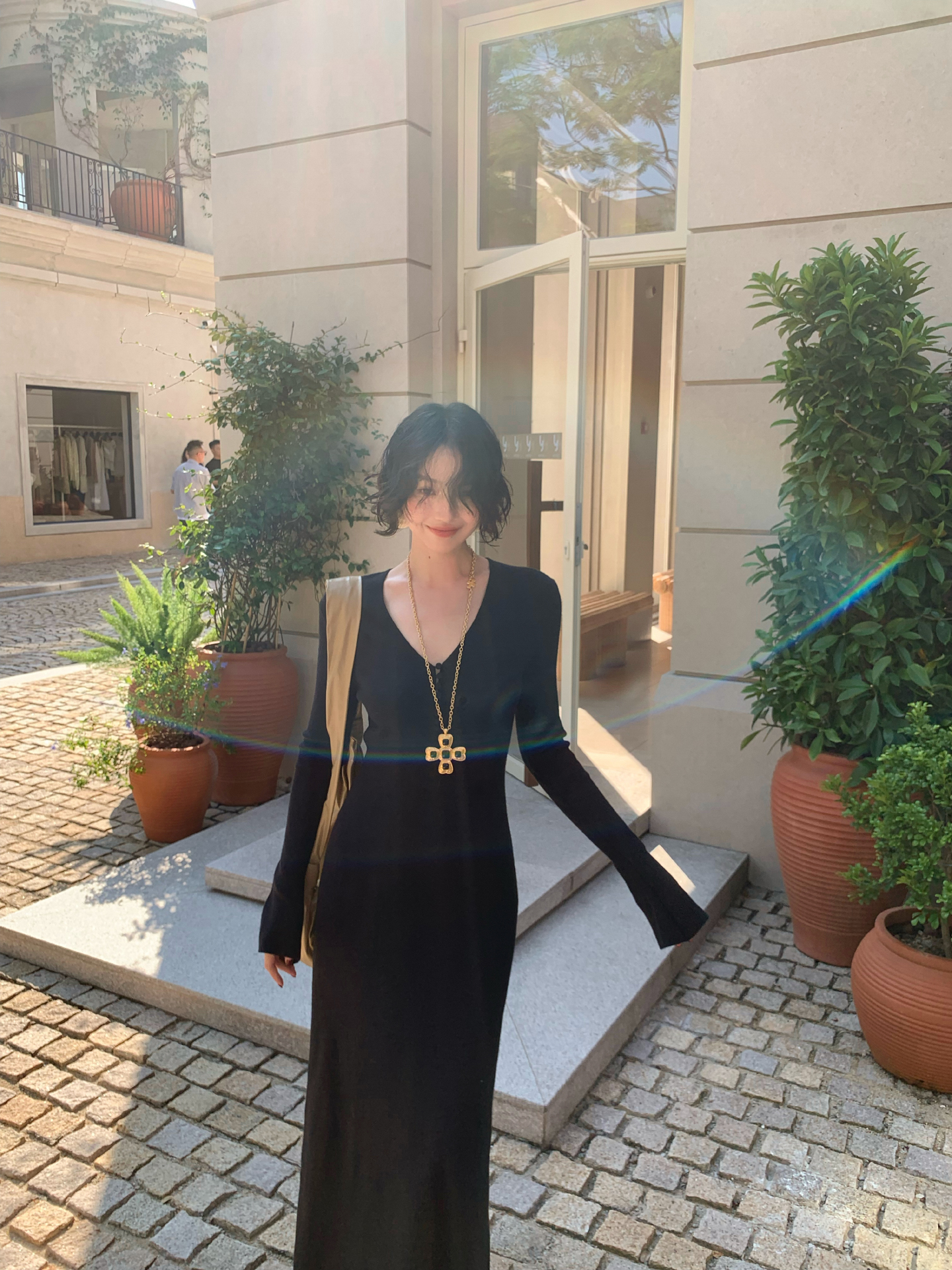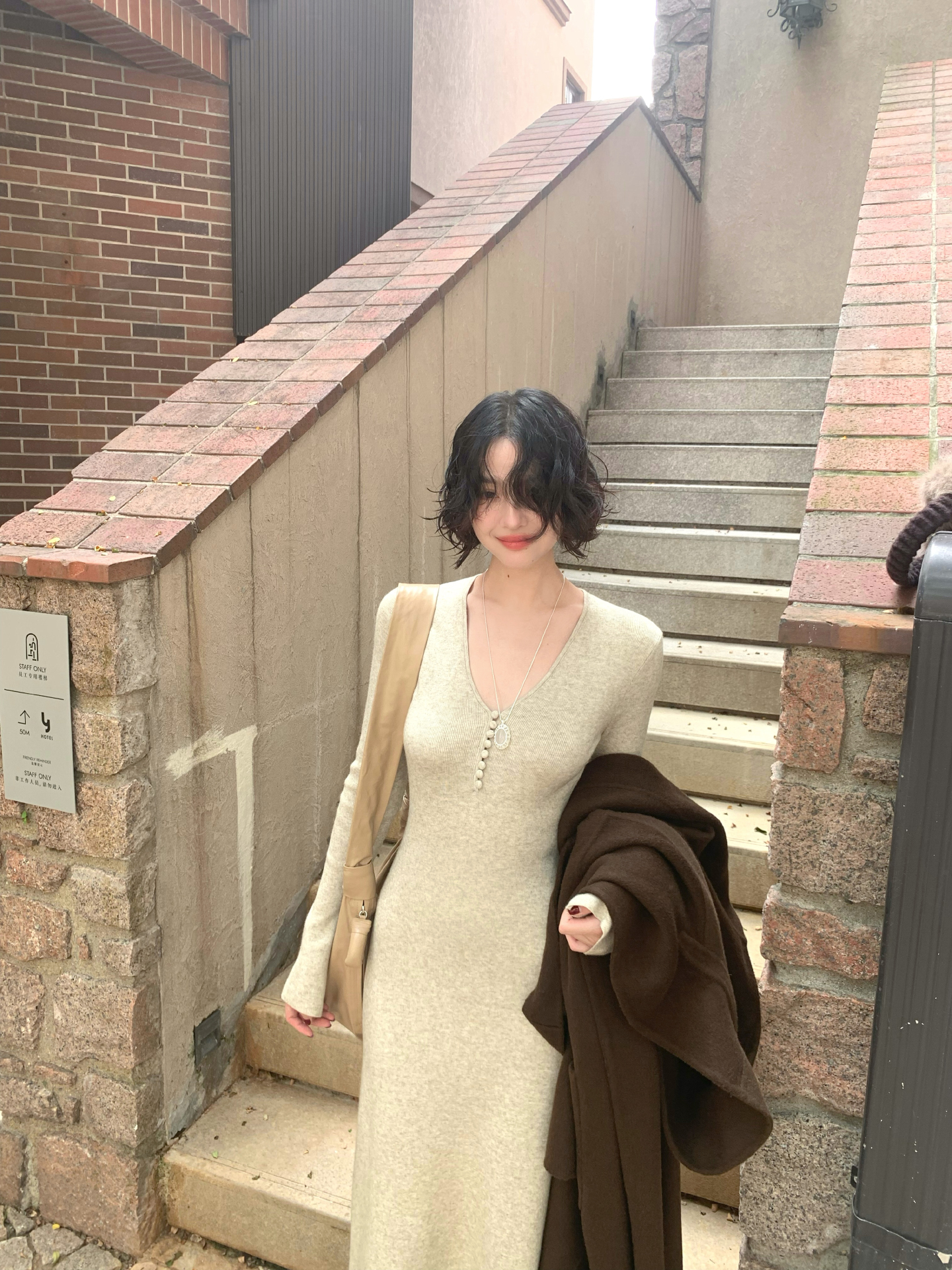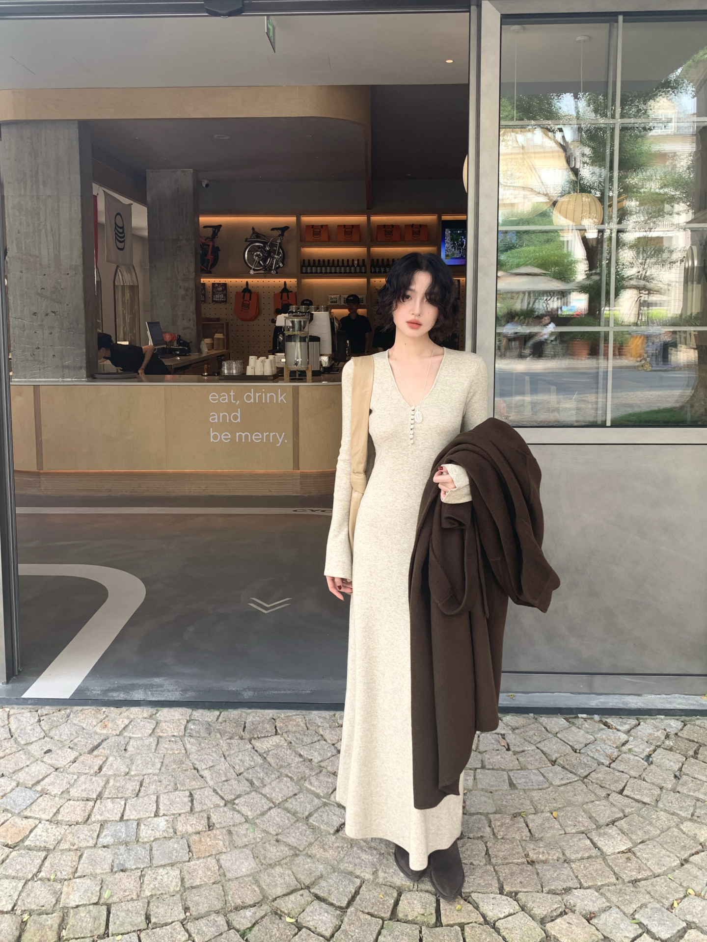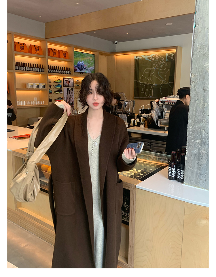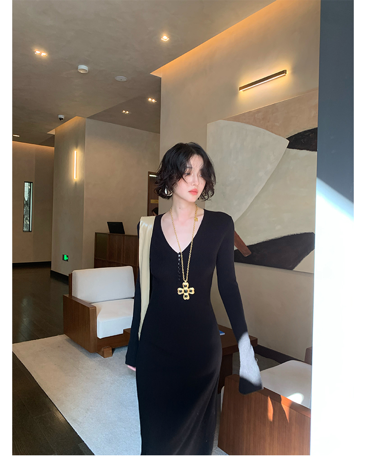 Wine Noon V-Neck Knit Long Dress – Retro Hong Kong Fall/Winter Collection 2025