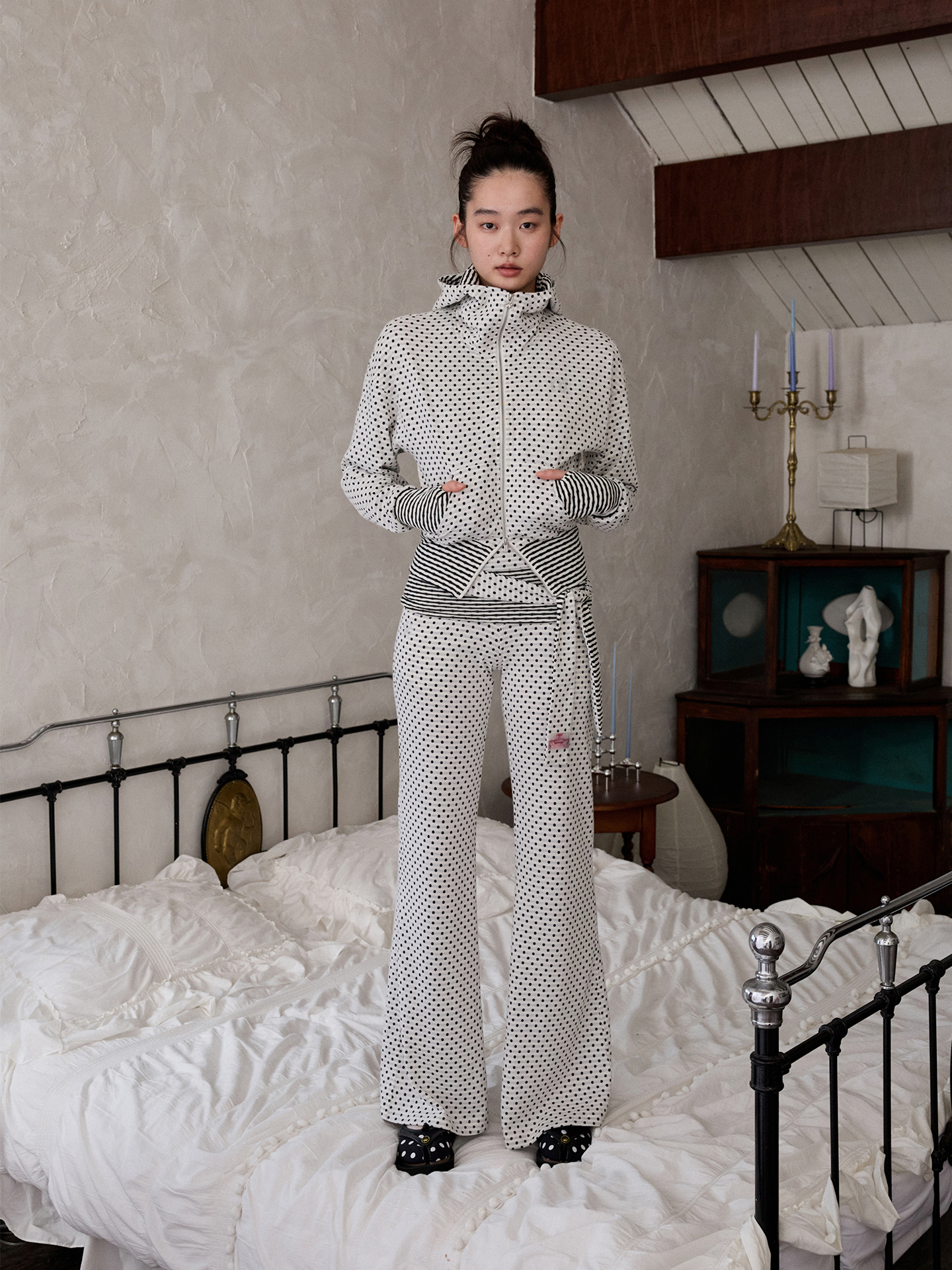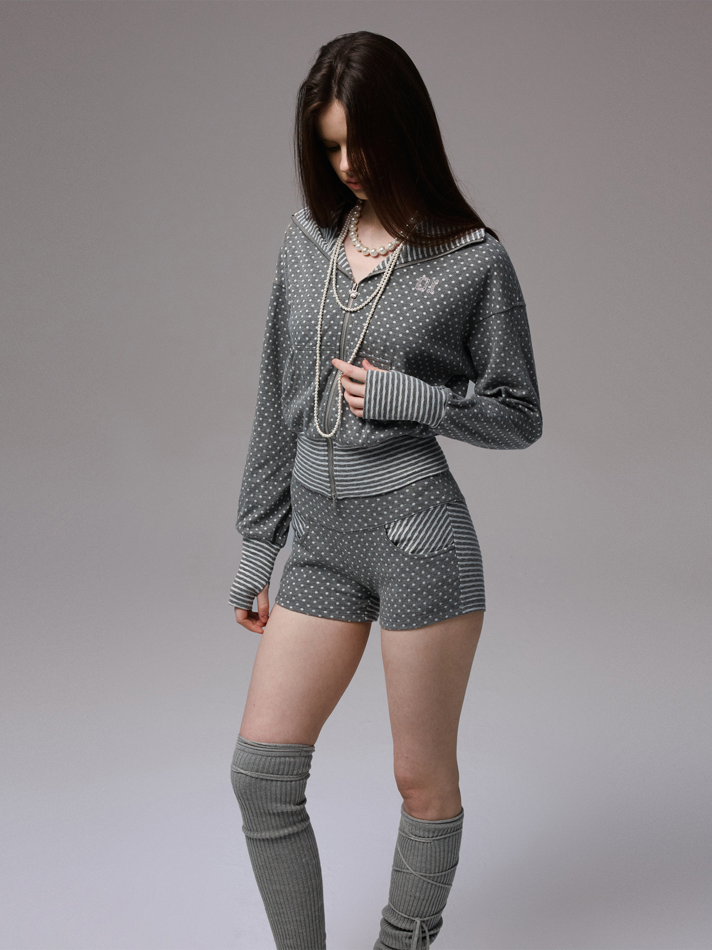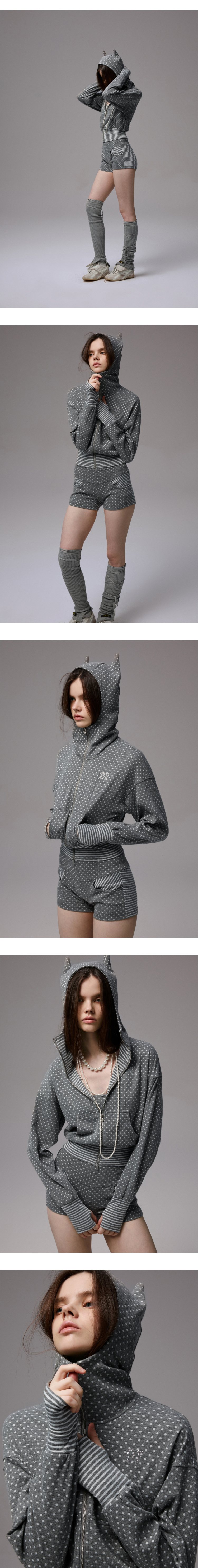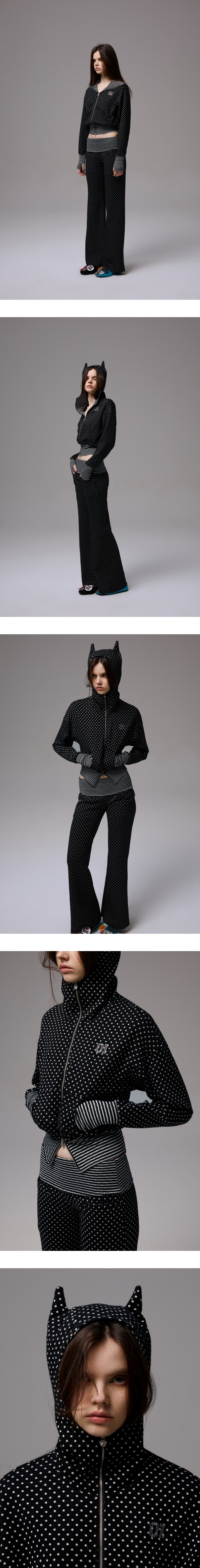 Polka Dot Devil Horn Cropped Hoodie – Slim Fit Streetwear Jacket