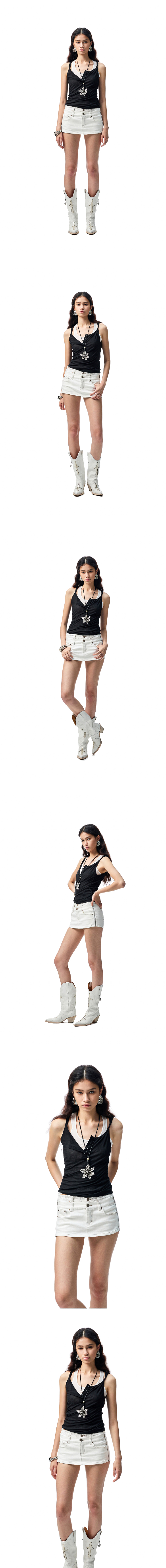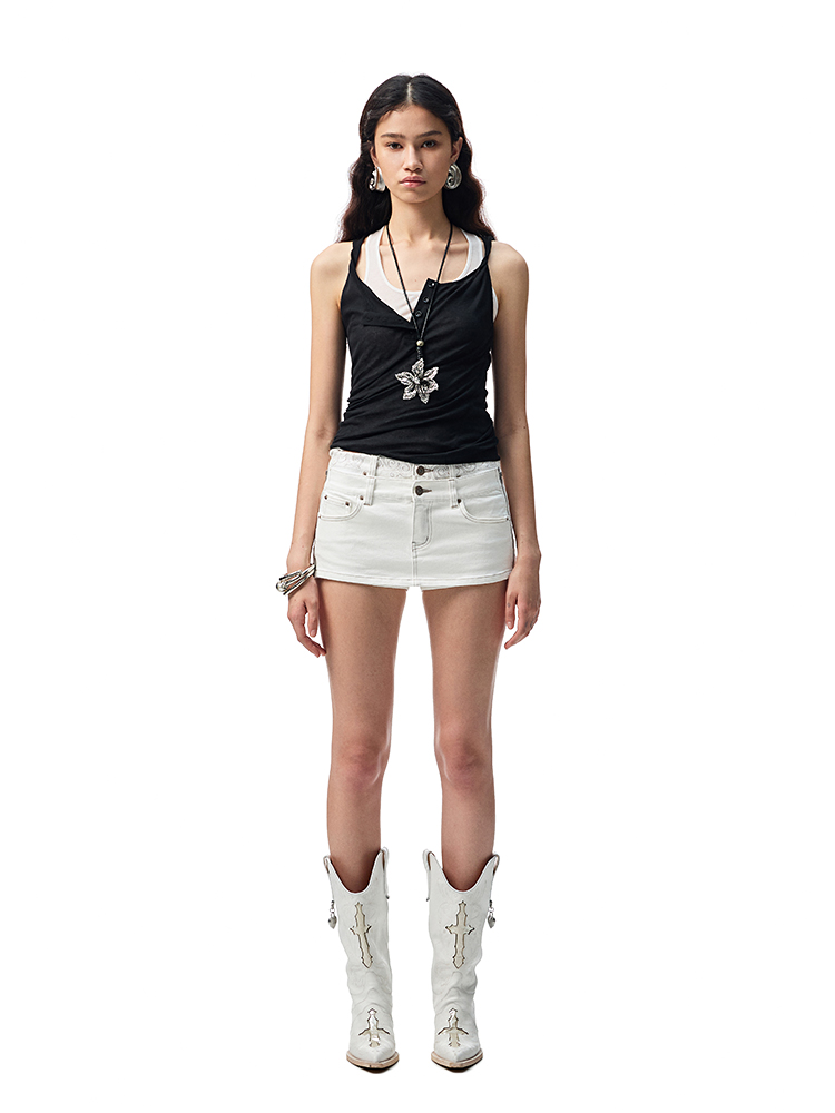 Double-Waist Detachable Denim Culottes – Slim Stretch Convertible Skirt Pants
