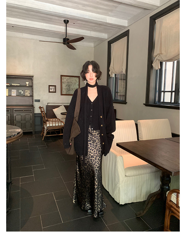 Ethereal Charm Leopard Print Fishtail Midi Skirt – Hong Kong Retro Autumn