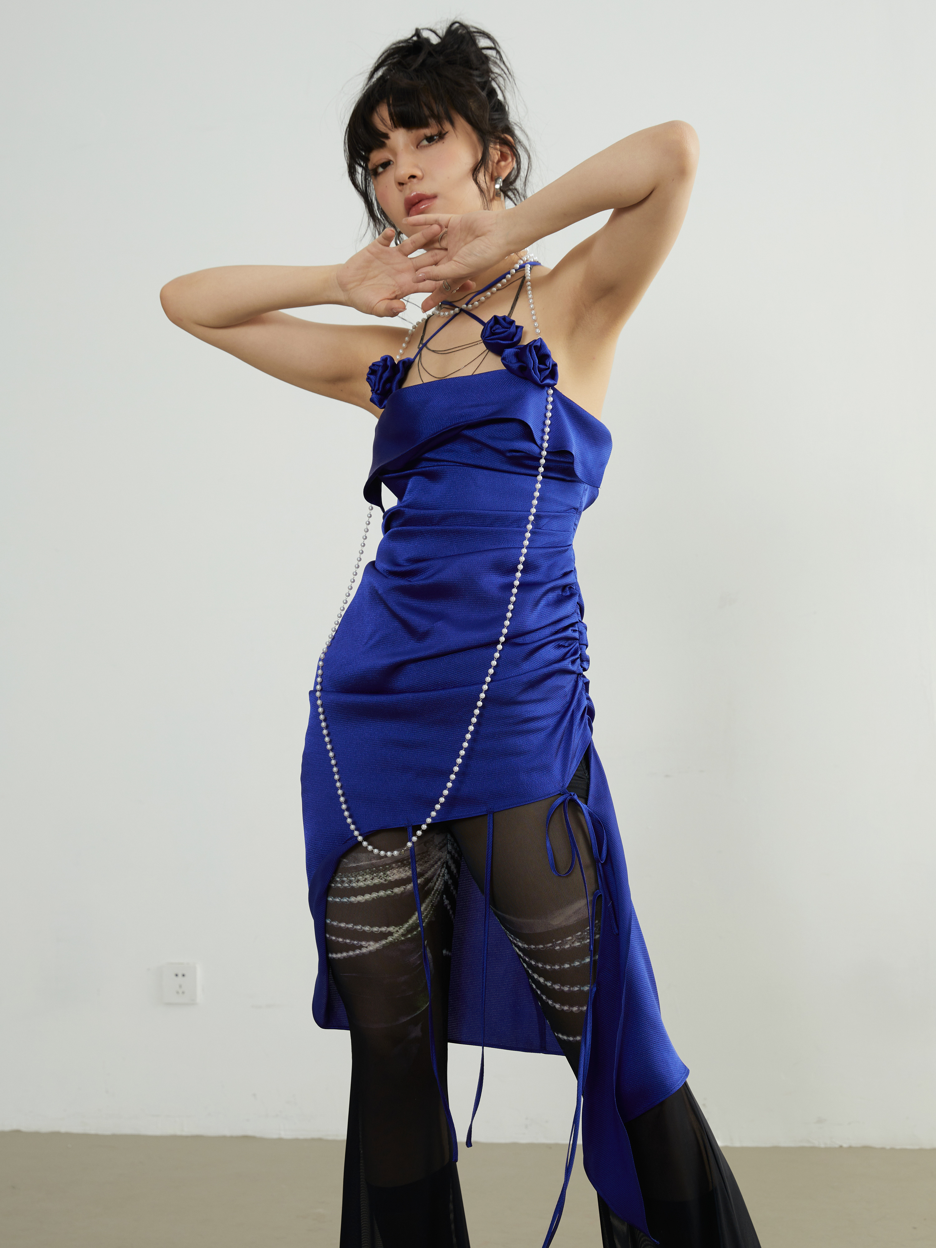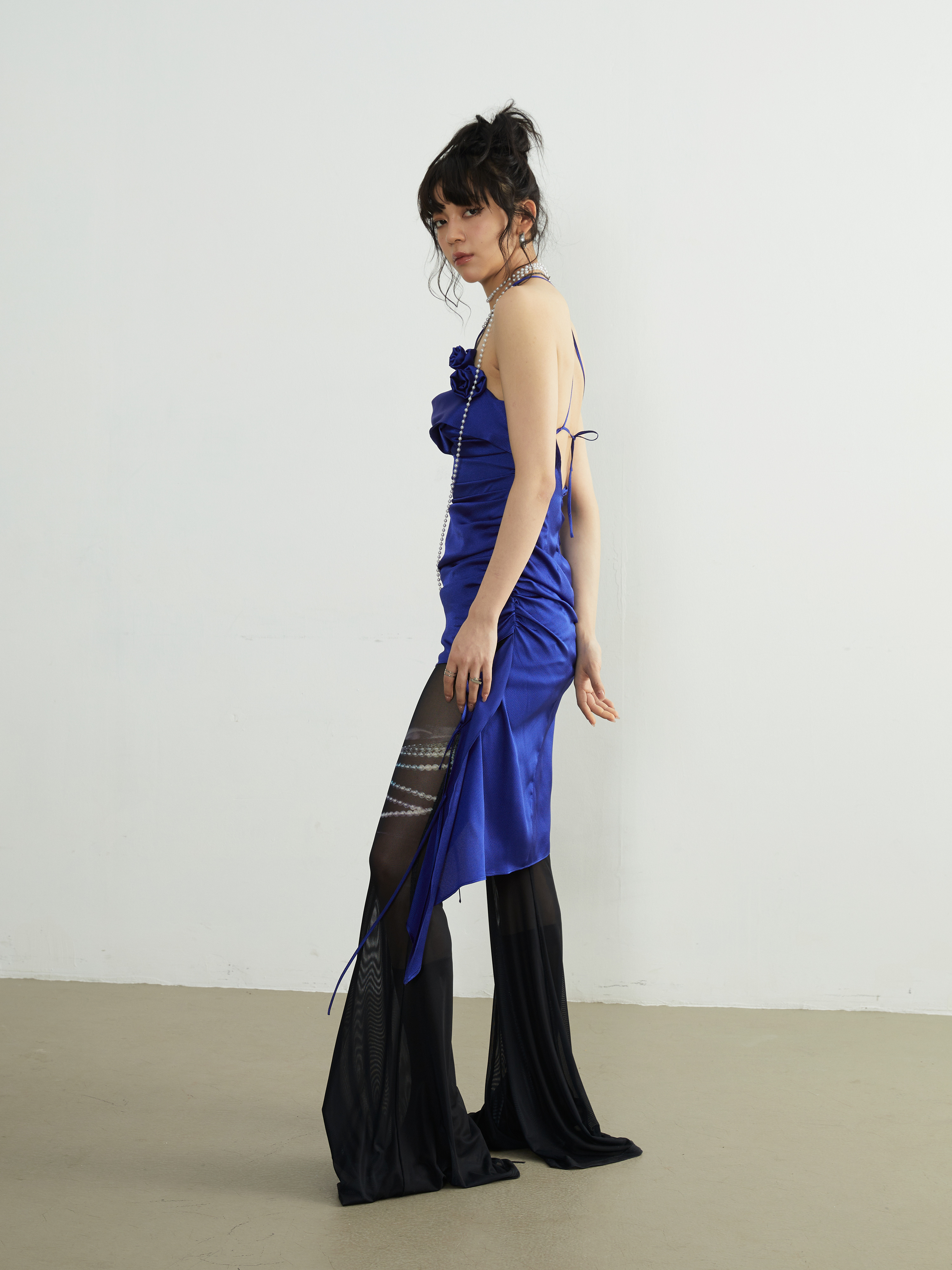 Юбка с вертикальным вырезом и цветочным декором на бретельках