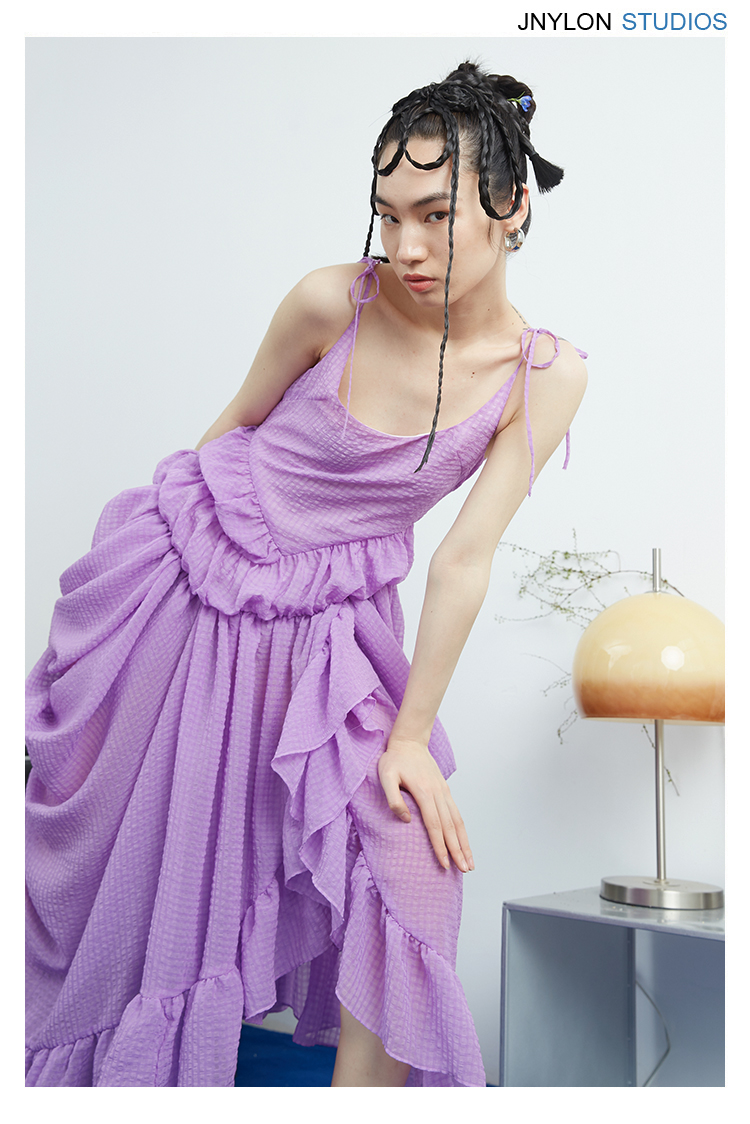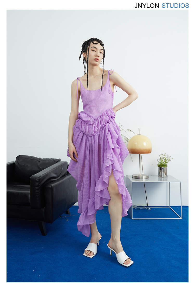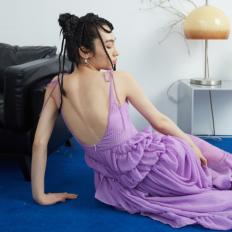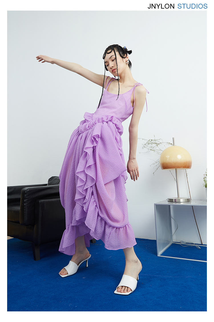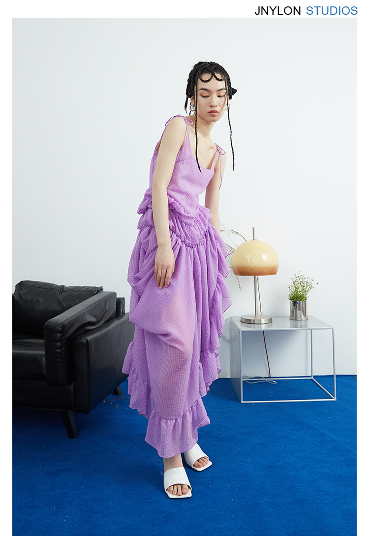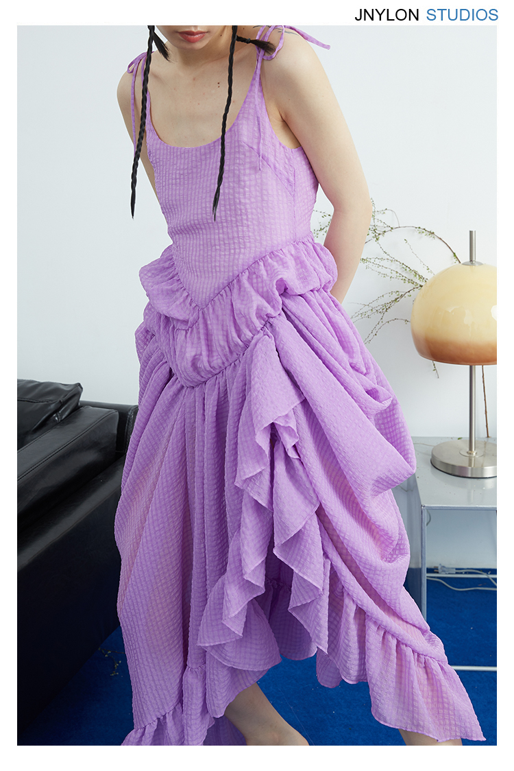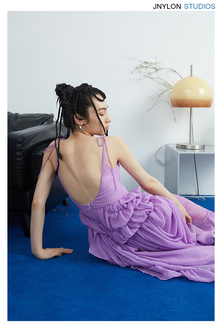 Плиссированная длинная юбка с подтяжками на спине с вертикальным вырезом