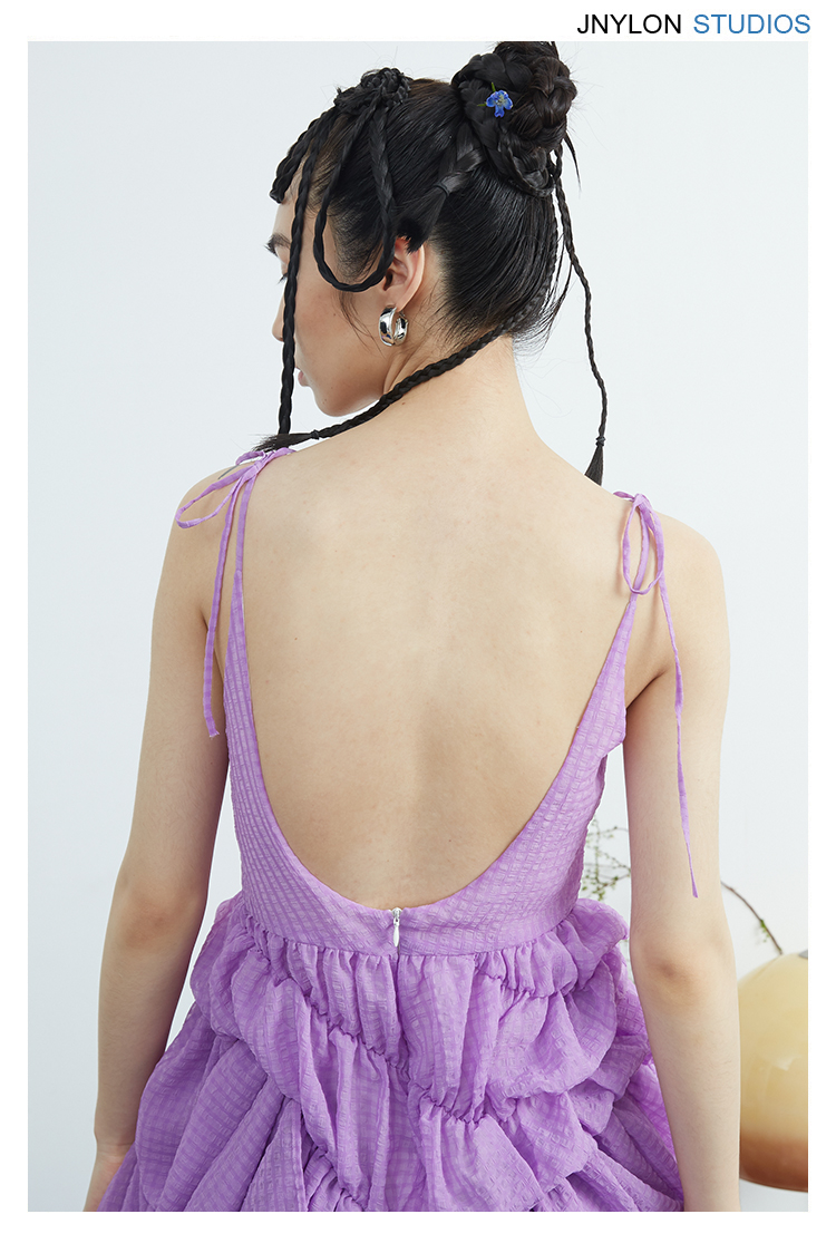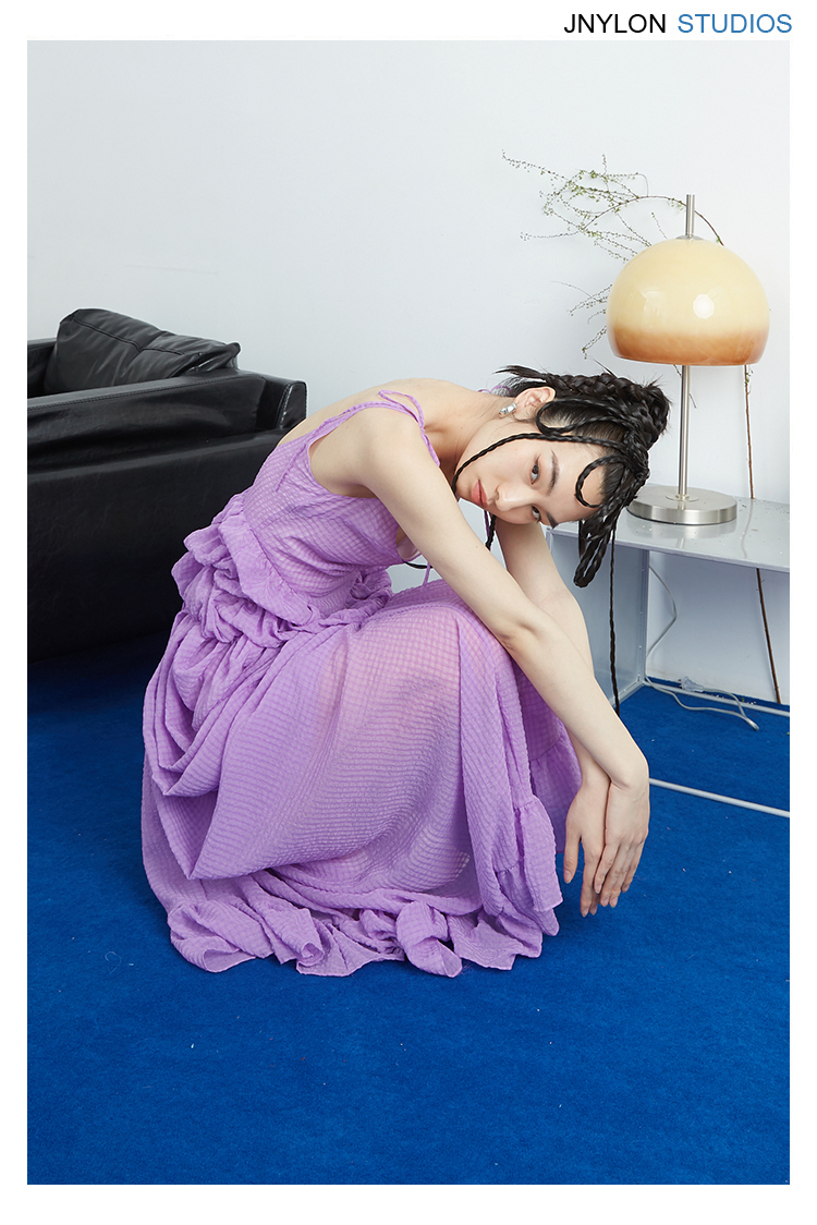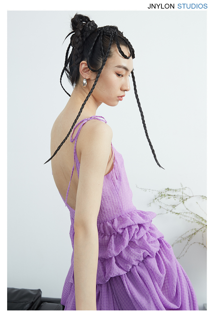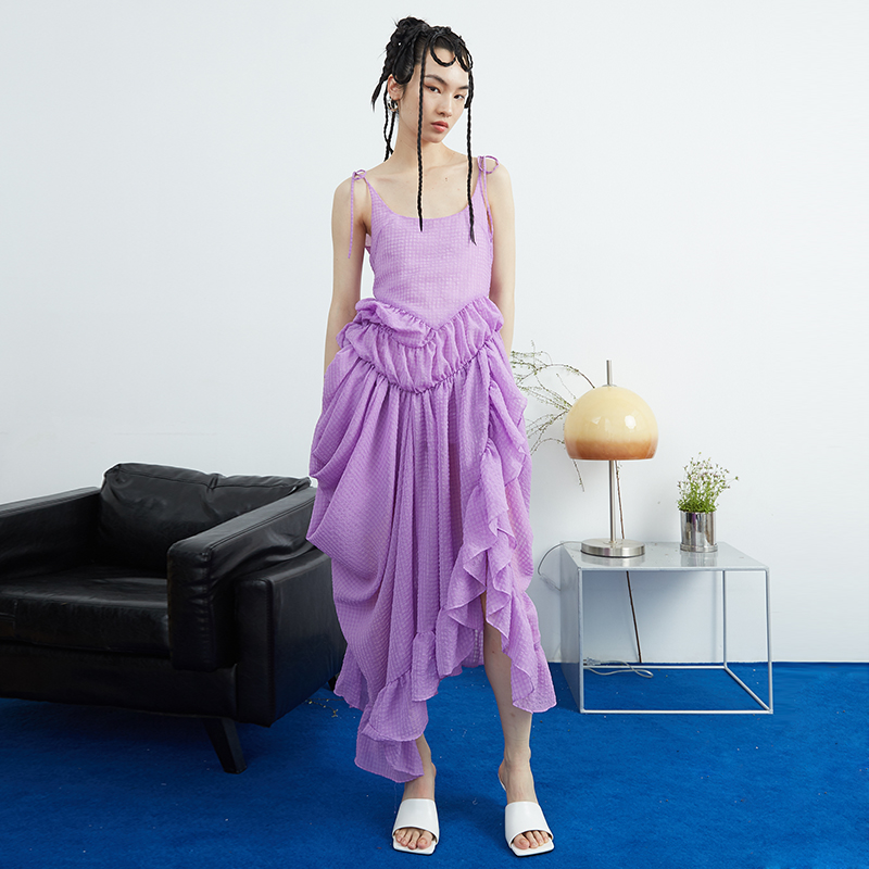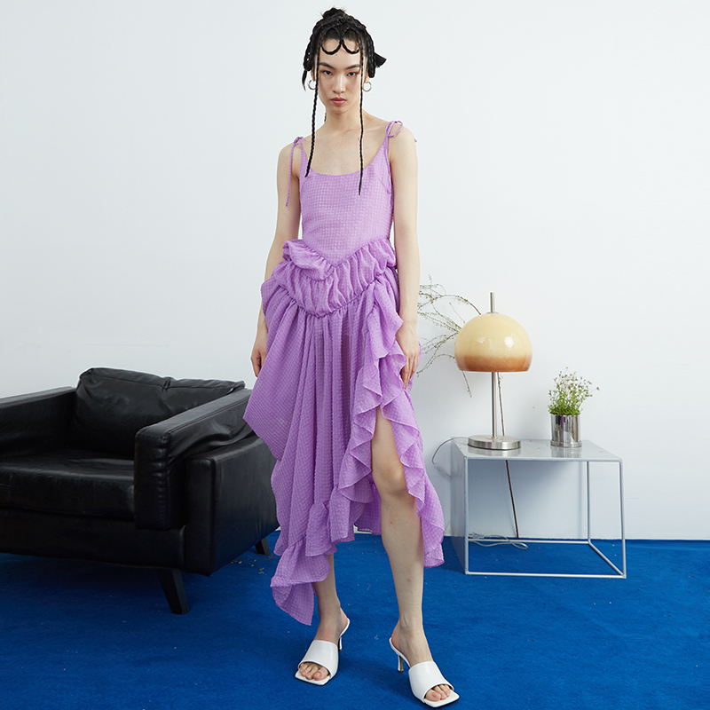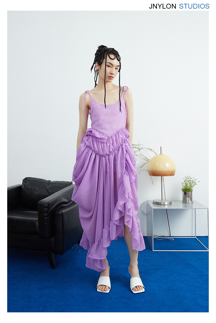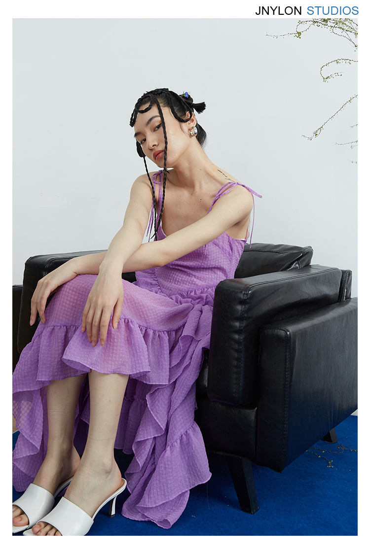 Плиссированная длинная юбка с подтяжками на спине с вертикальным вырезом