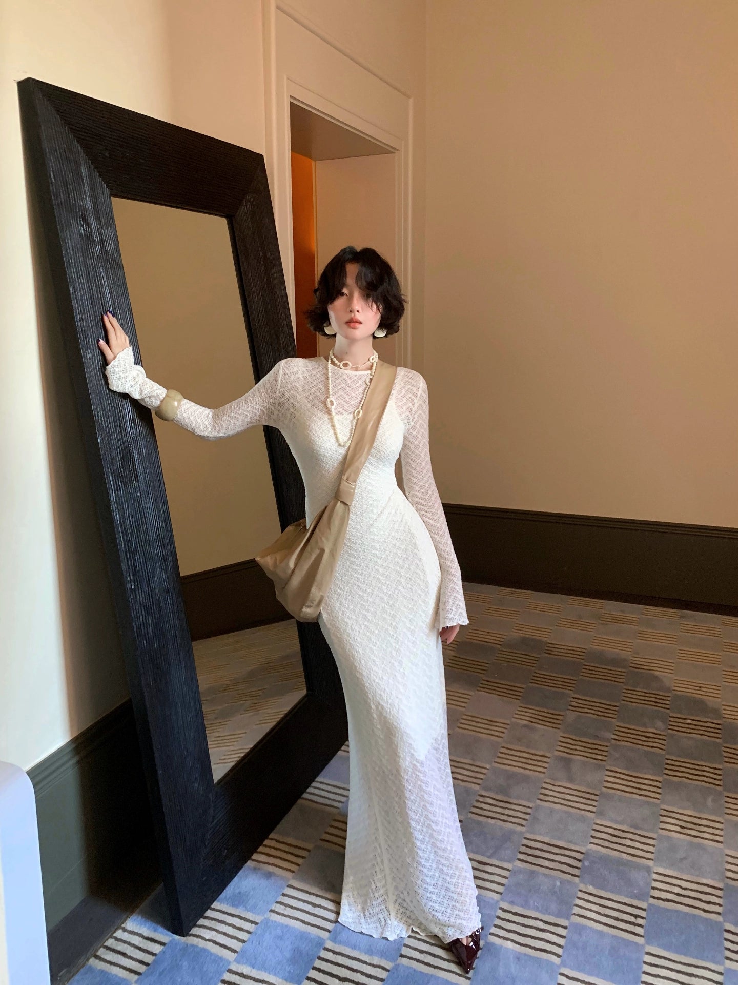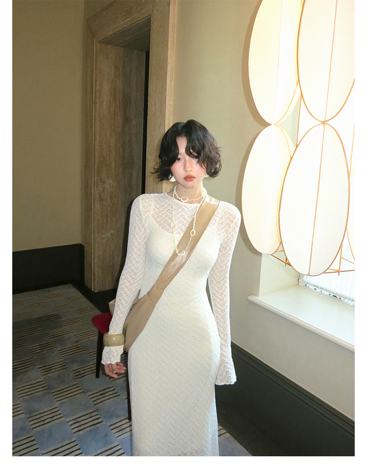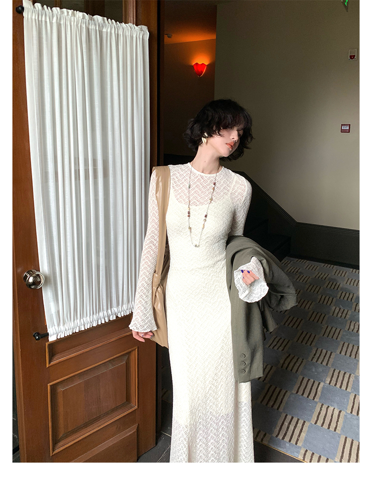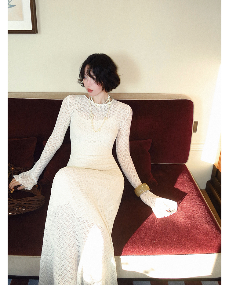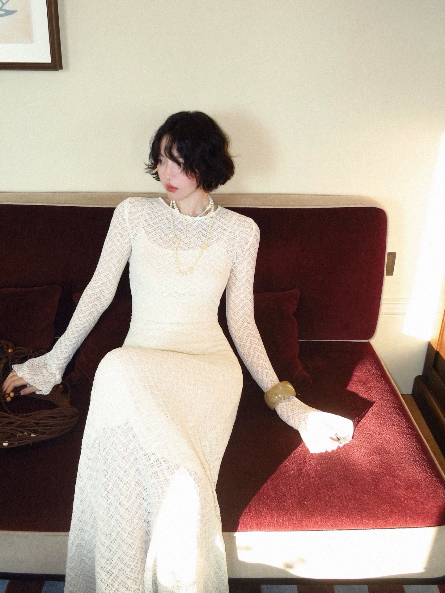 Moonlight Cicada Sheer Lace Long Dress with Anti-Exposure Slip – Vintage Romance
