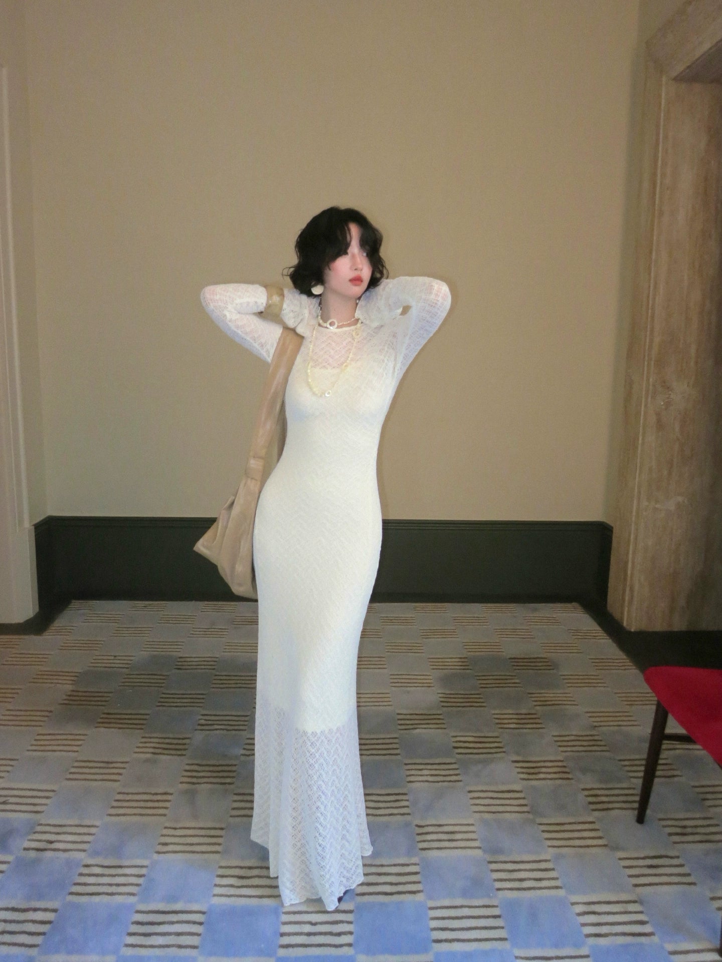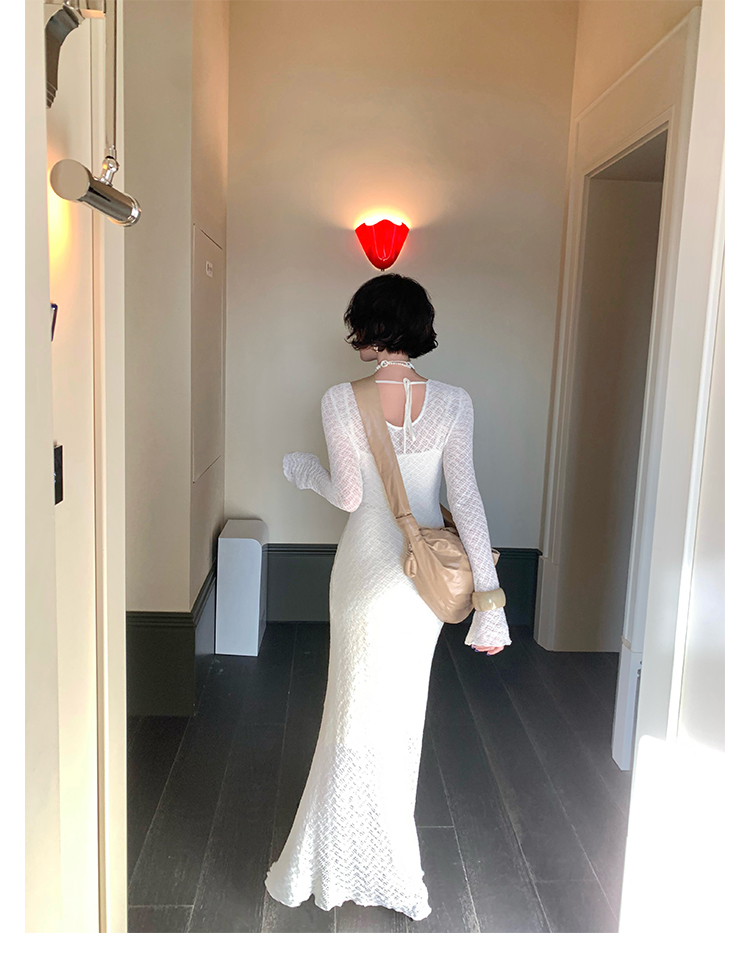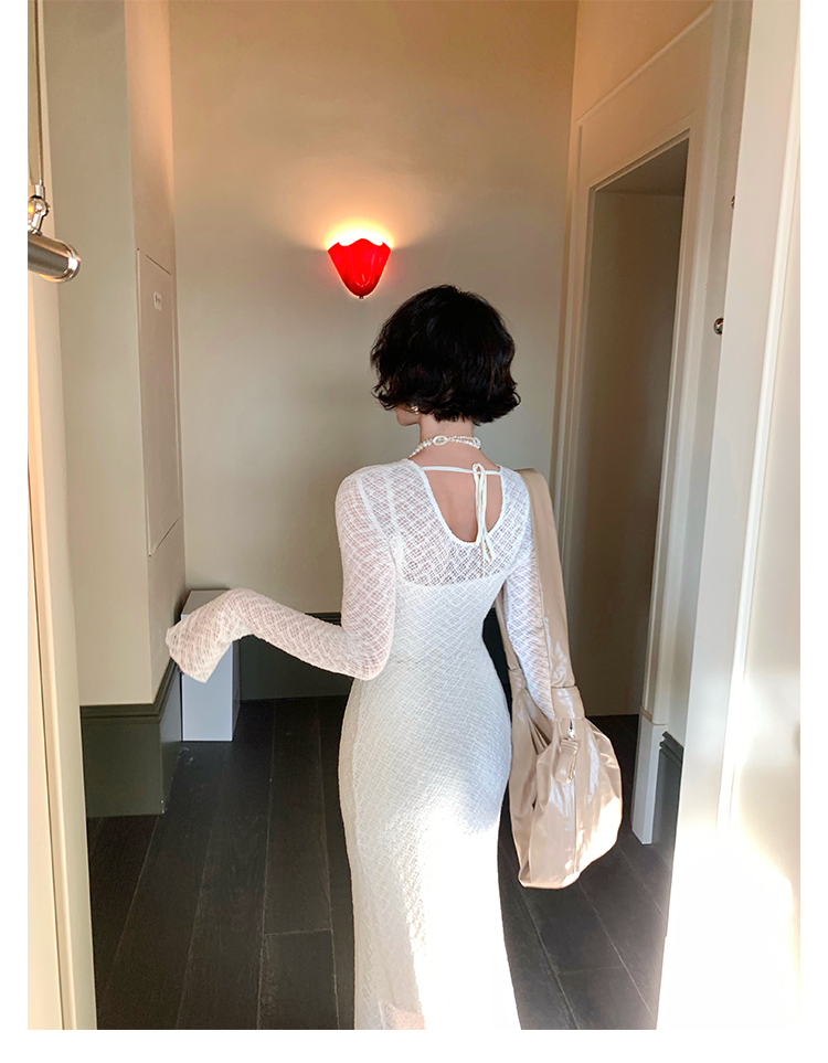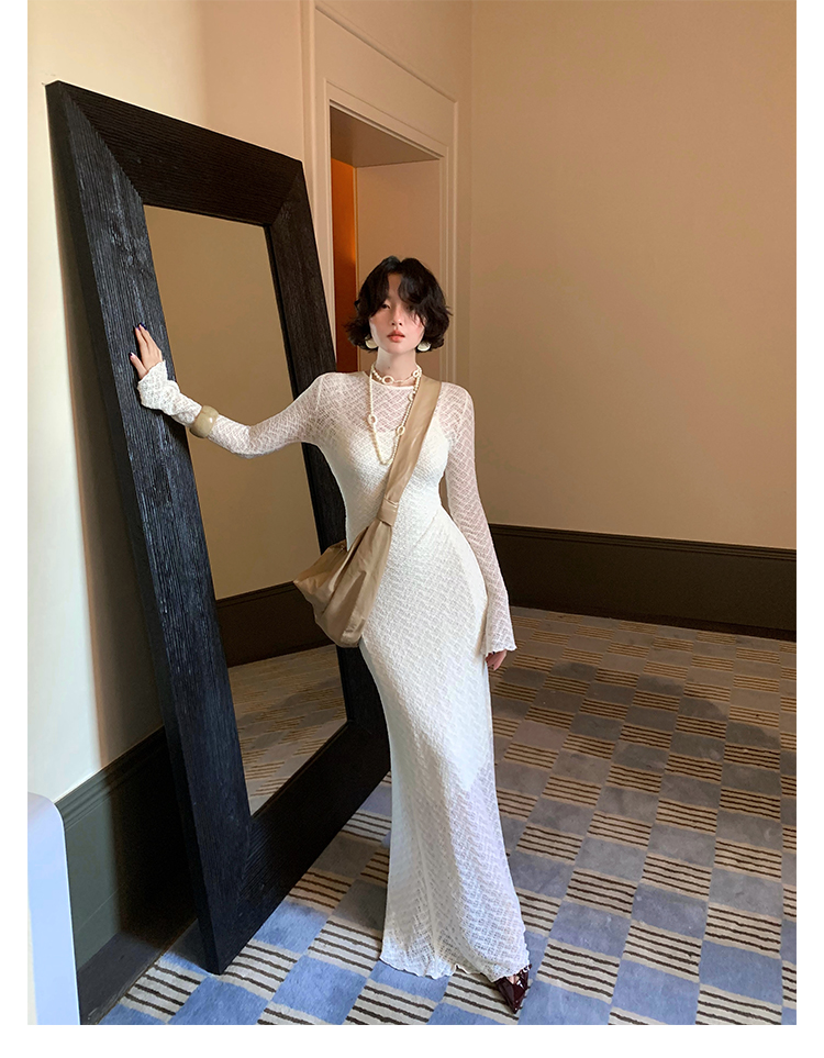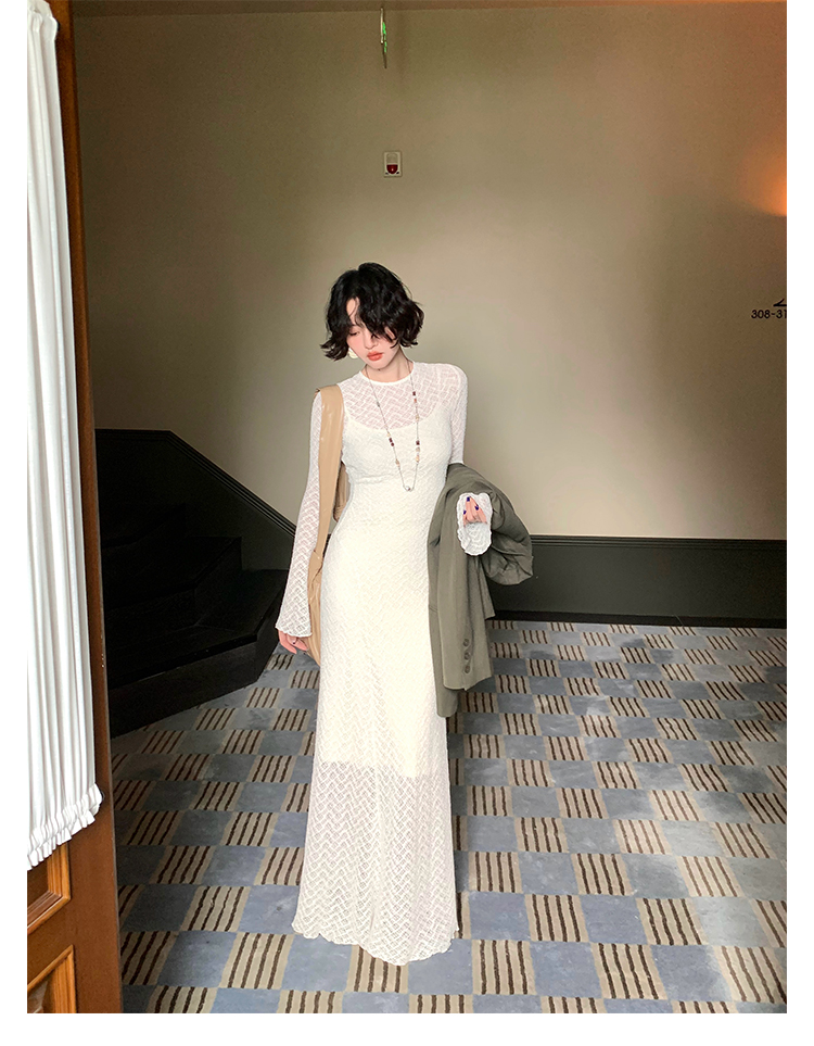 Moonlight Cicada Sheer Lace Long Dress with Anti-Exposure Slip – Vintage Romance