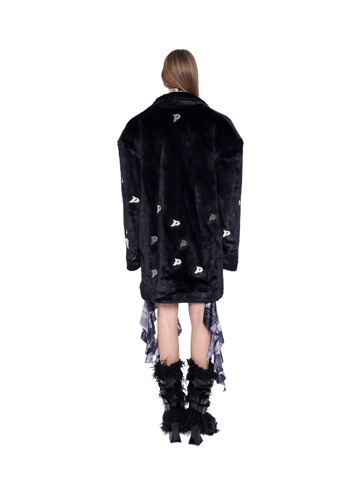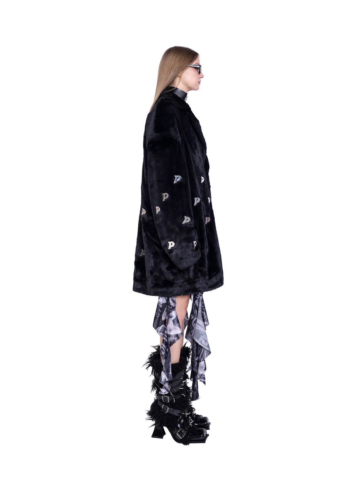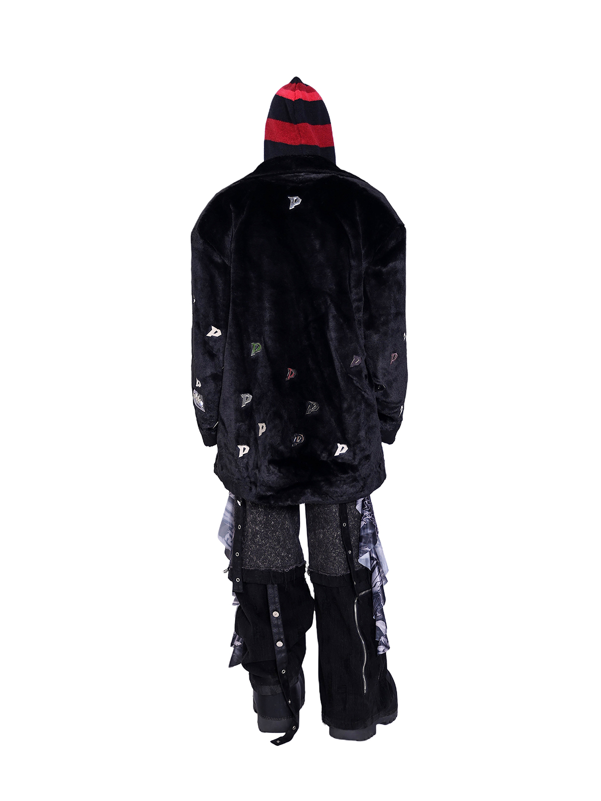 Metal Accent Letter P Jacket with Fur Shoulder Padding (Unisex)