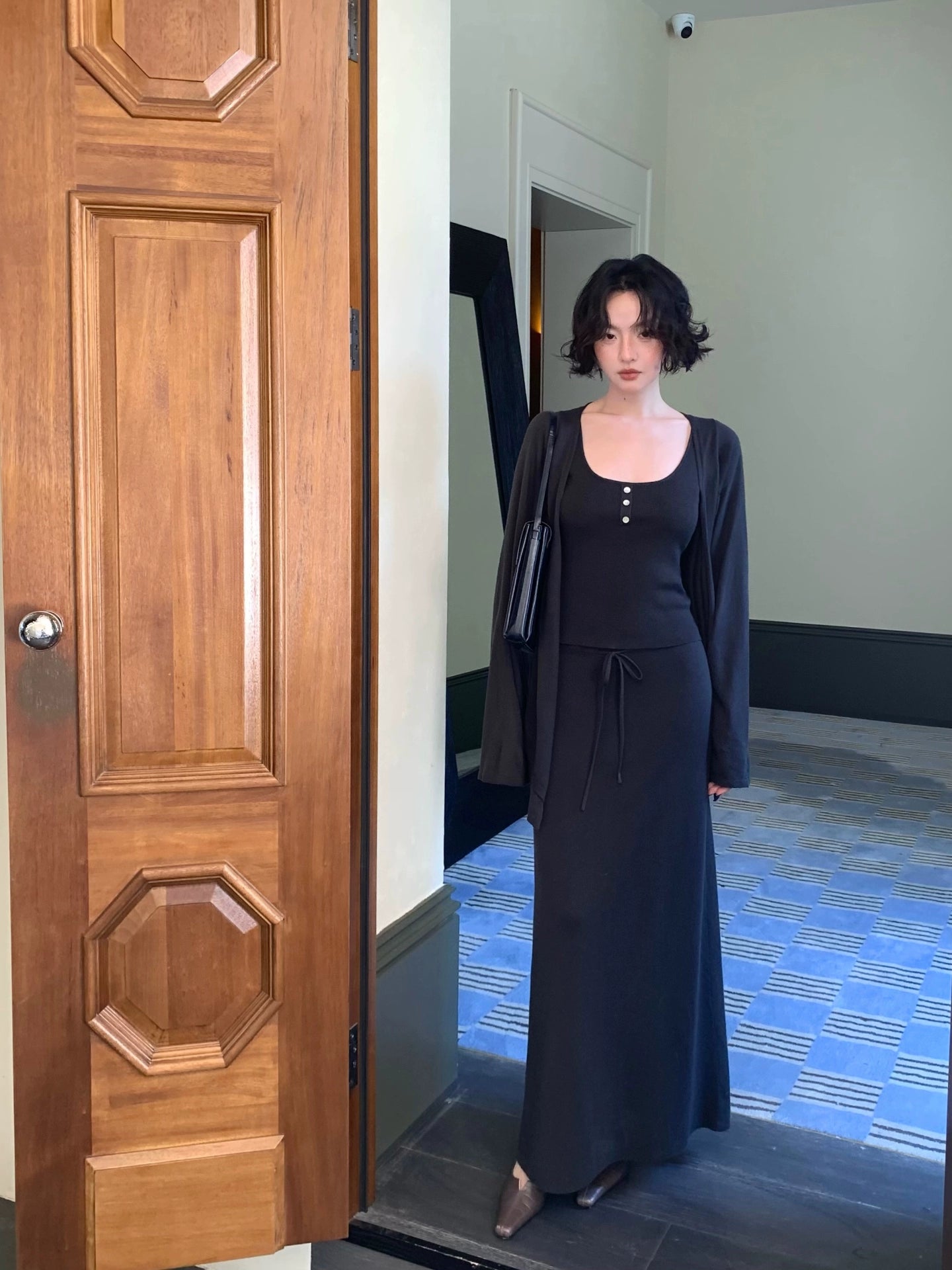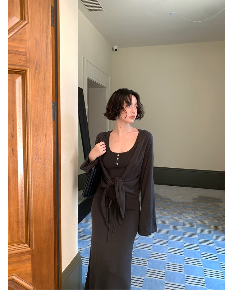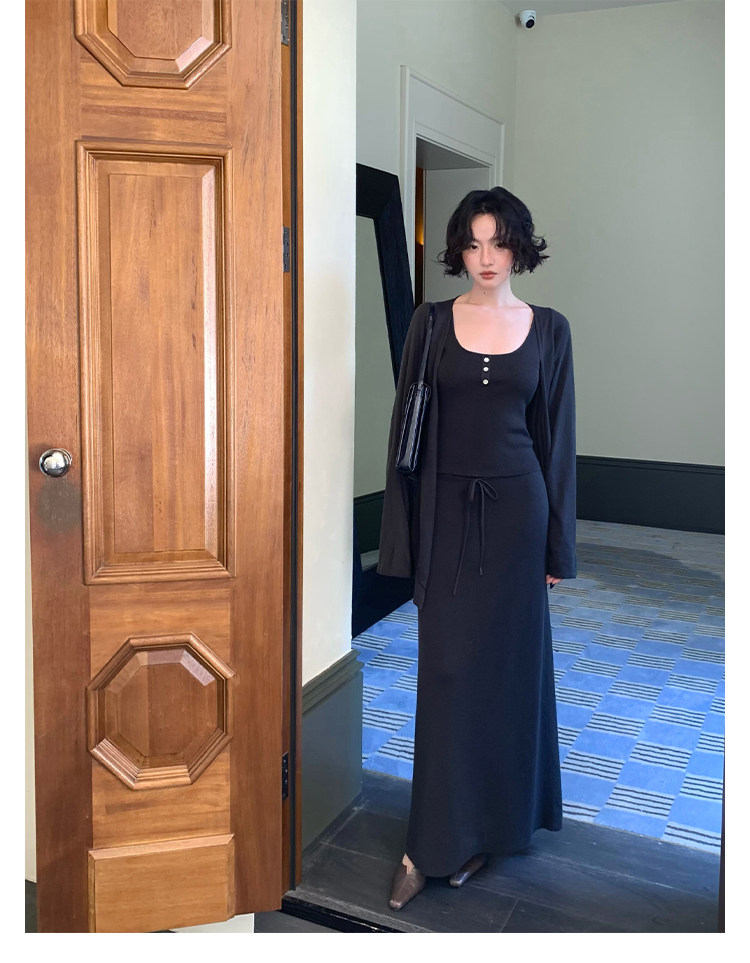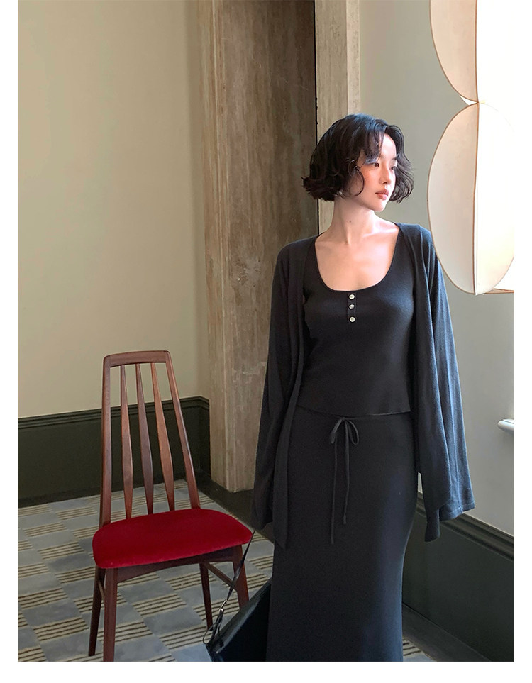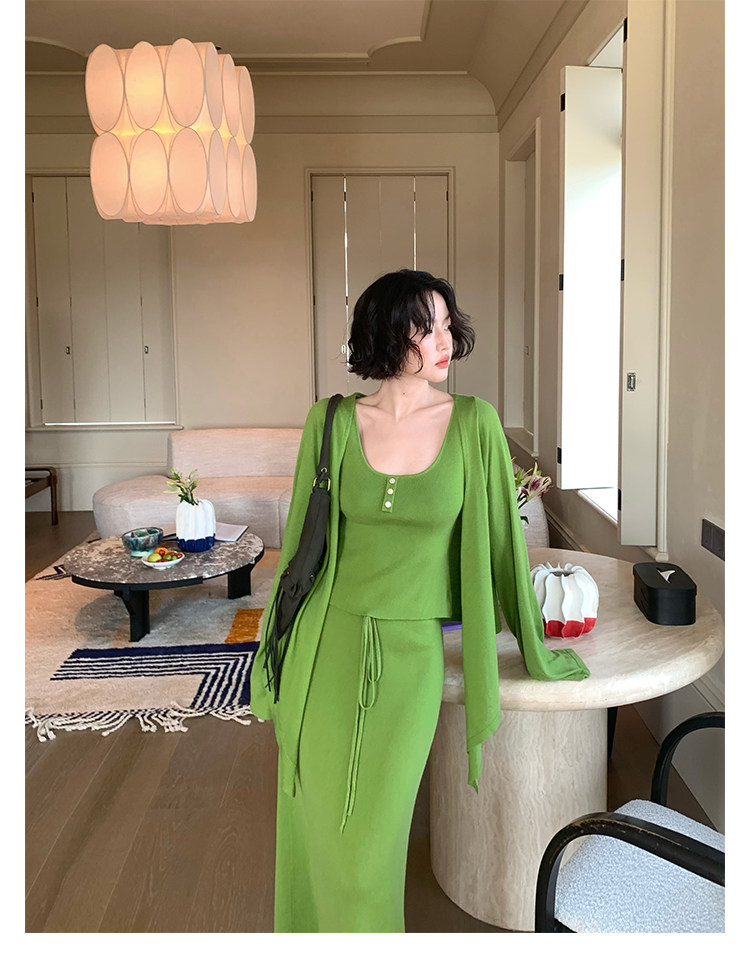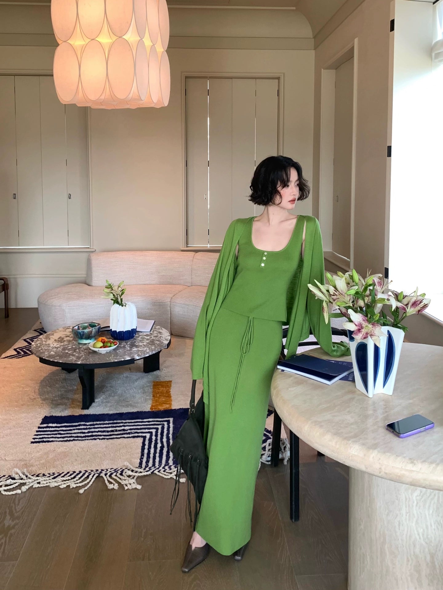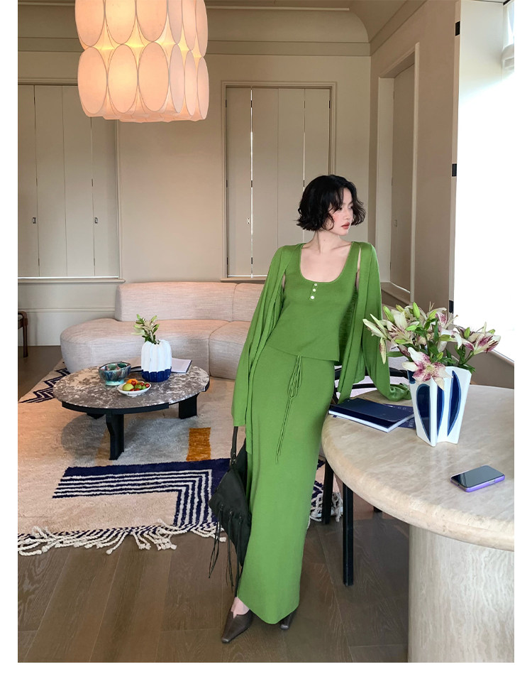 Qingman Knit Cardigan, Camisole & Skirt Three-Piece Set – Hong Kong Retro