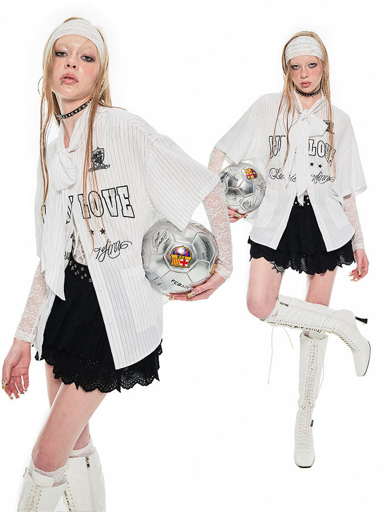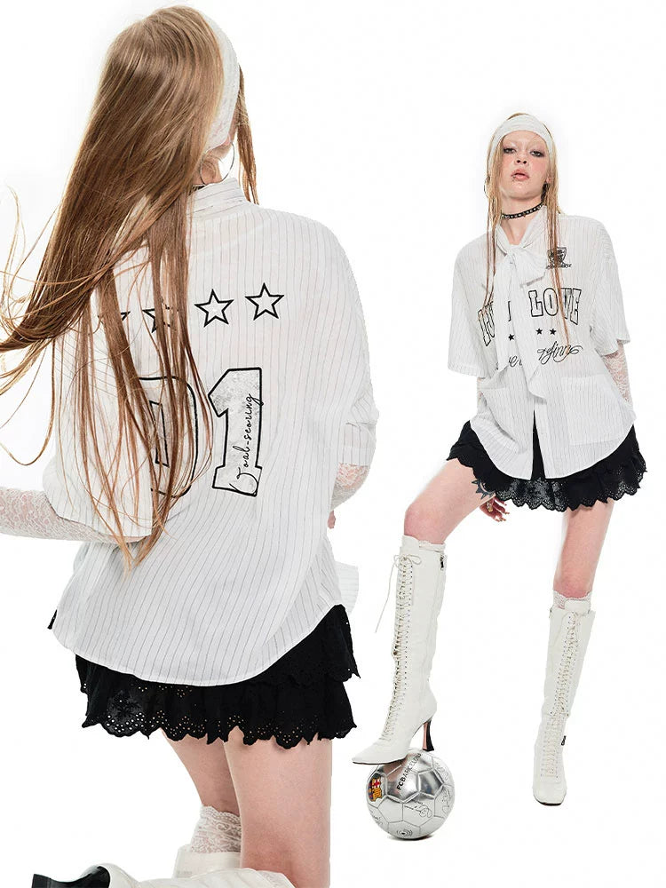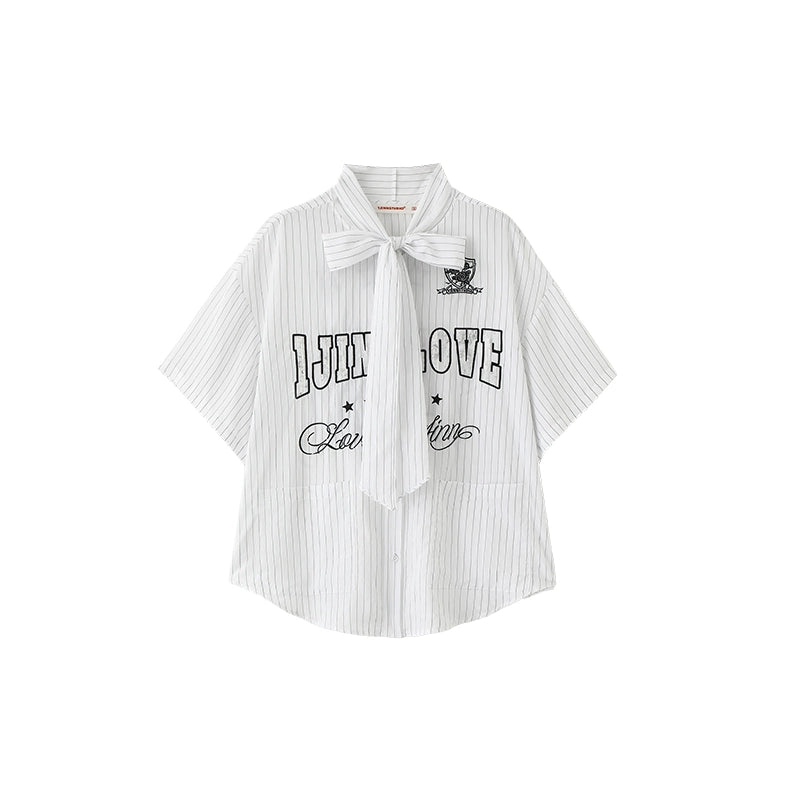 Ribbon Tie Jersey Stripe T-Shirt – Loose Fit Summer Design for Women