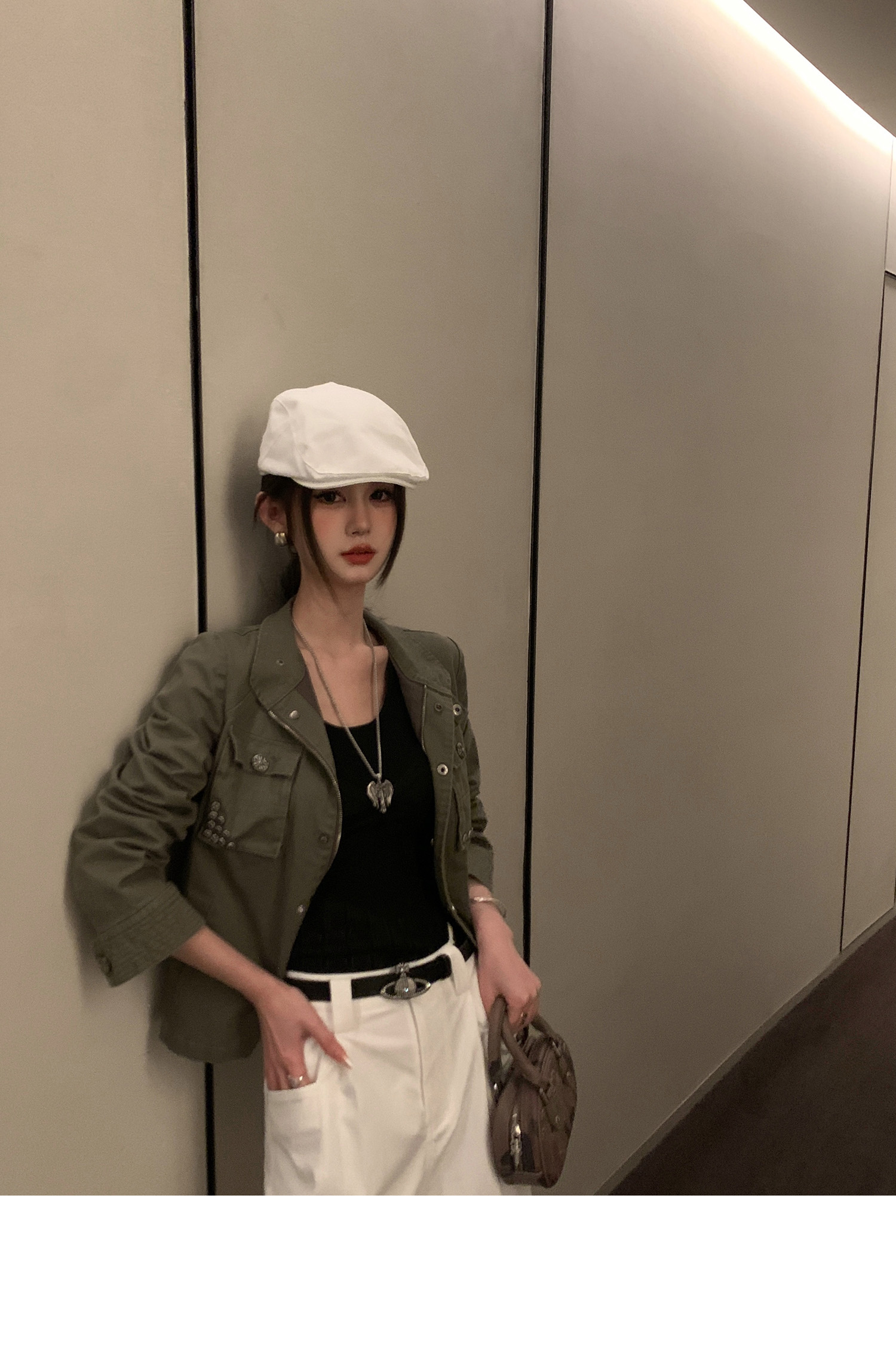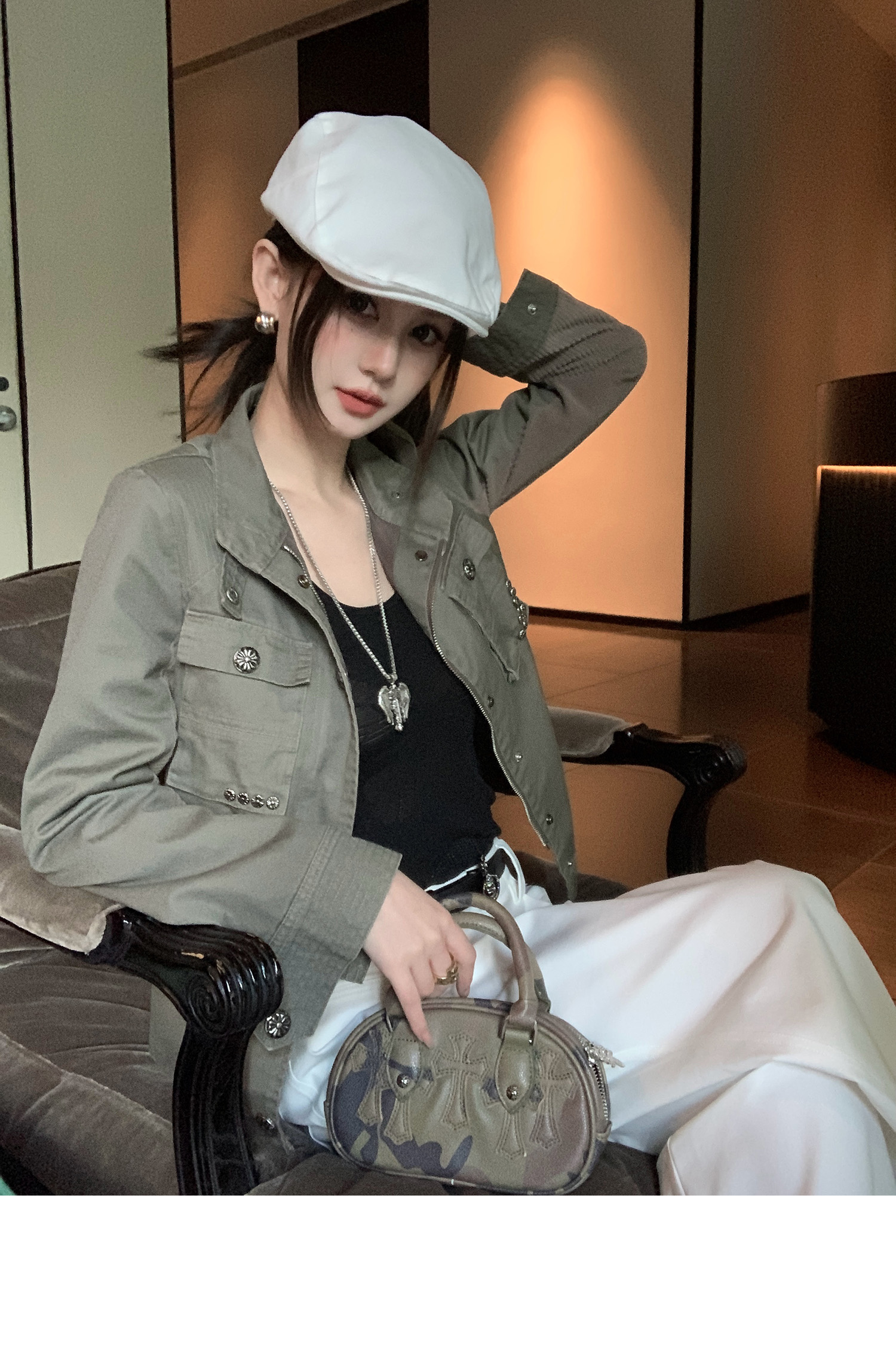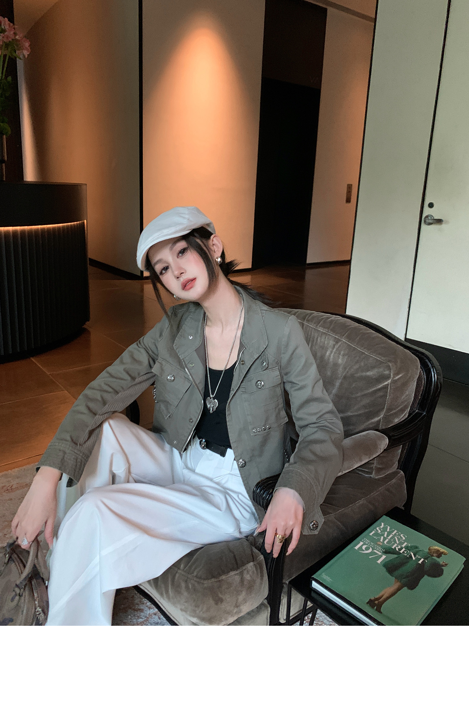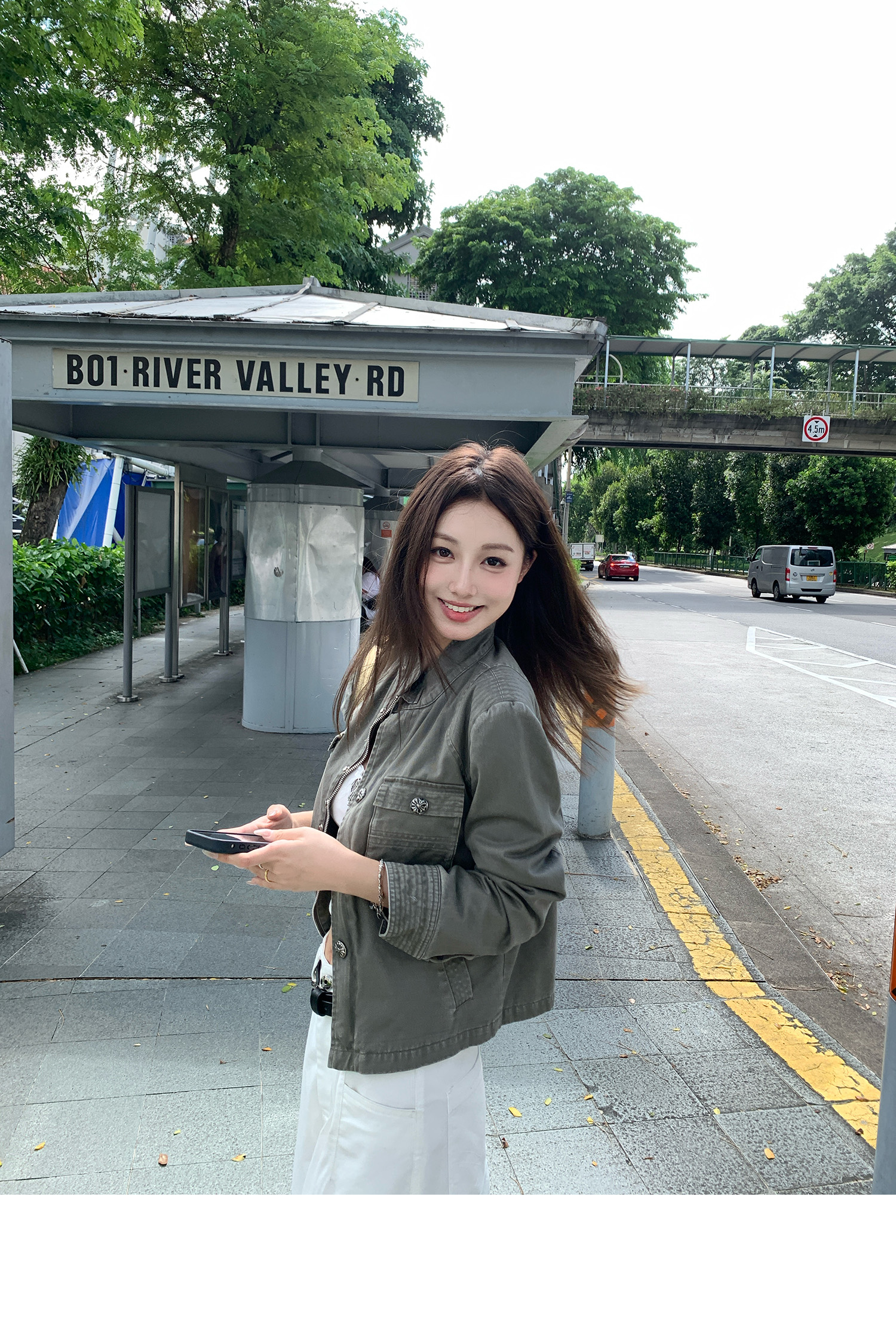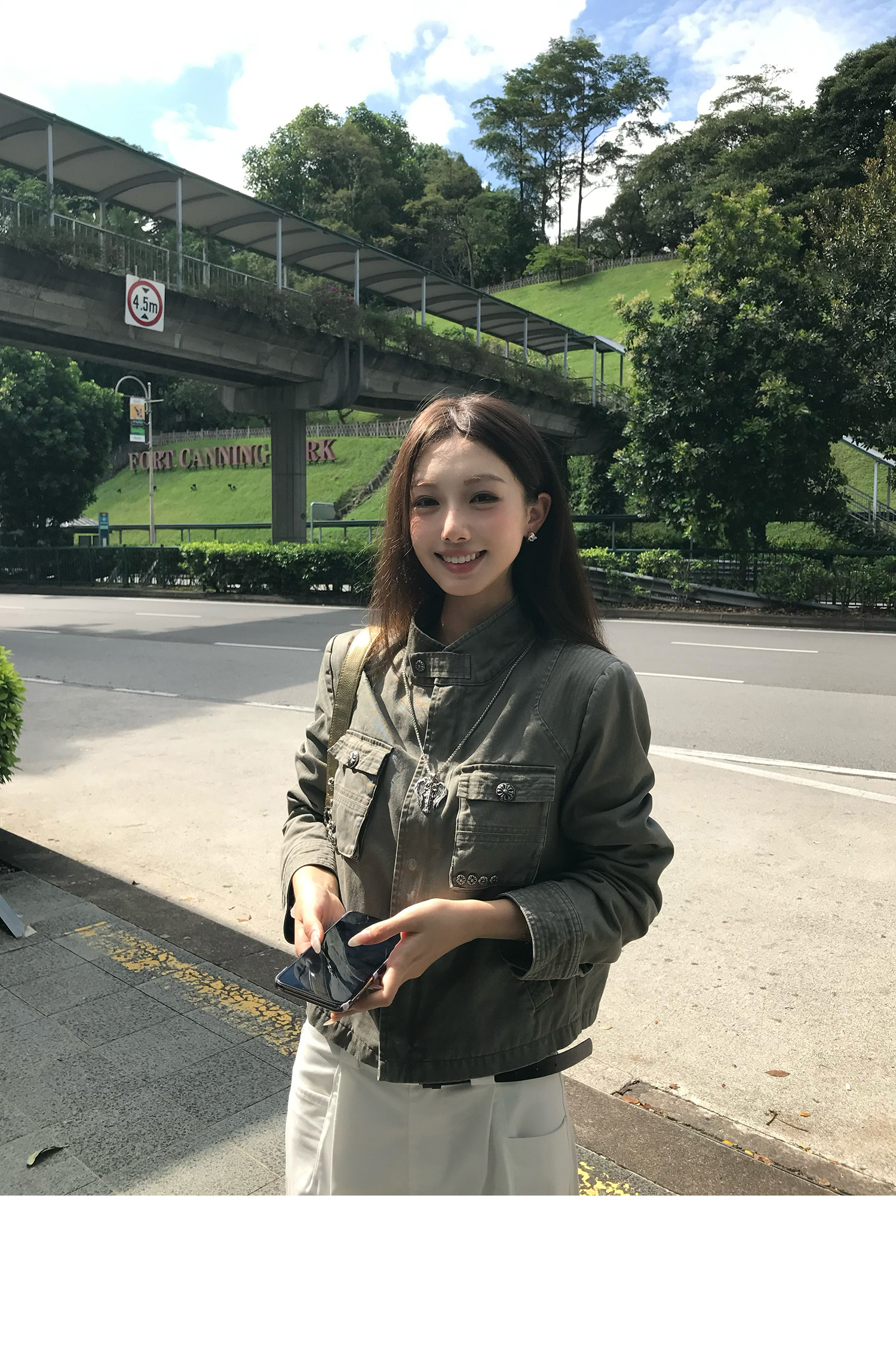 Romantic Army Green Short Cargo Jacket - Spring & Autumn
