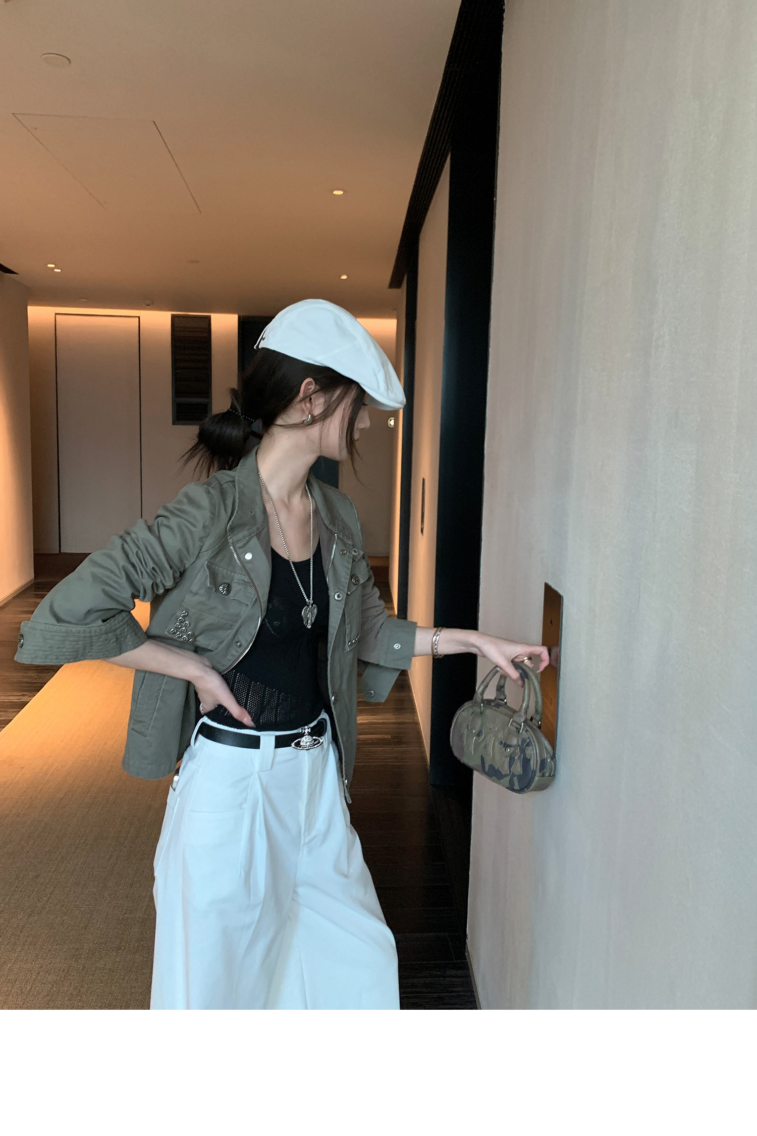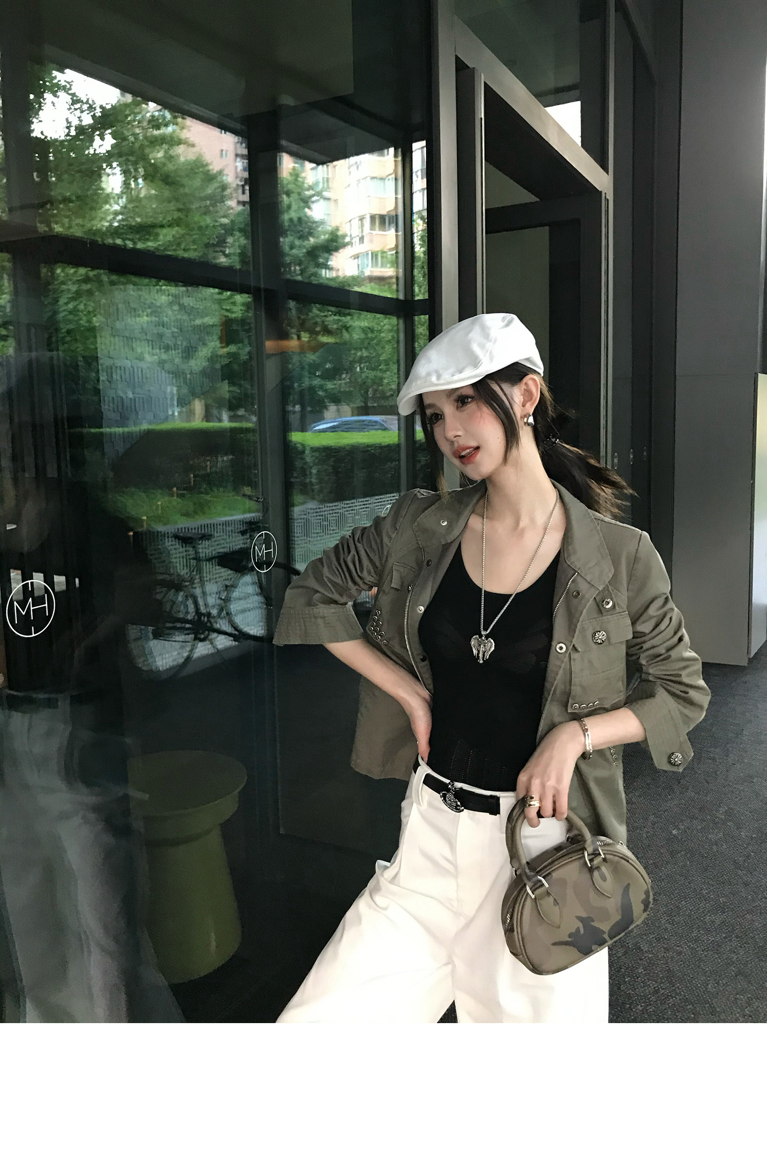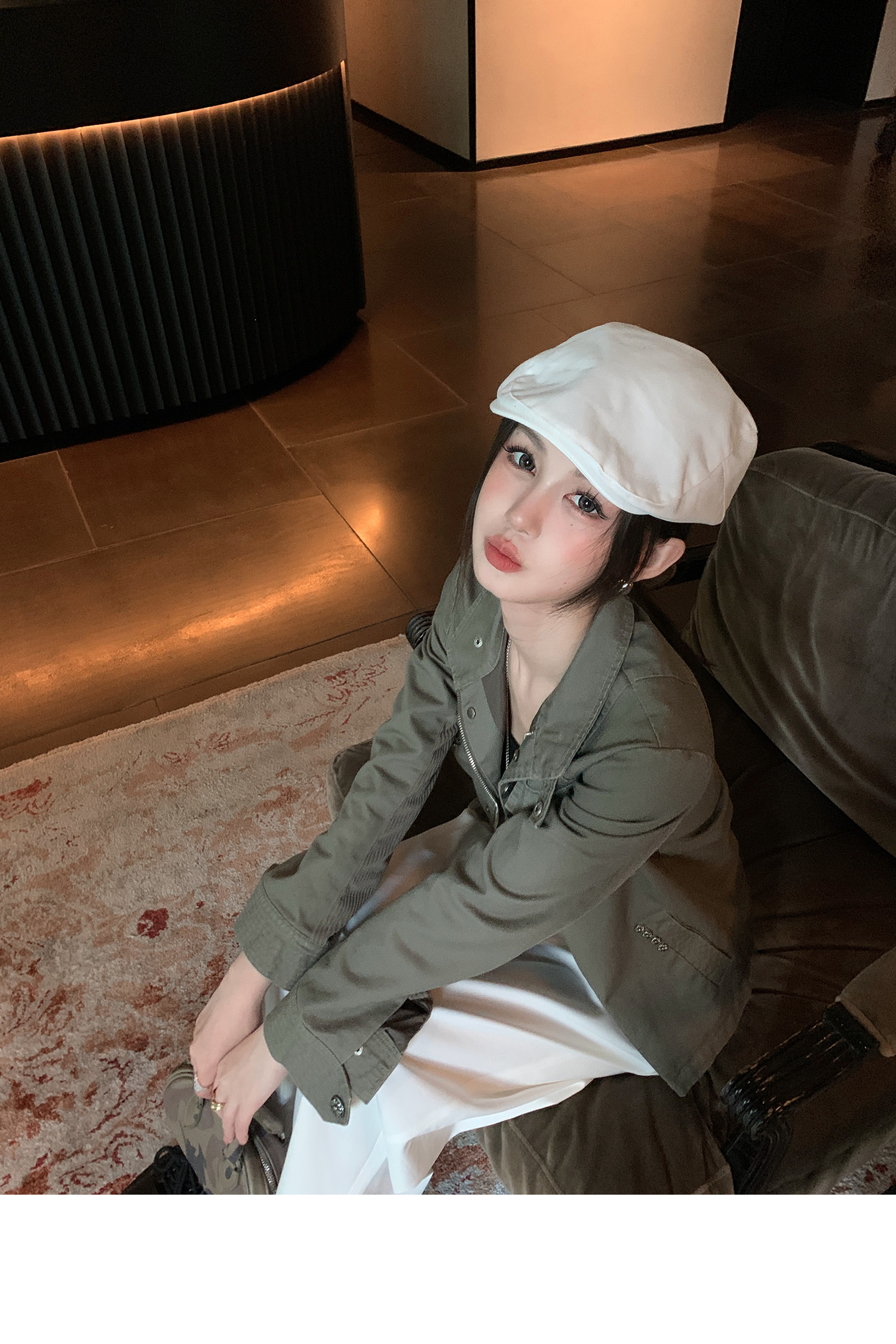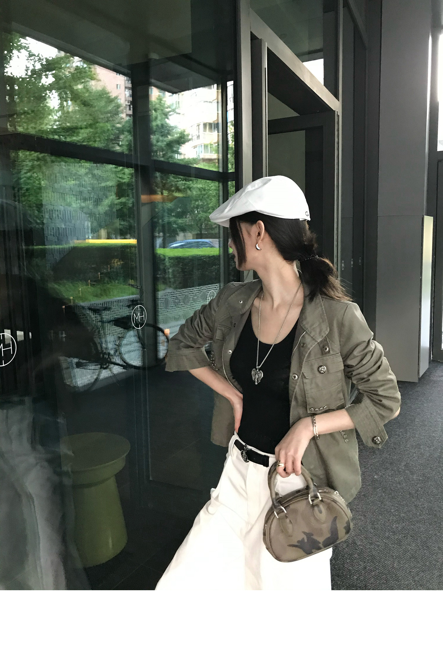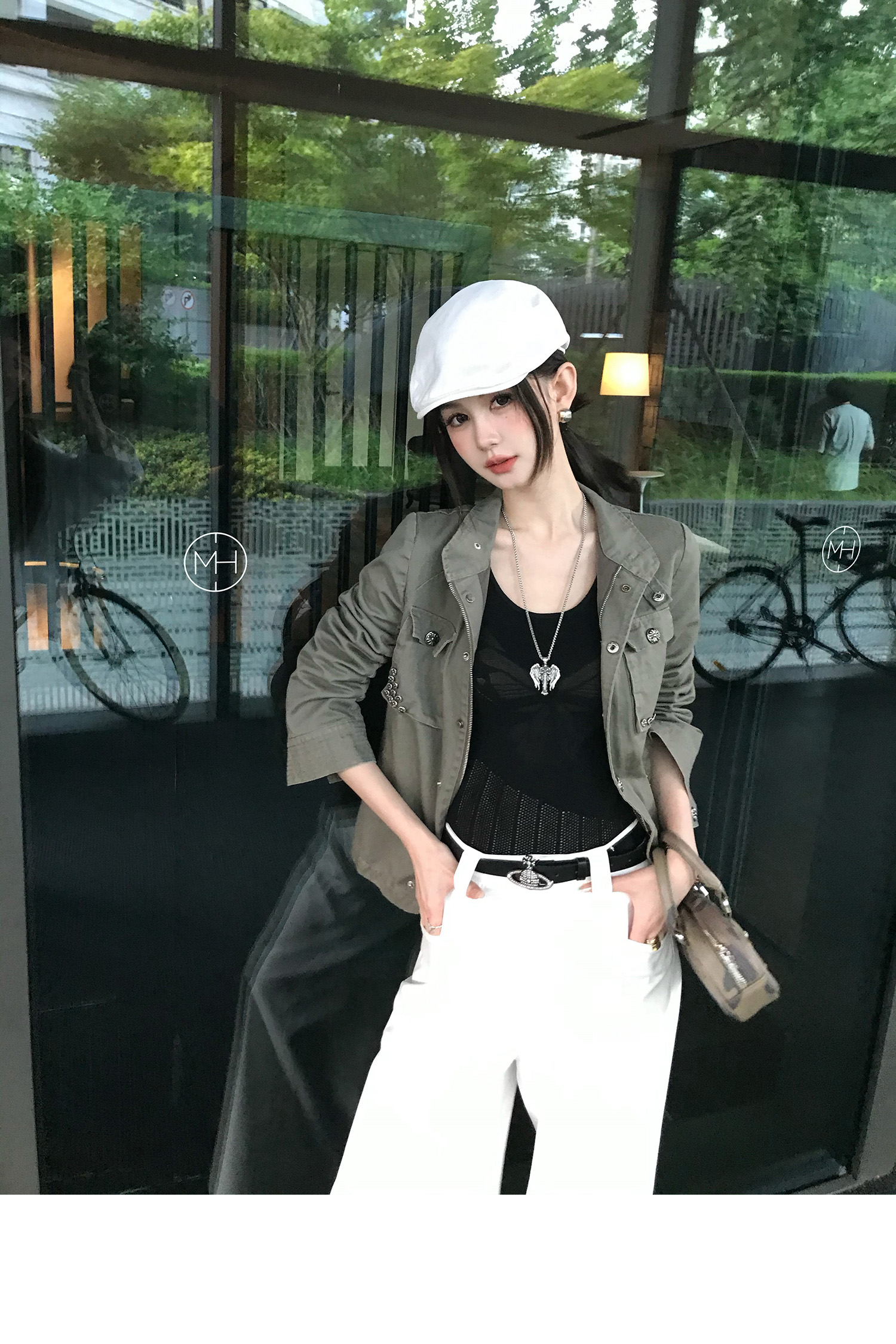 Romantic Army Green Short Cargo Jacket - Spring & Autumn