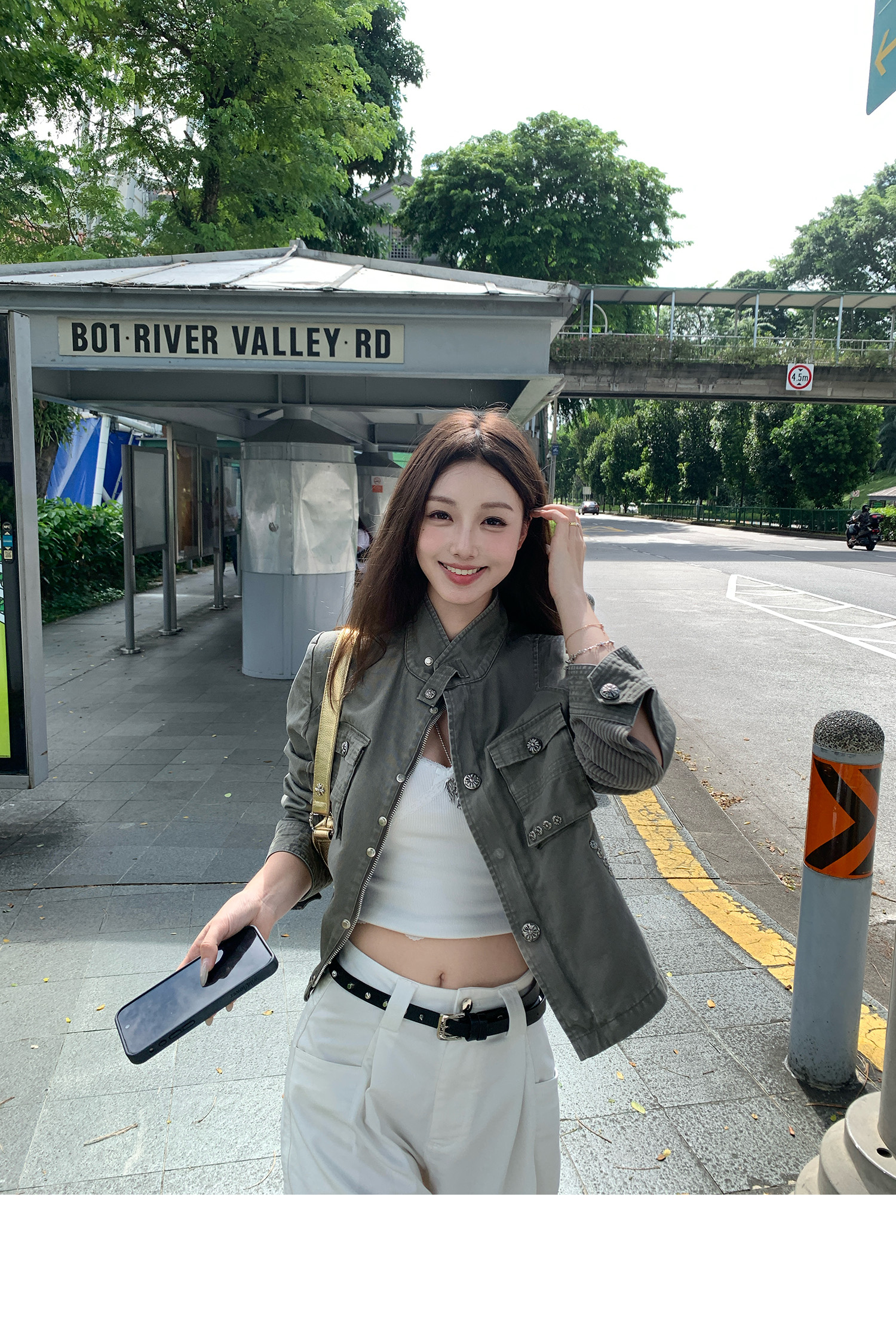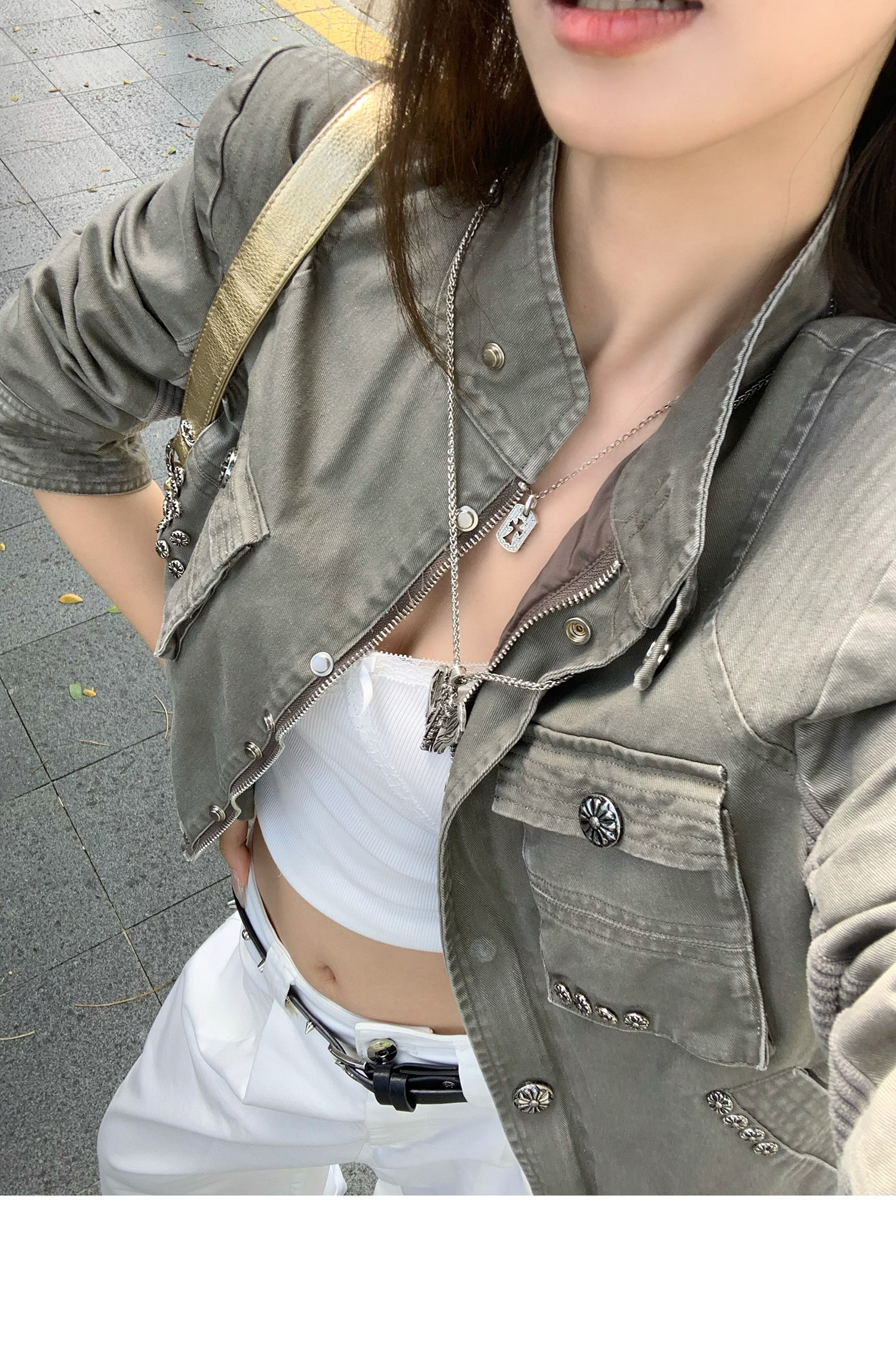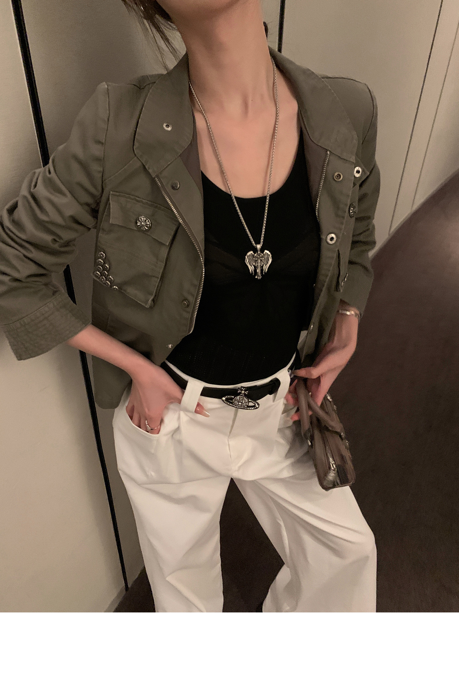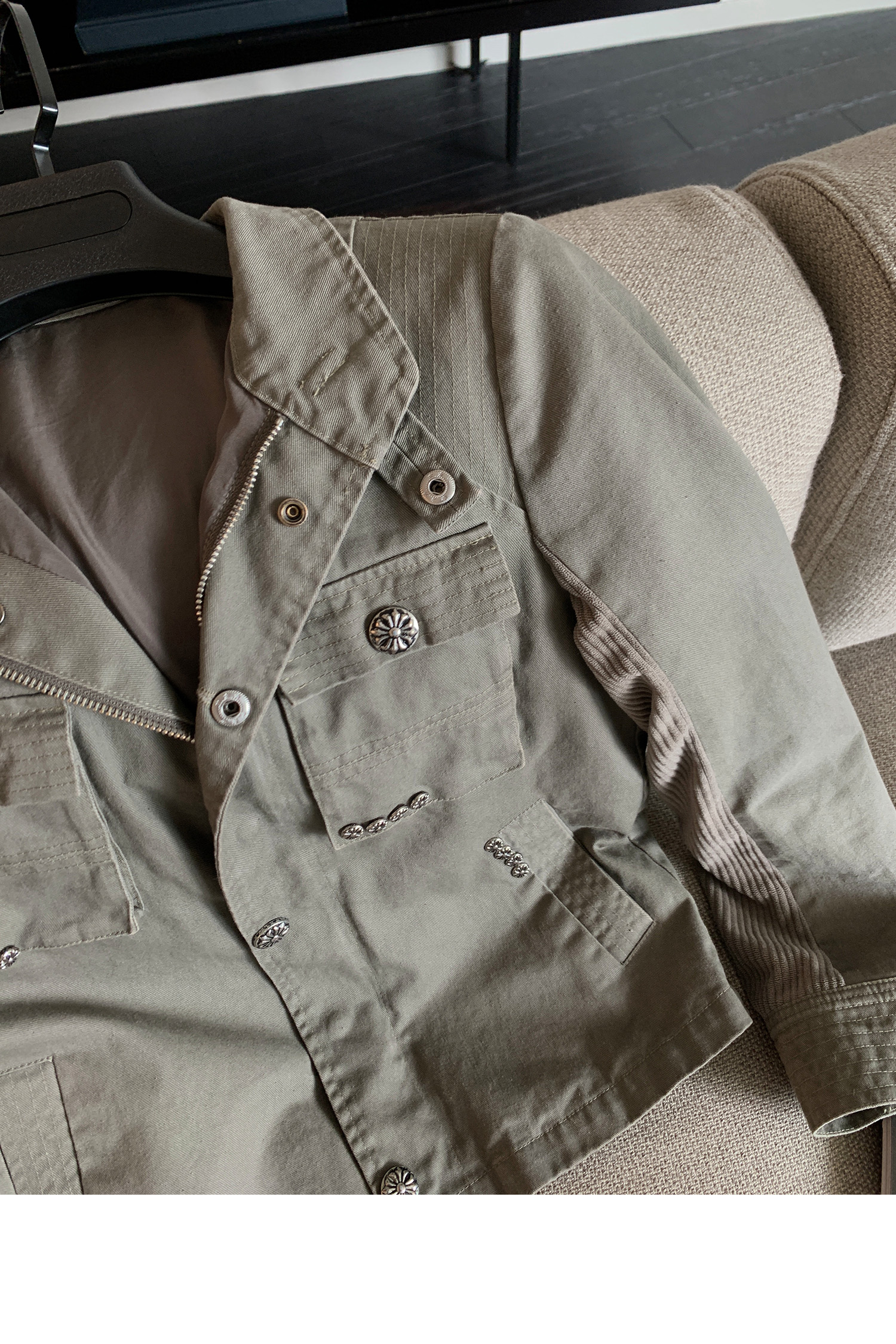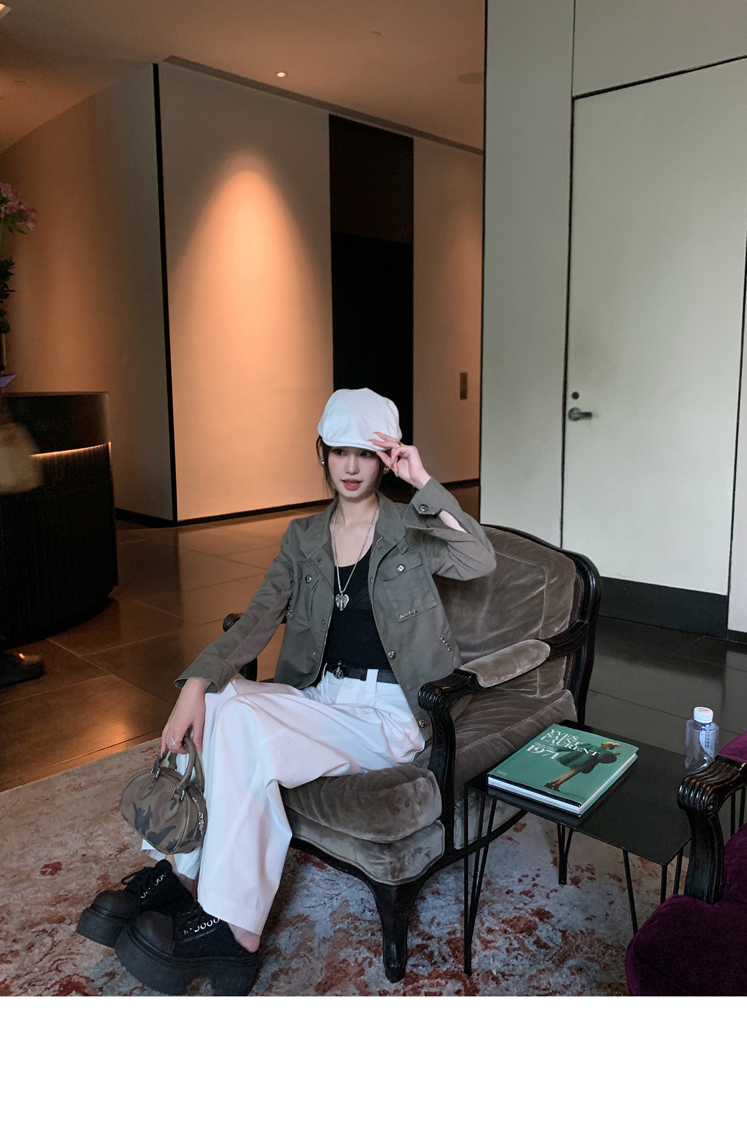 Romantic Army Green Short Cargo Jacket - Spring & Autumn