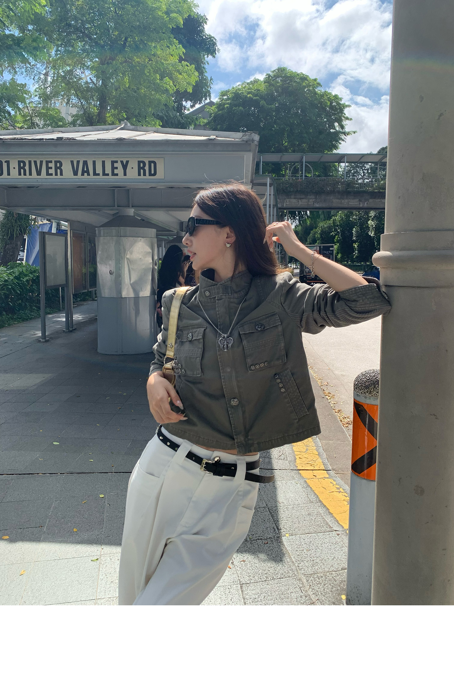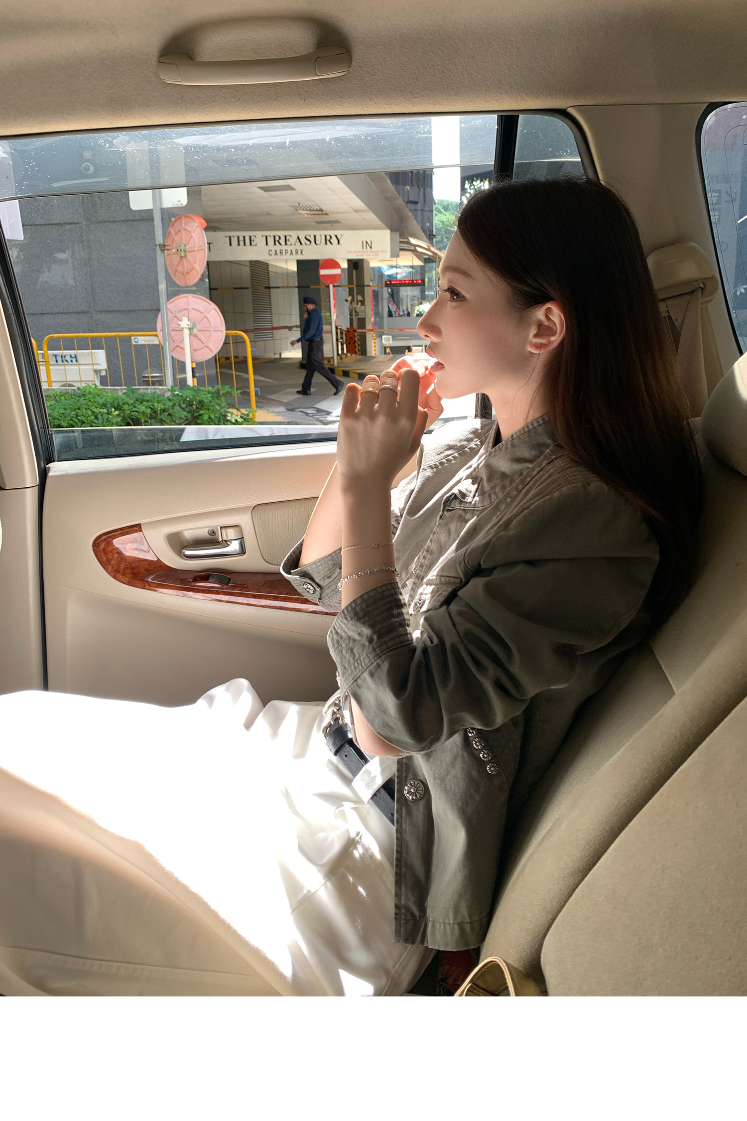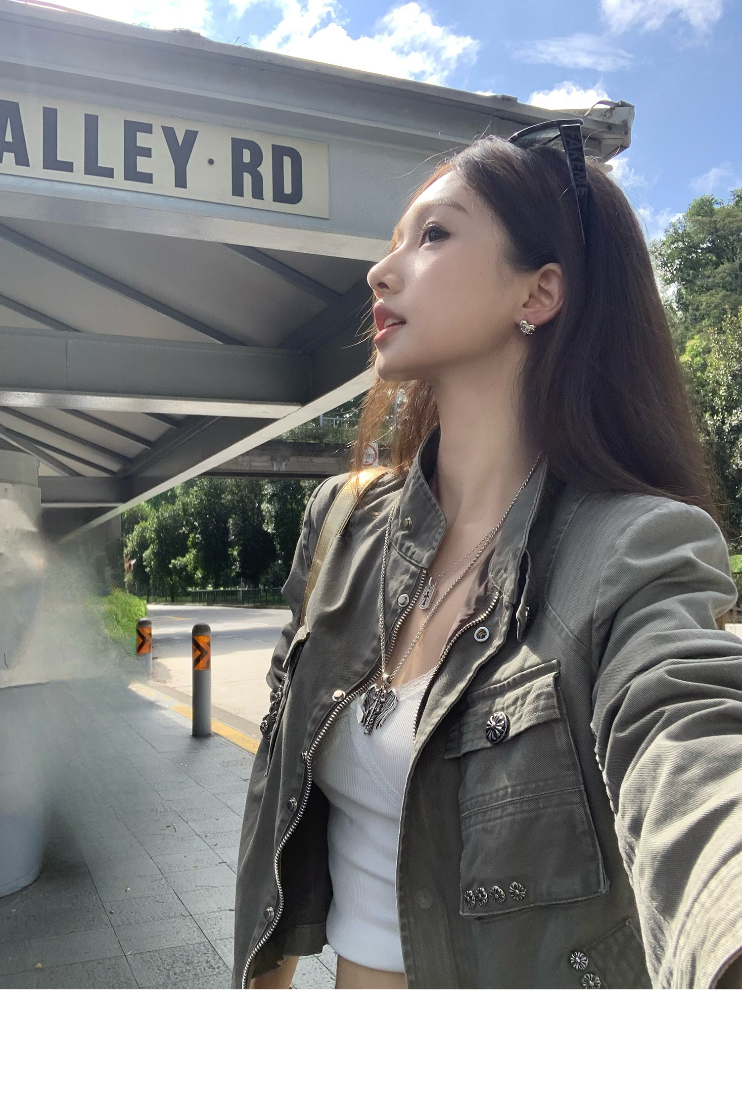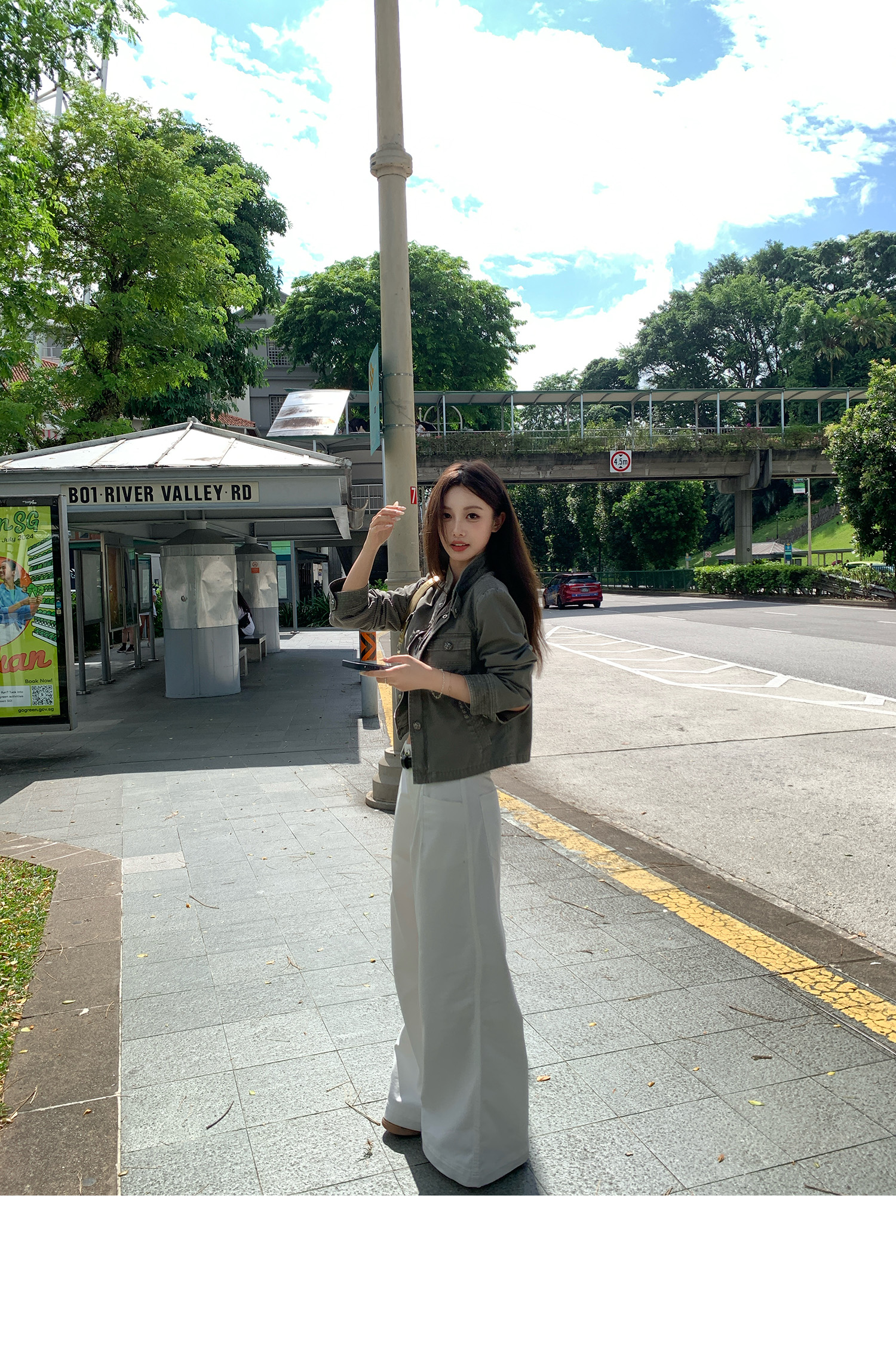 Romantic Army Green Short Cargo Jacket - Spring & Autumn