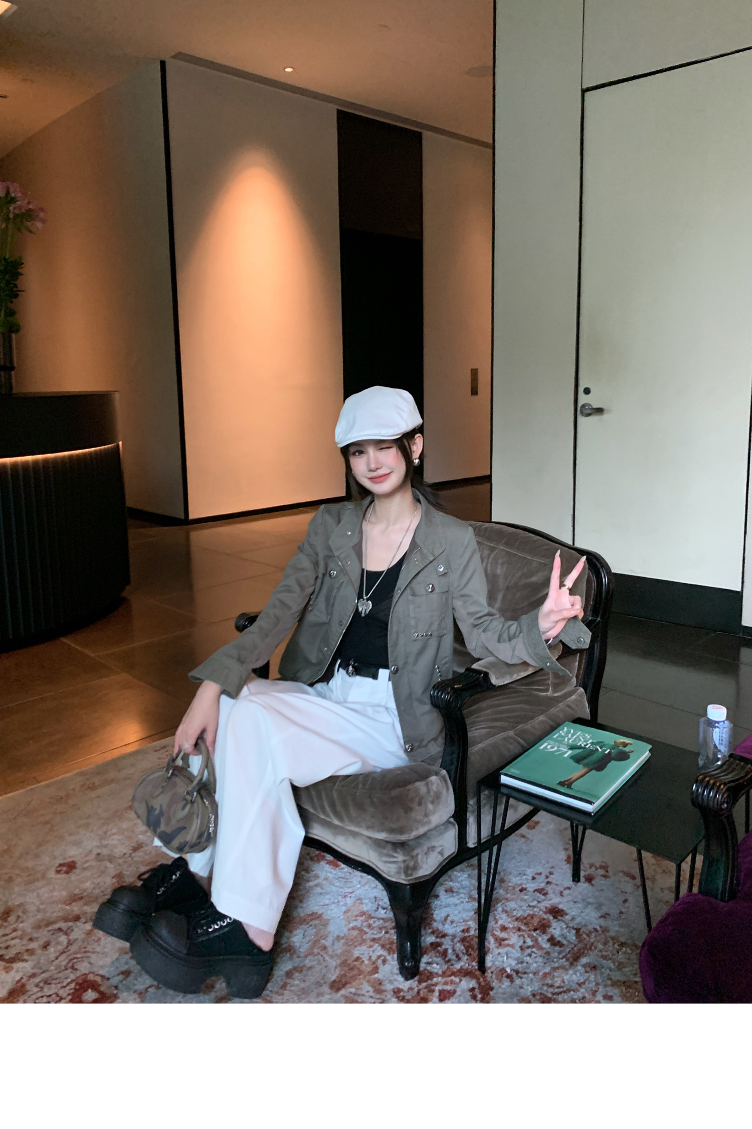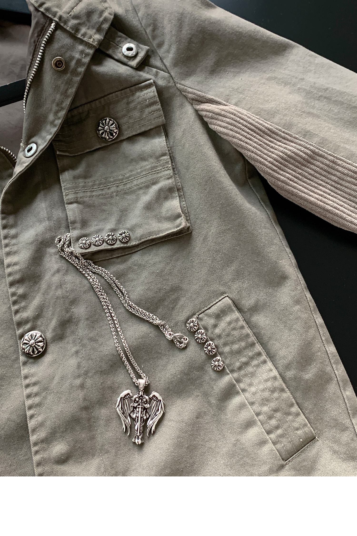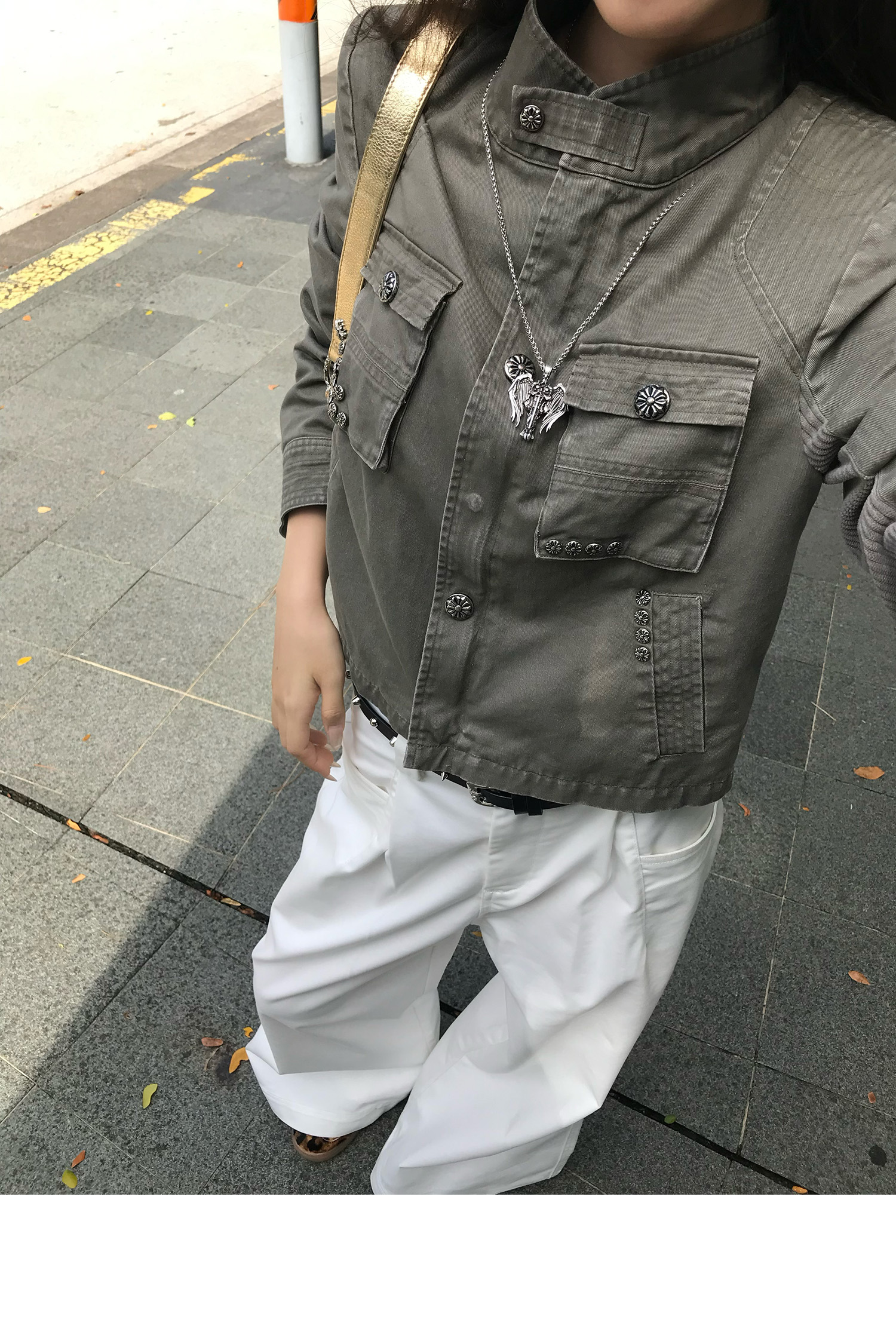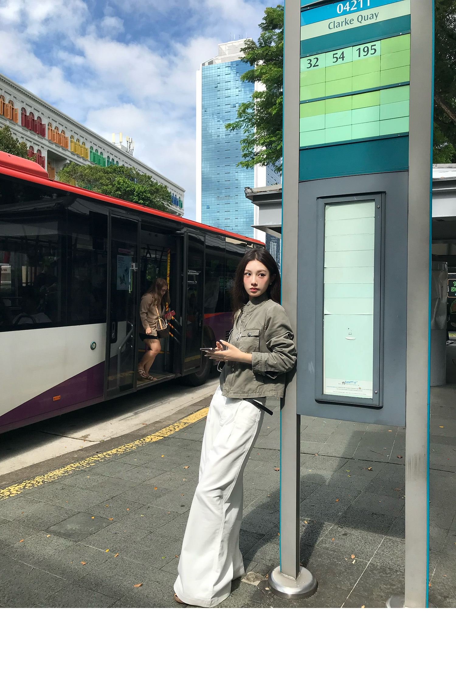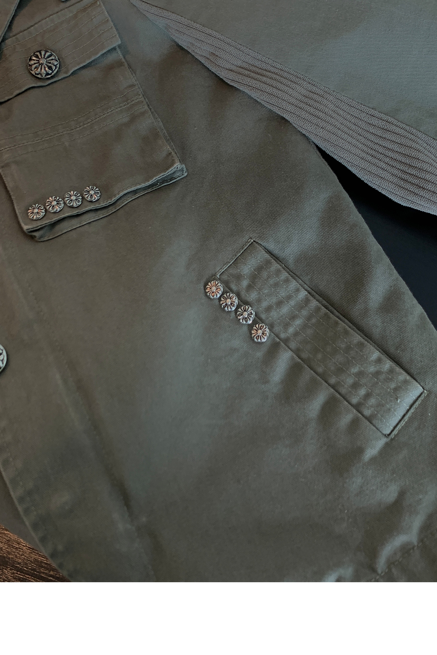 Romantic Army Green Short Cargo Jacket - Spring & Autumn