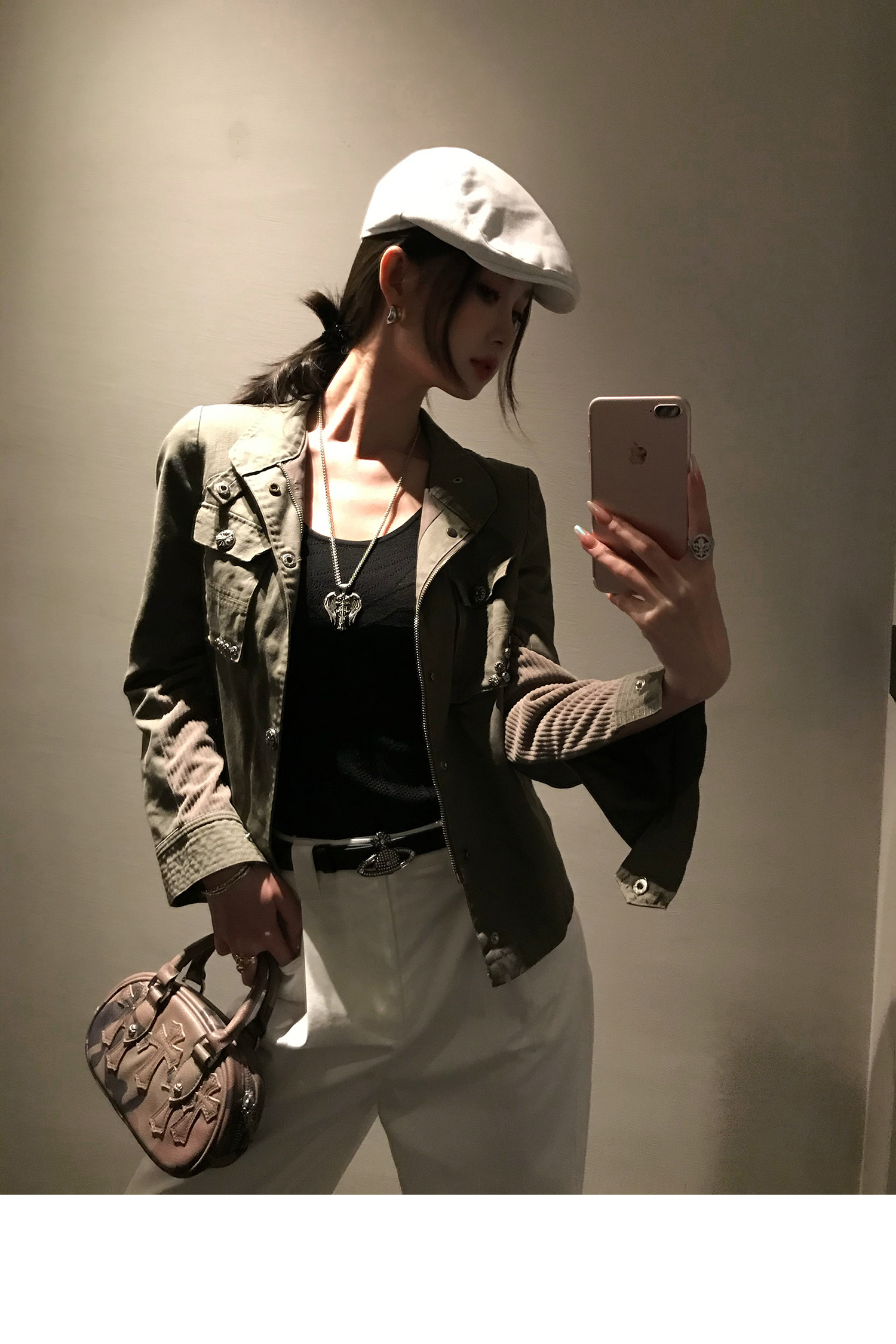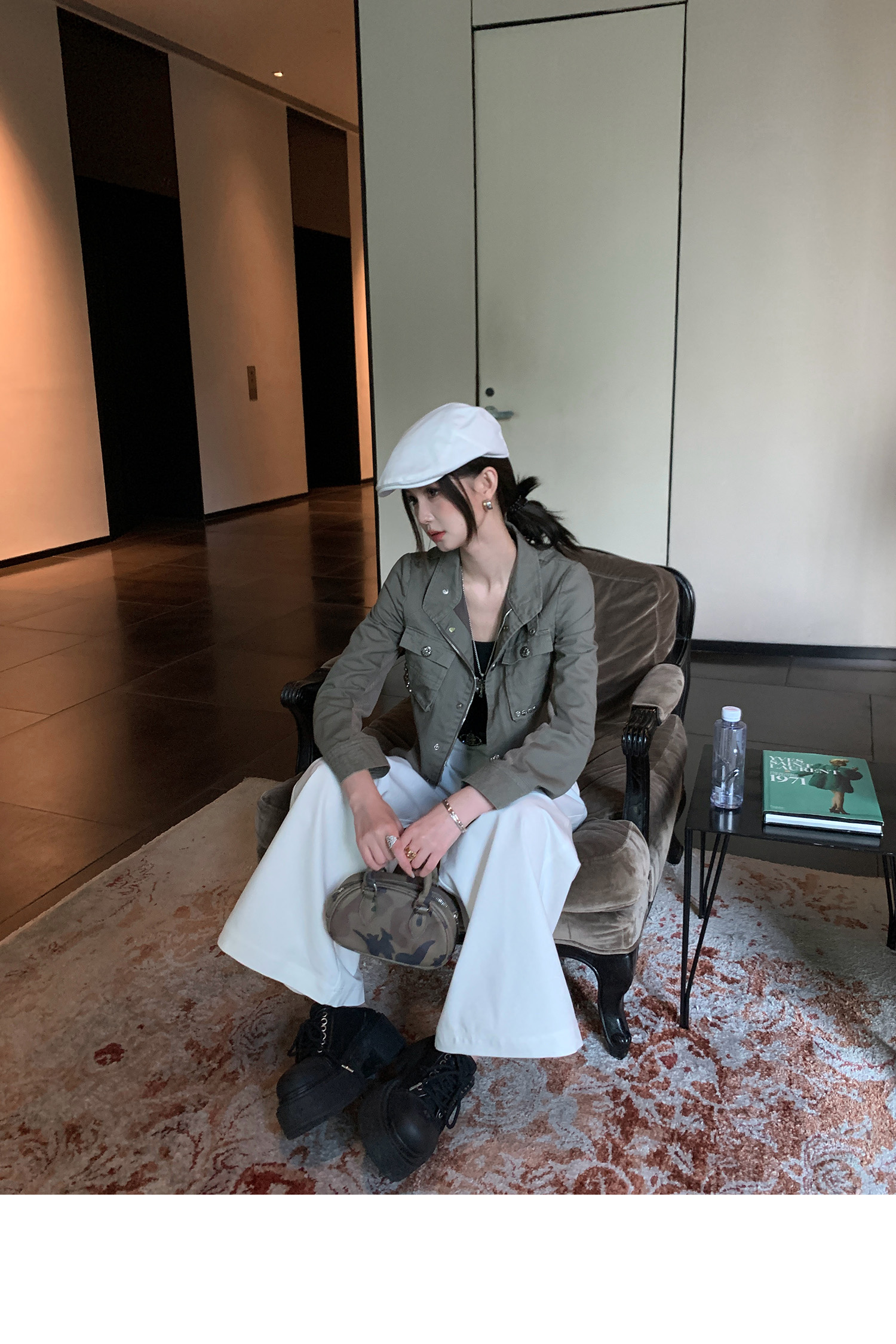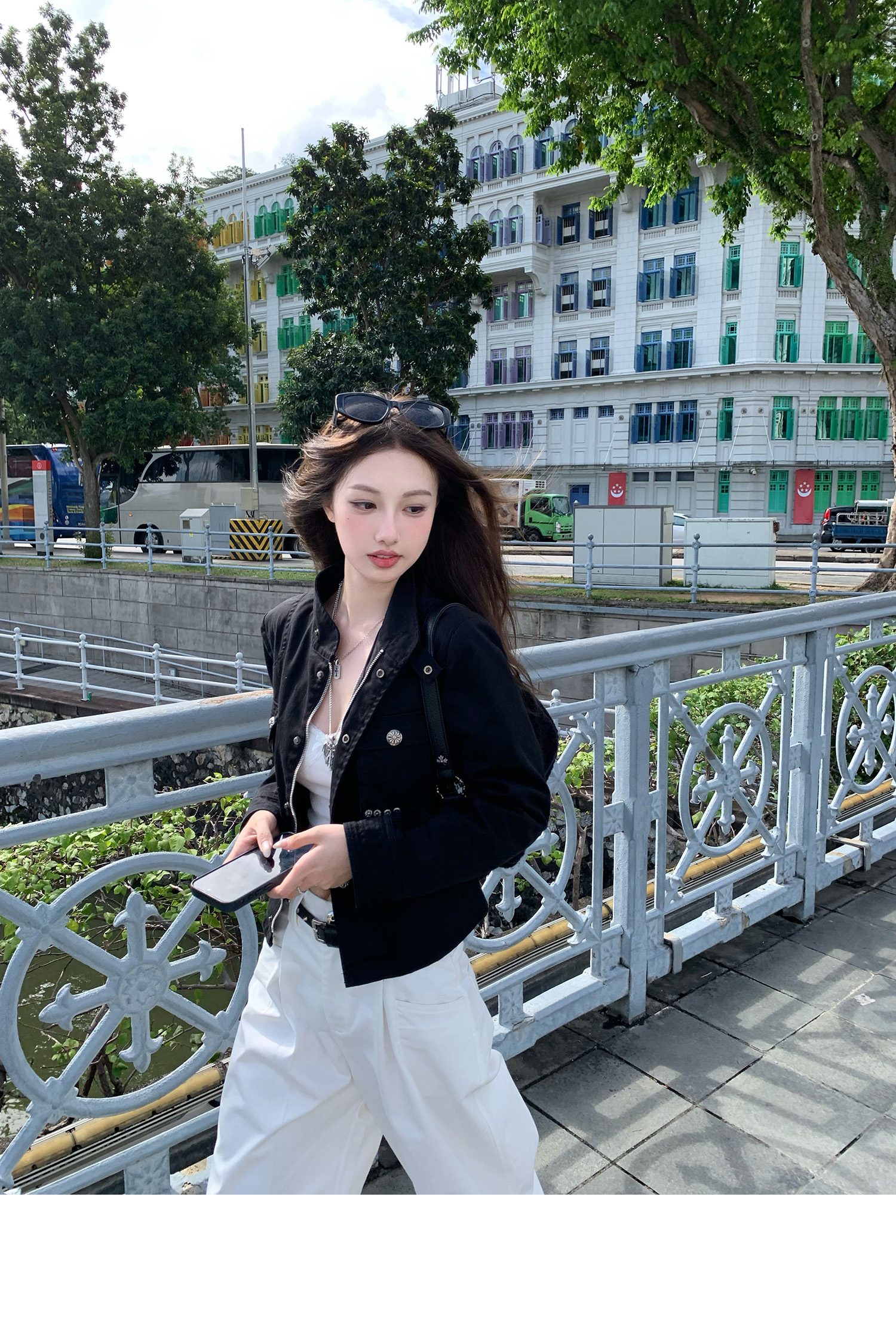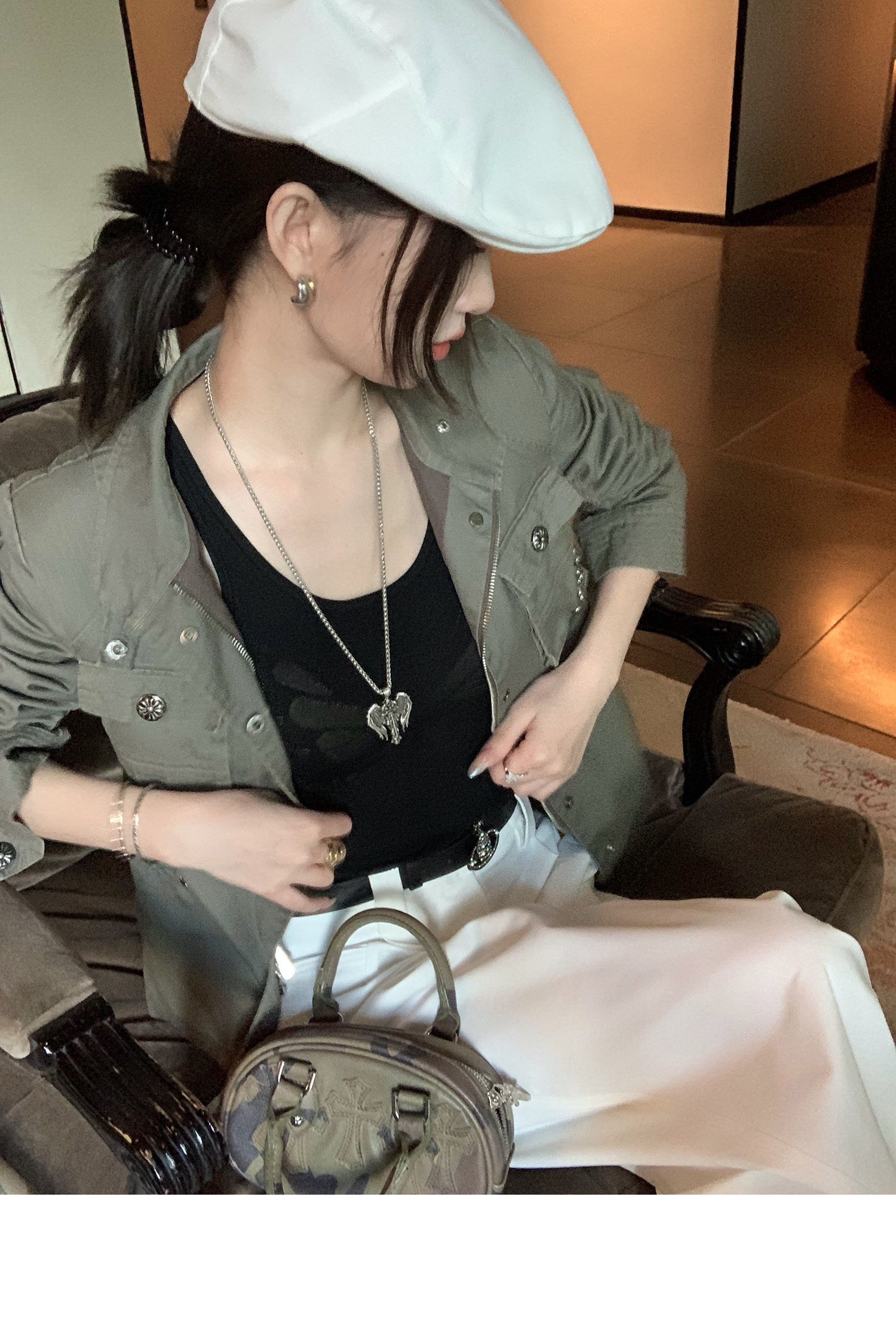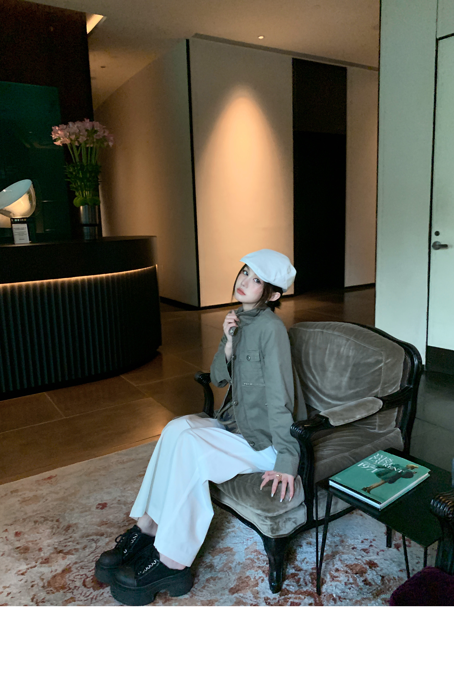 Romantic Army Green Short Cargo Jacket - Spring & Autumn