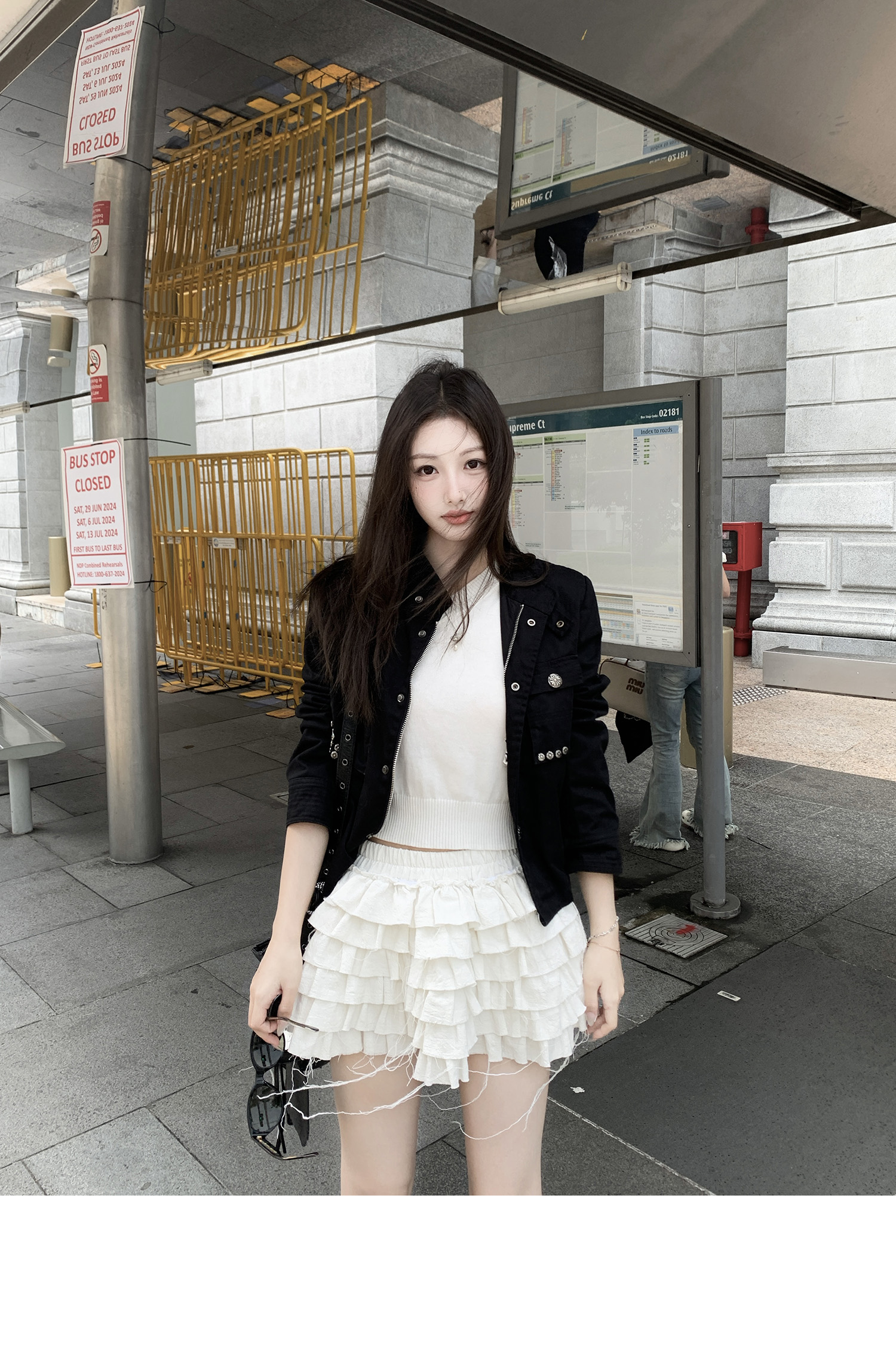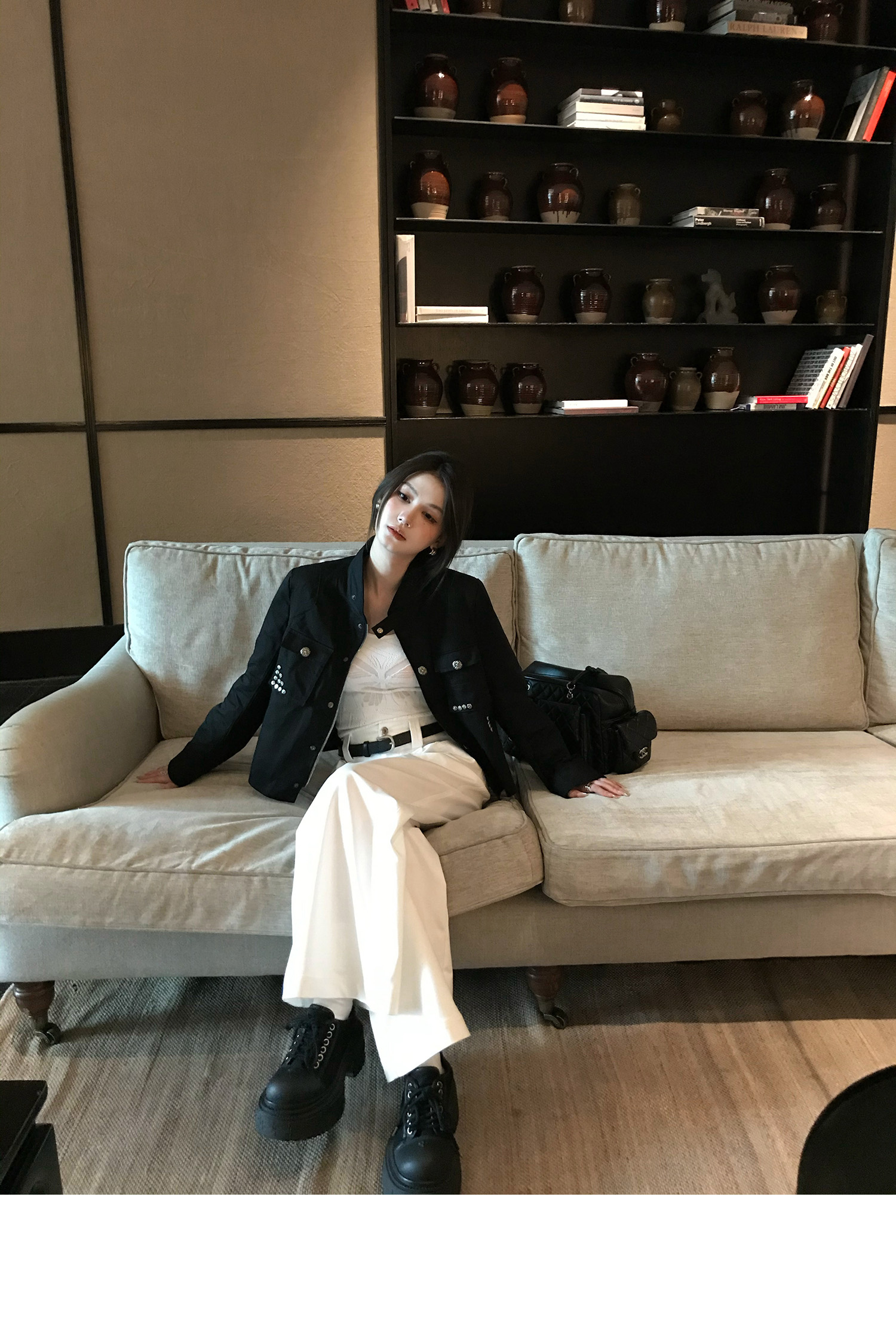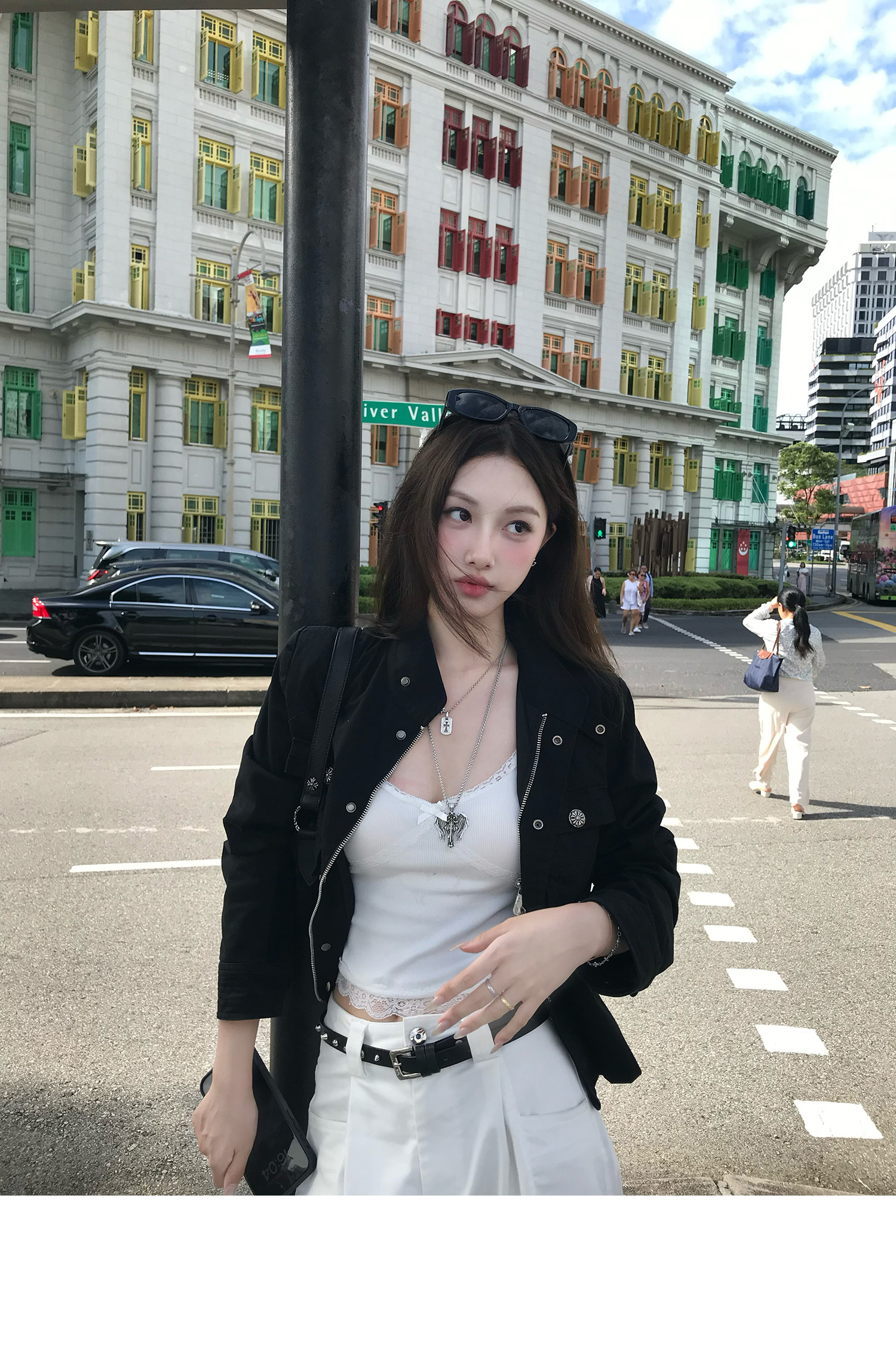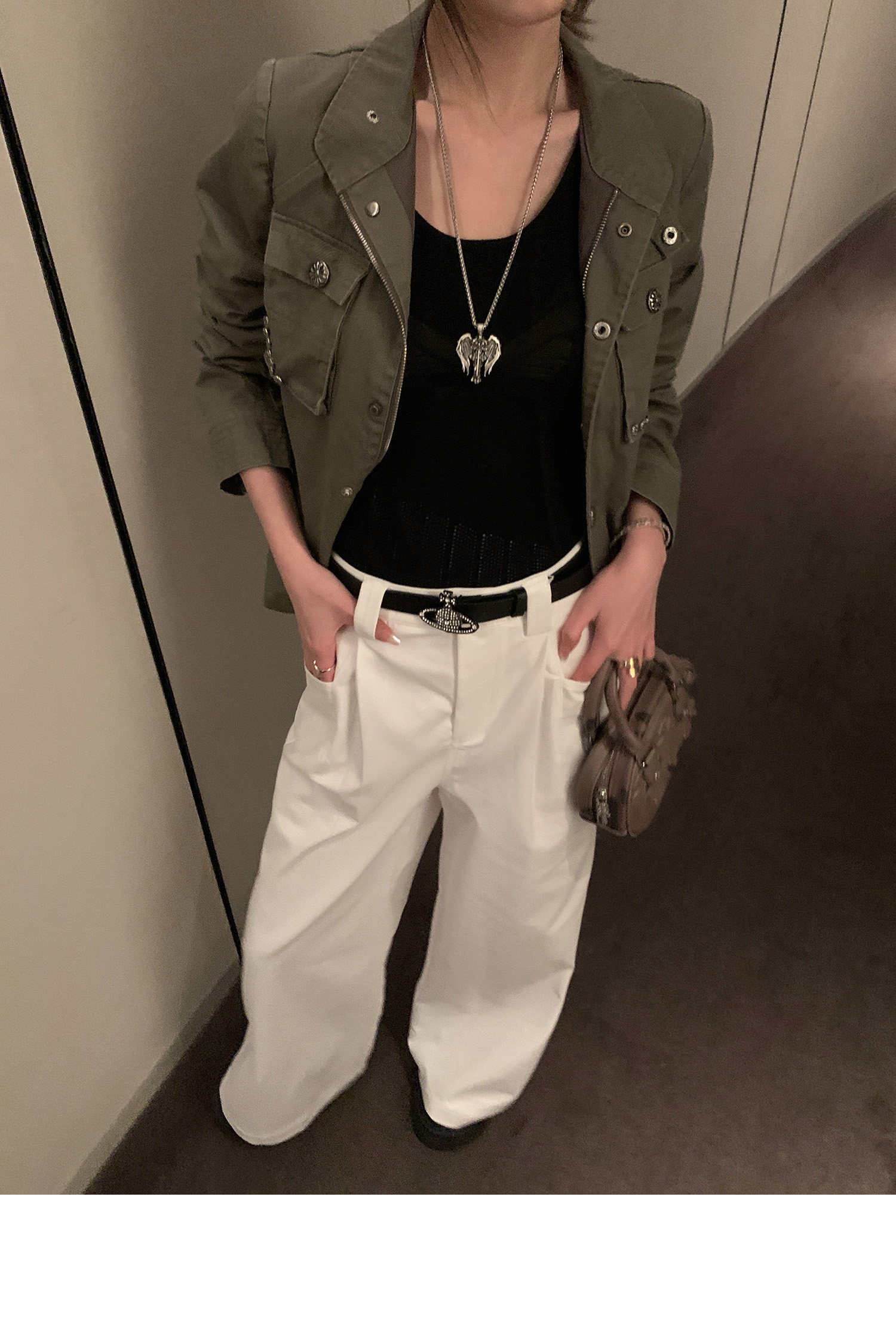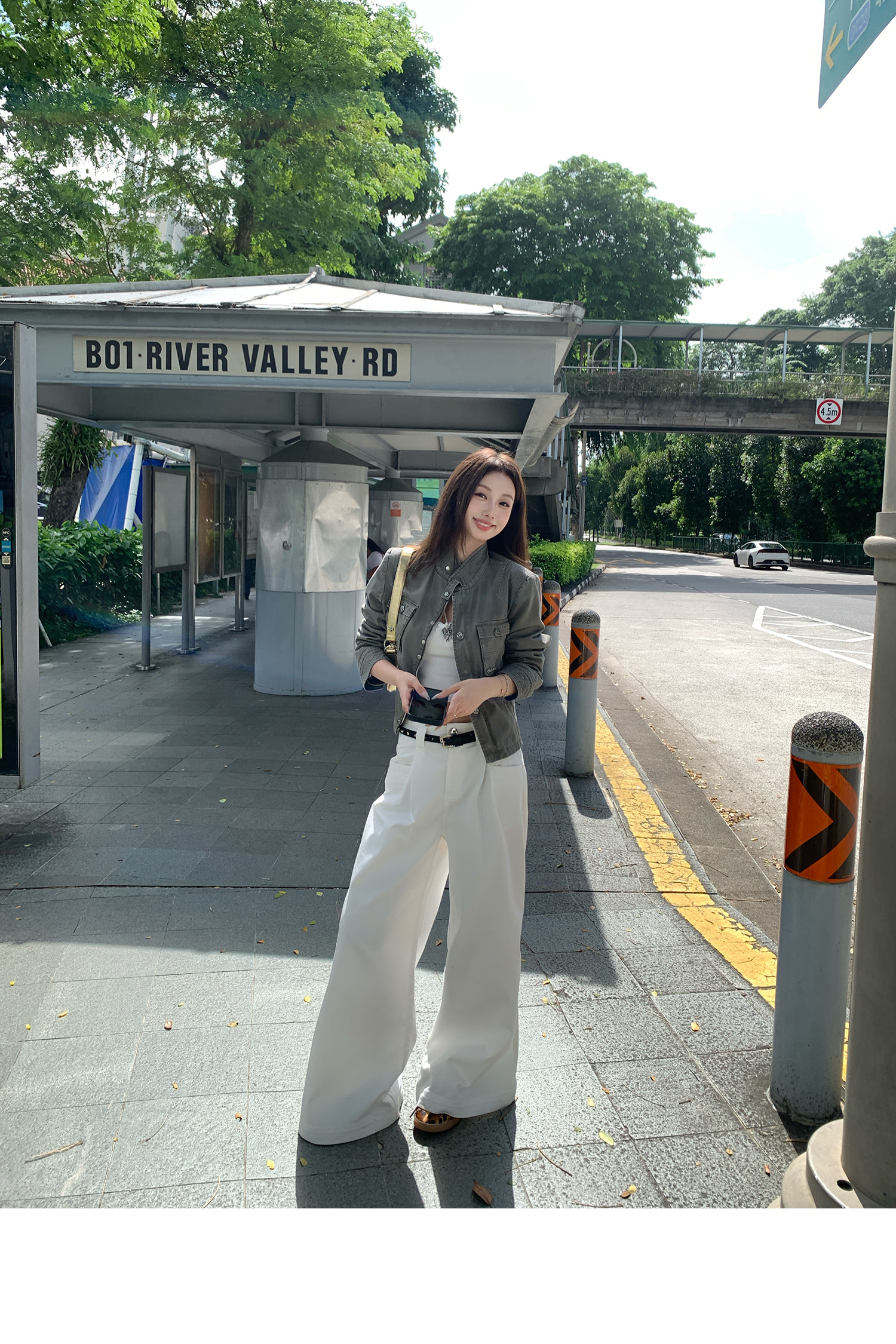 Romantic Army Green Short Cargo Jacket - Spring & Autumn