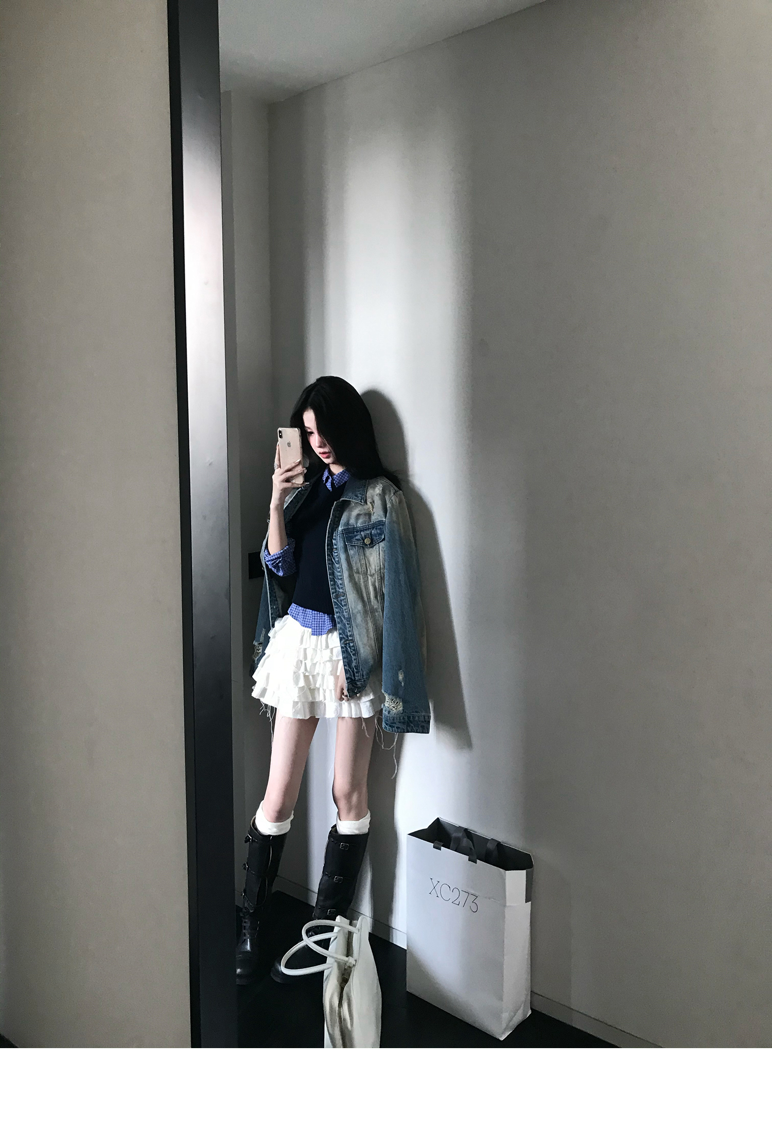 [Ruth's Style] Raw Edge High-End Cake Skirt - Early Autumn Hot Girl Style