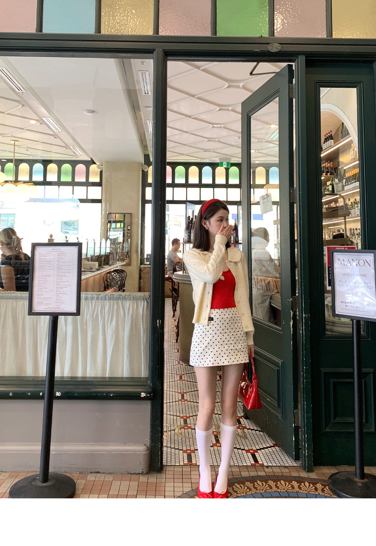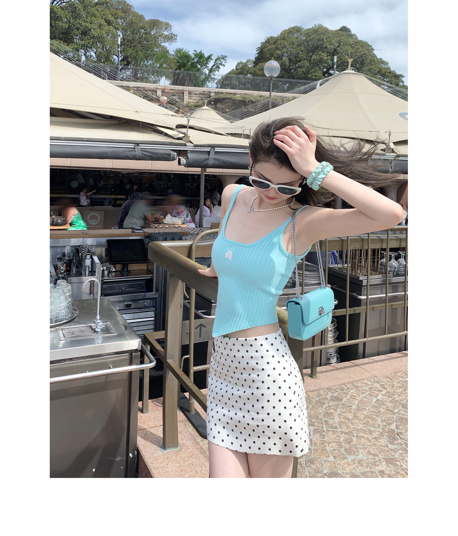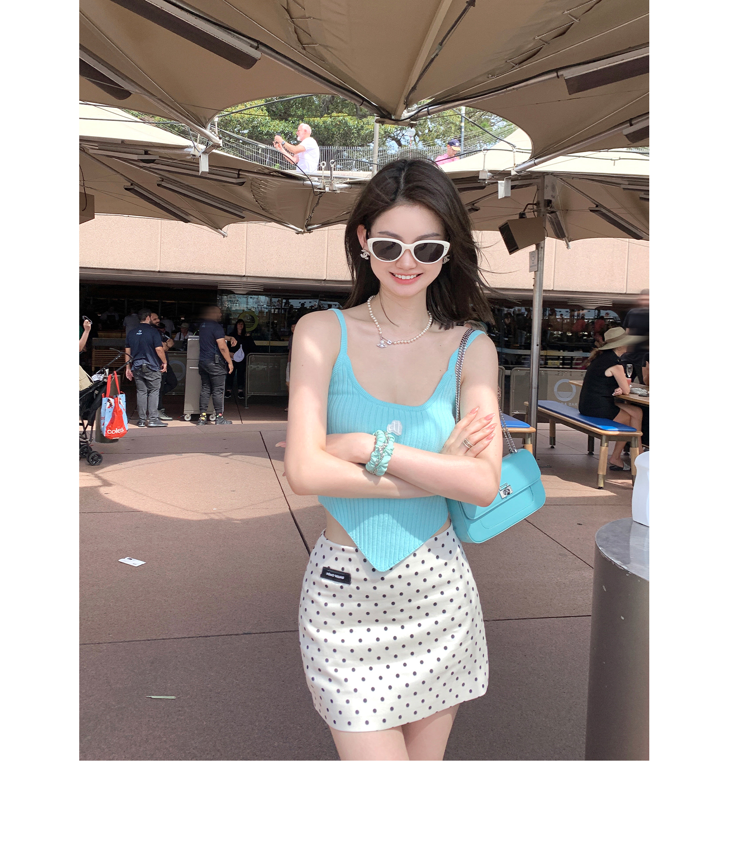 Satin White Polka Dot A-Line Skirt - Spring & Summer Slim Fit