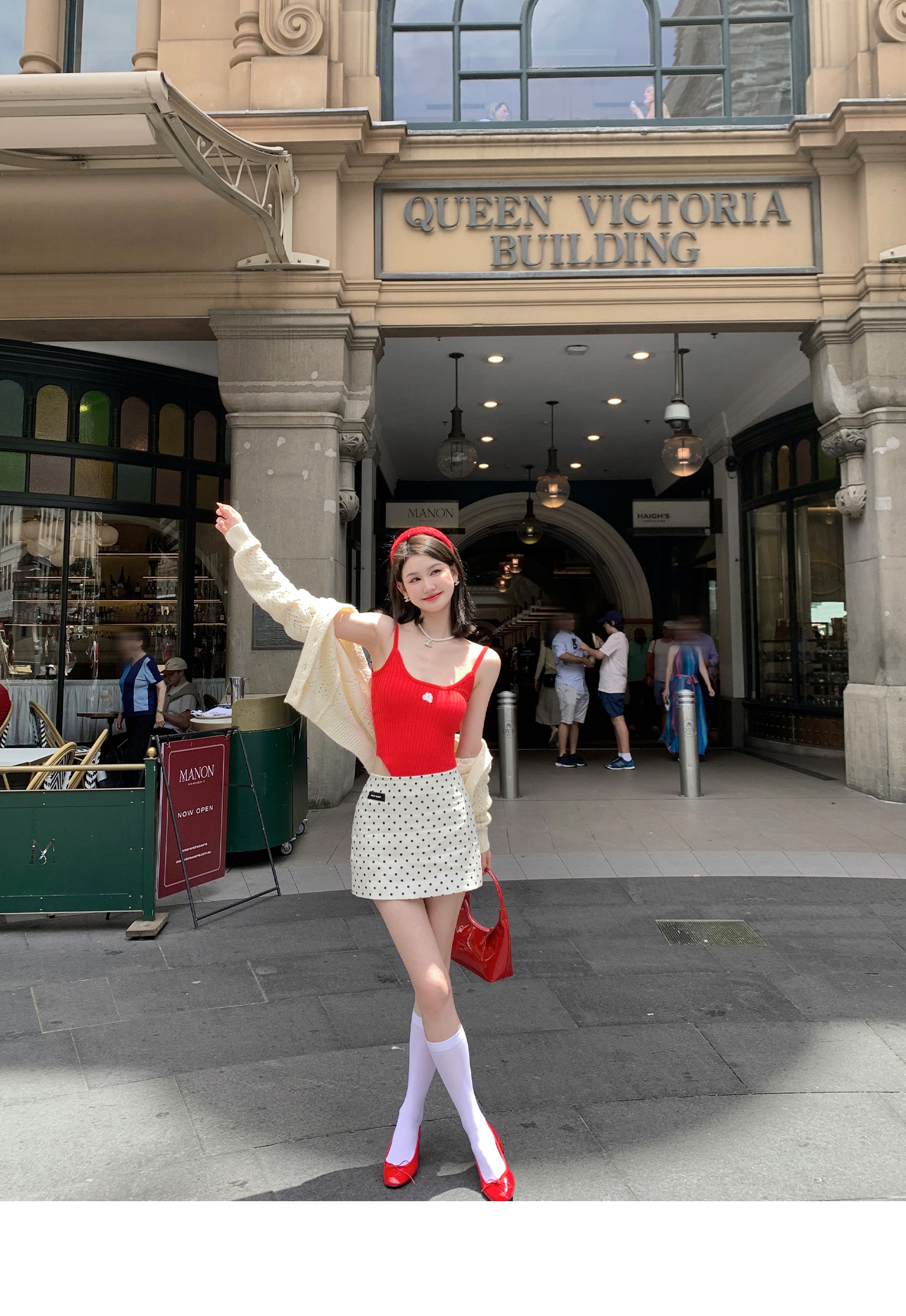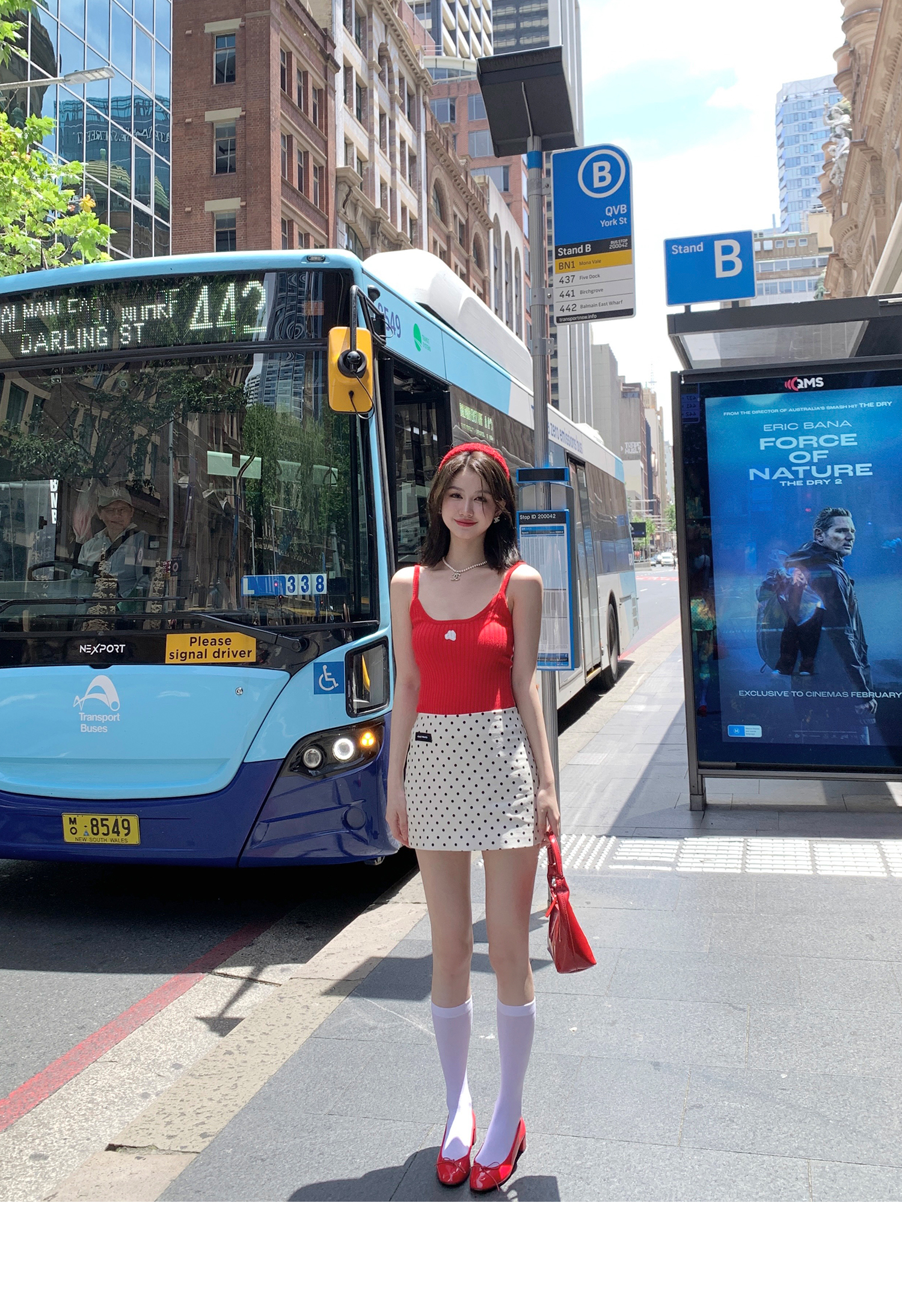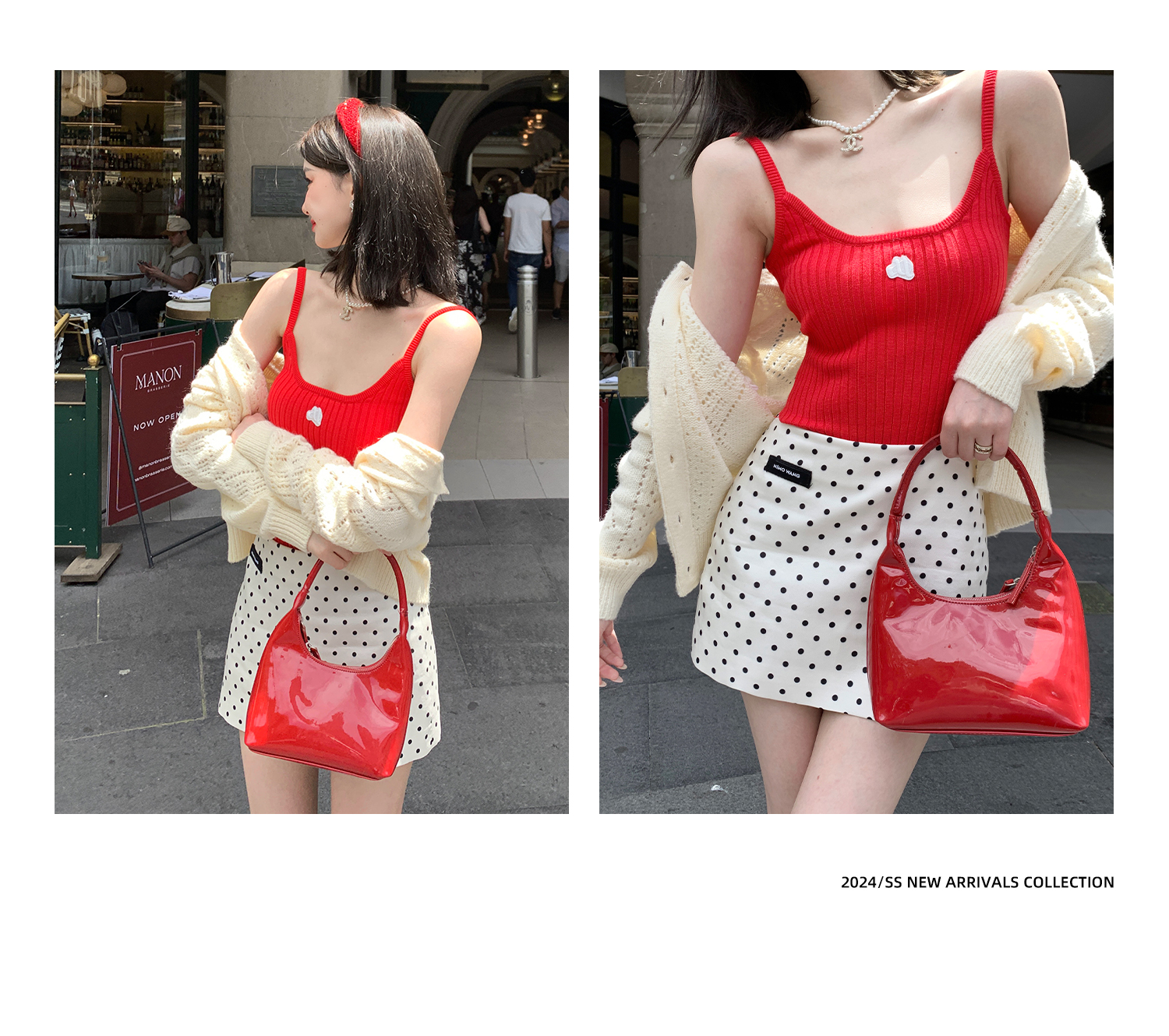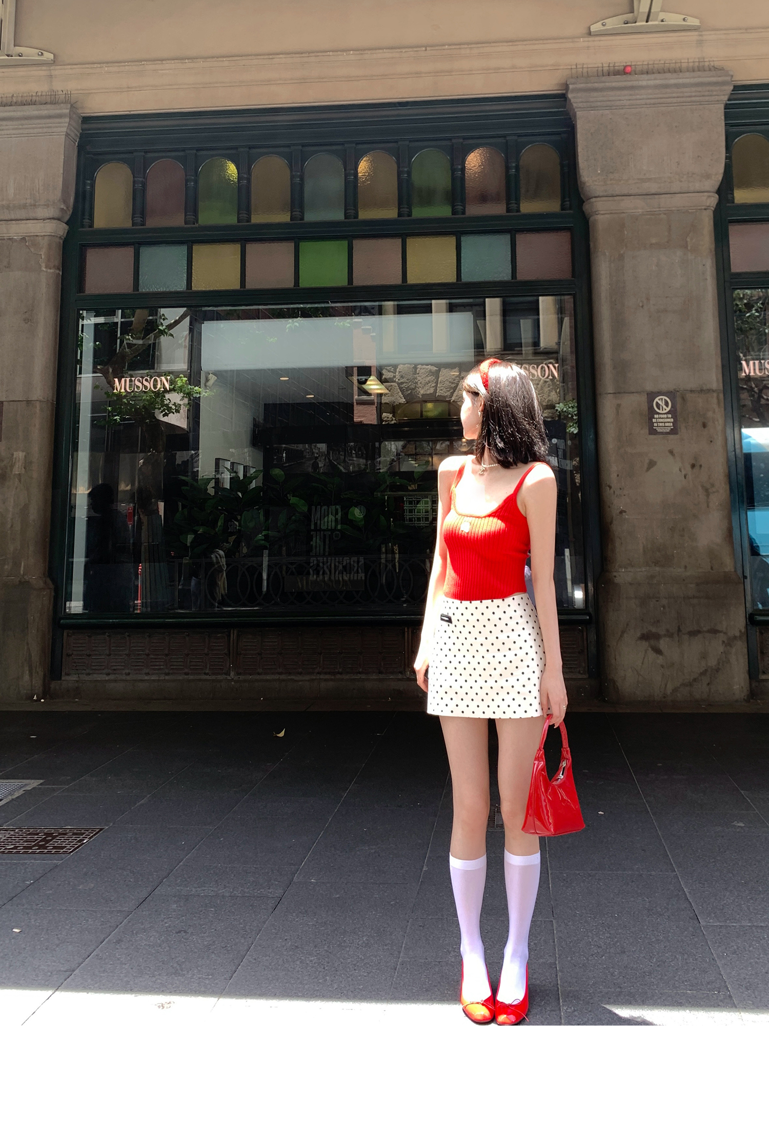 Satin White Polka Dot A-Line Skirt - Spring & Summer Slim Fit