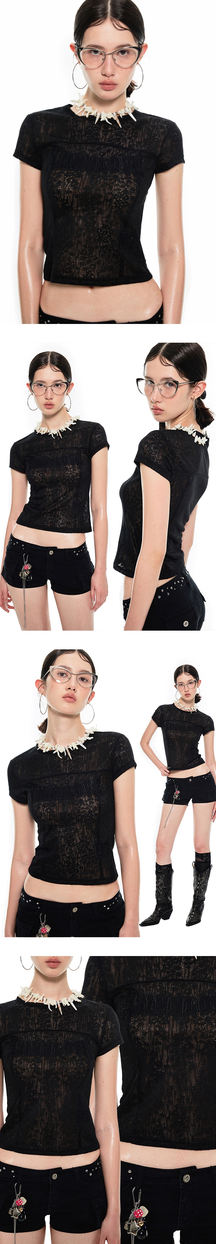 Sheer Lace Vintage Crewneck T-Shirt – Slim Fit Full-Shoulder Hottie Top
