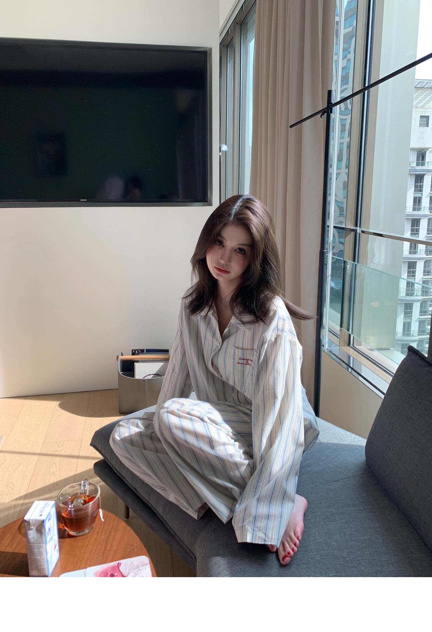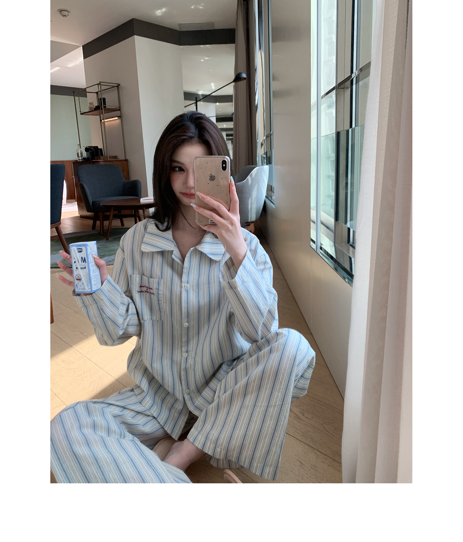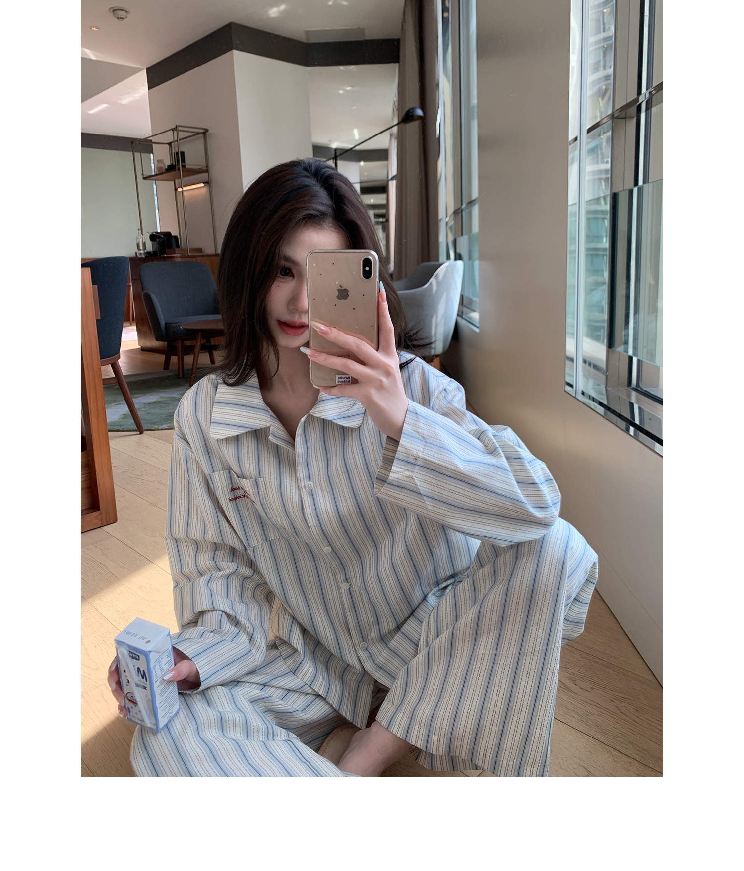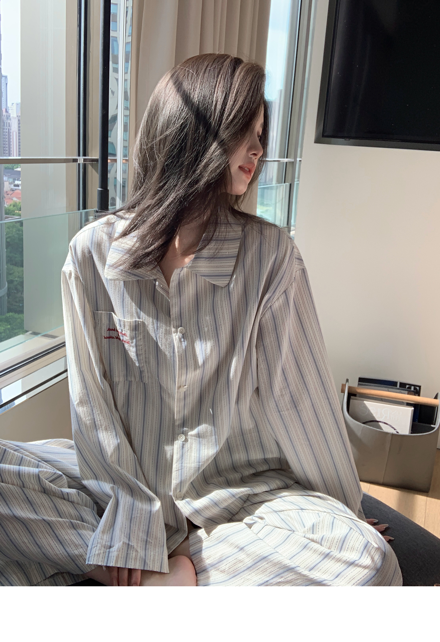 [Sleep Well] Retro Cotton Pajama Set - Women's Autumn Two-Piece Loungewear