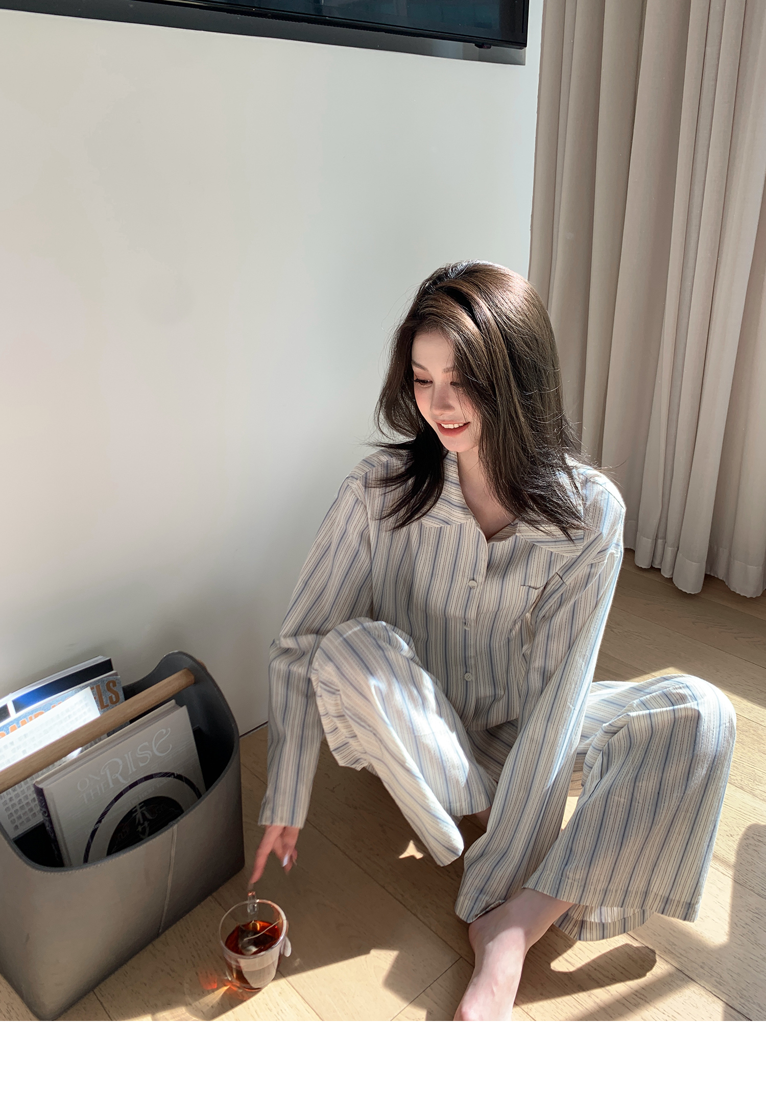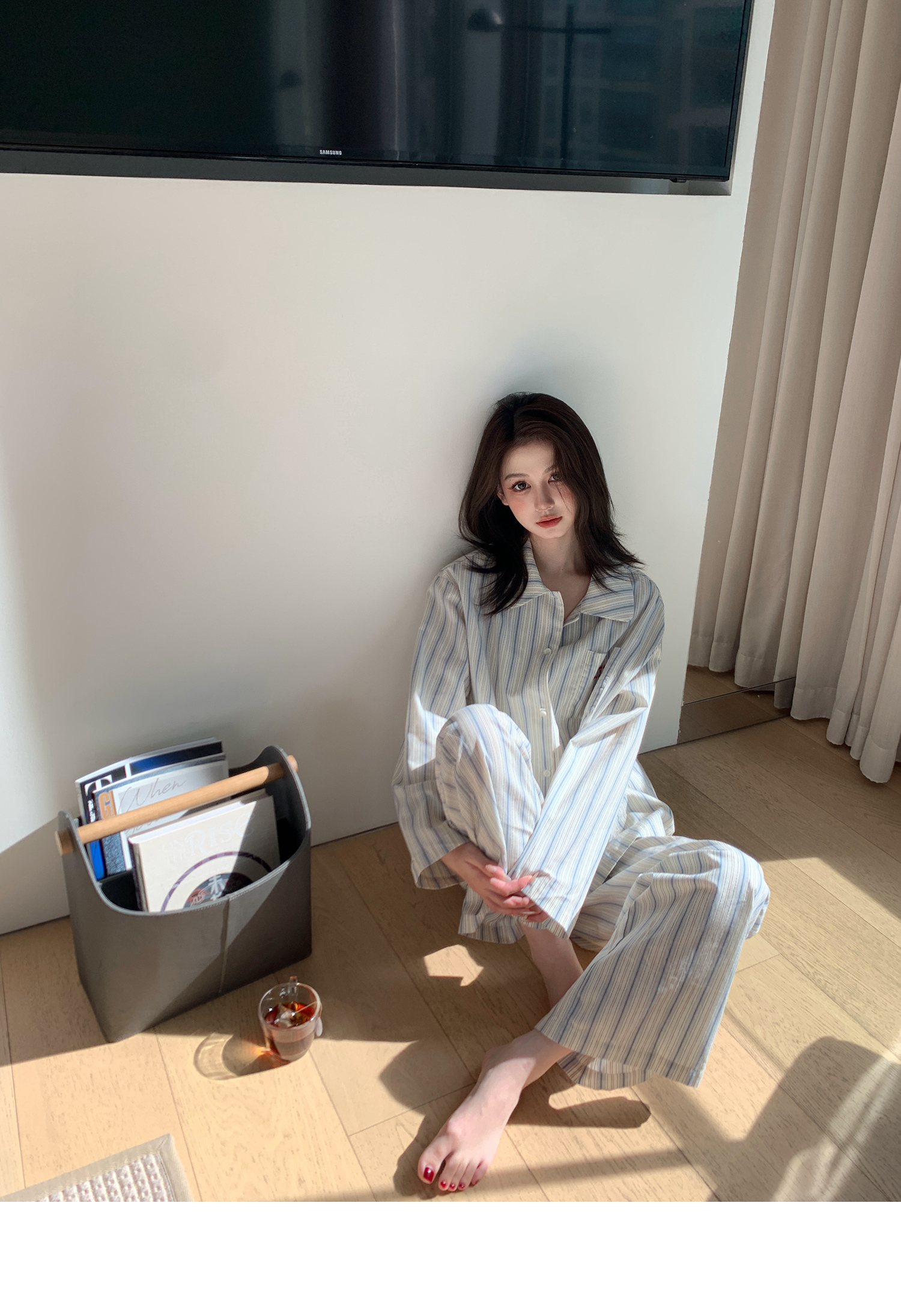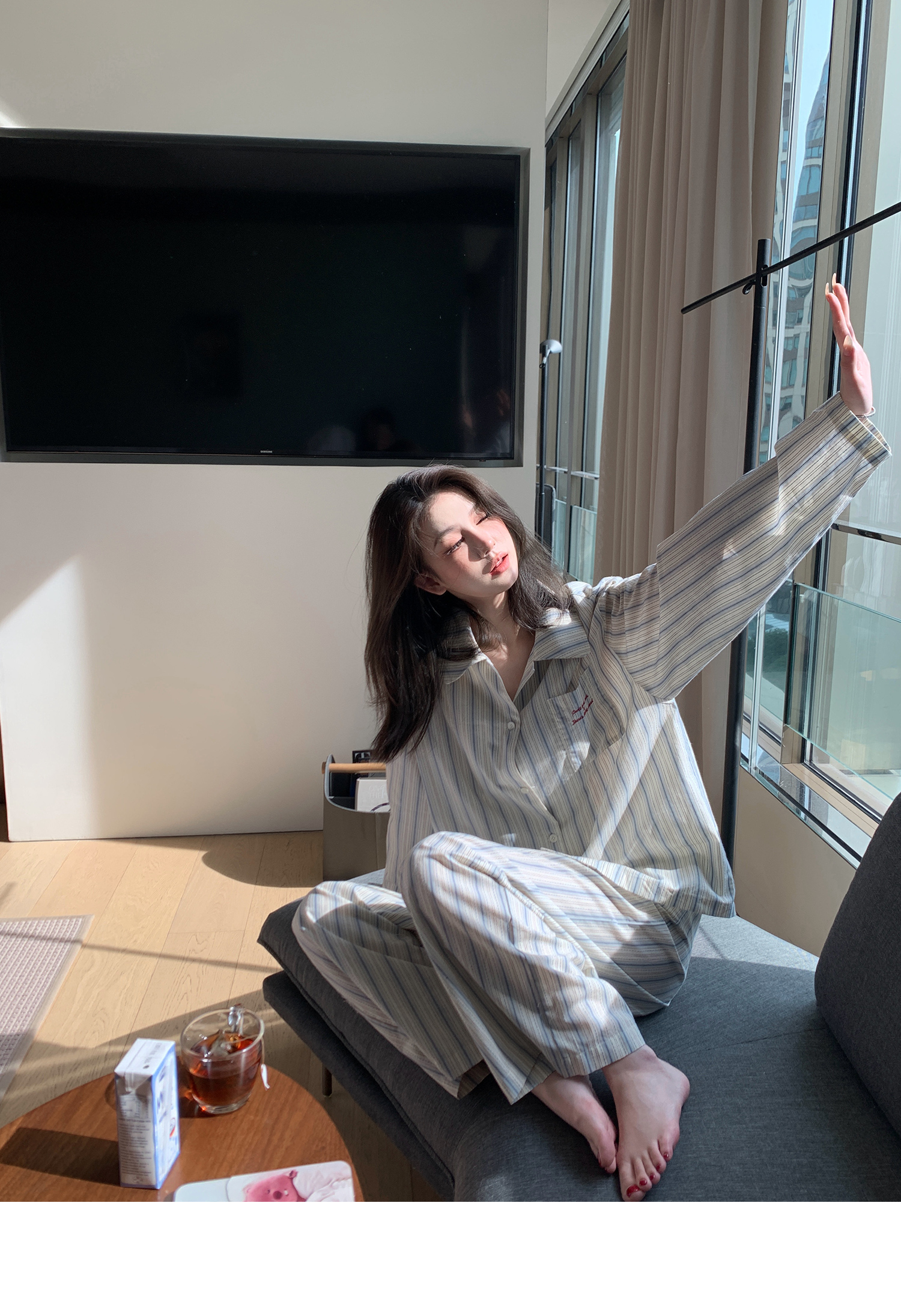 [Sleep Well] Retro Cotton Pajama Set - Women's Autumn Two-Piece Loungewear