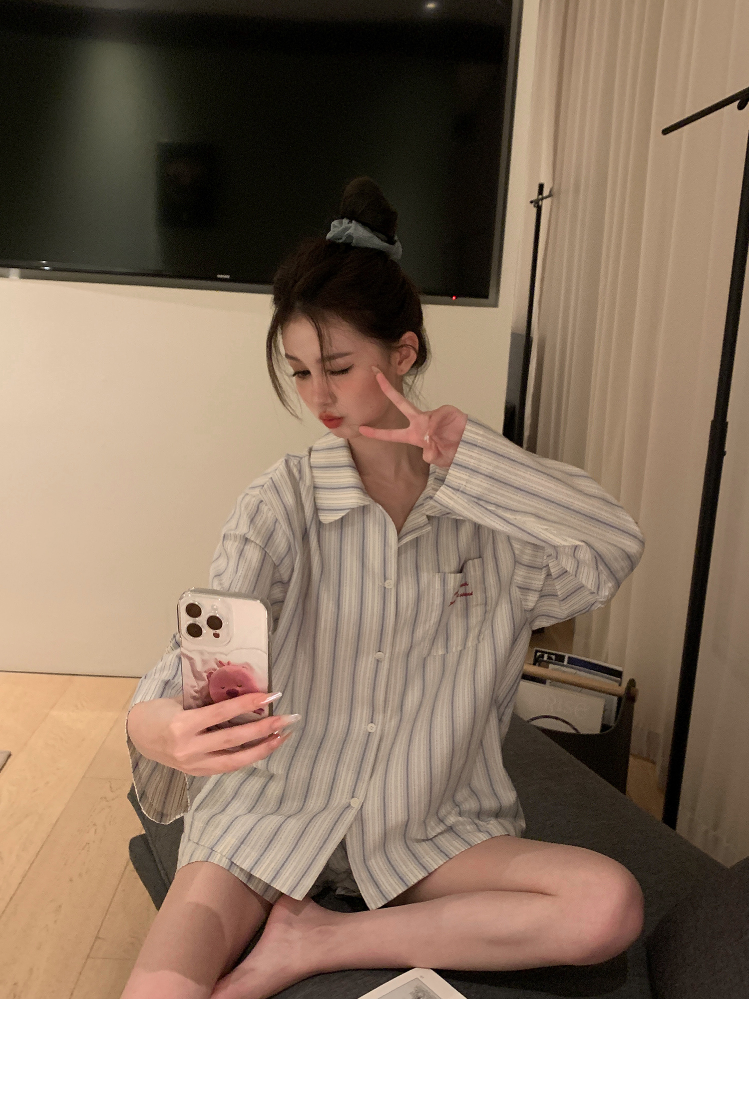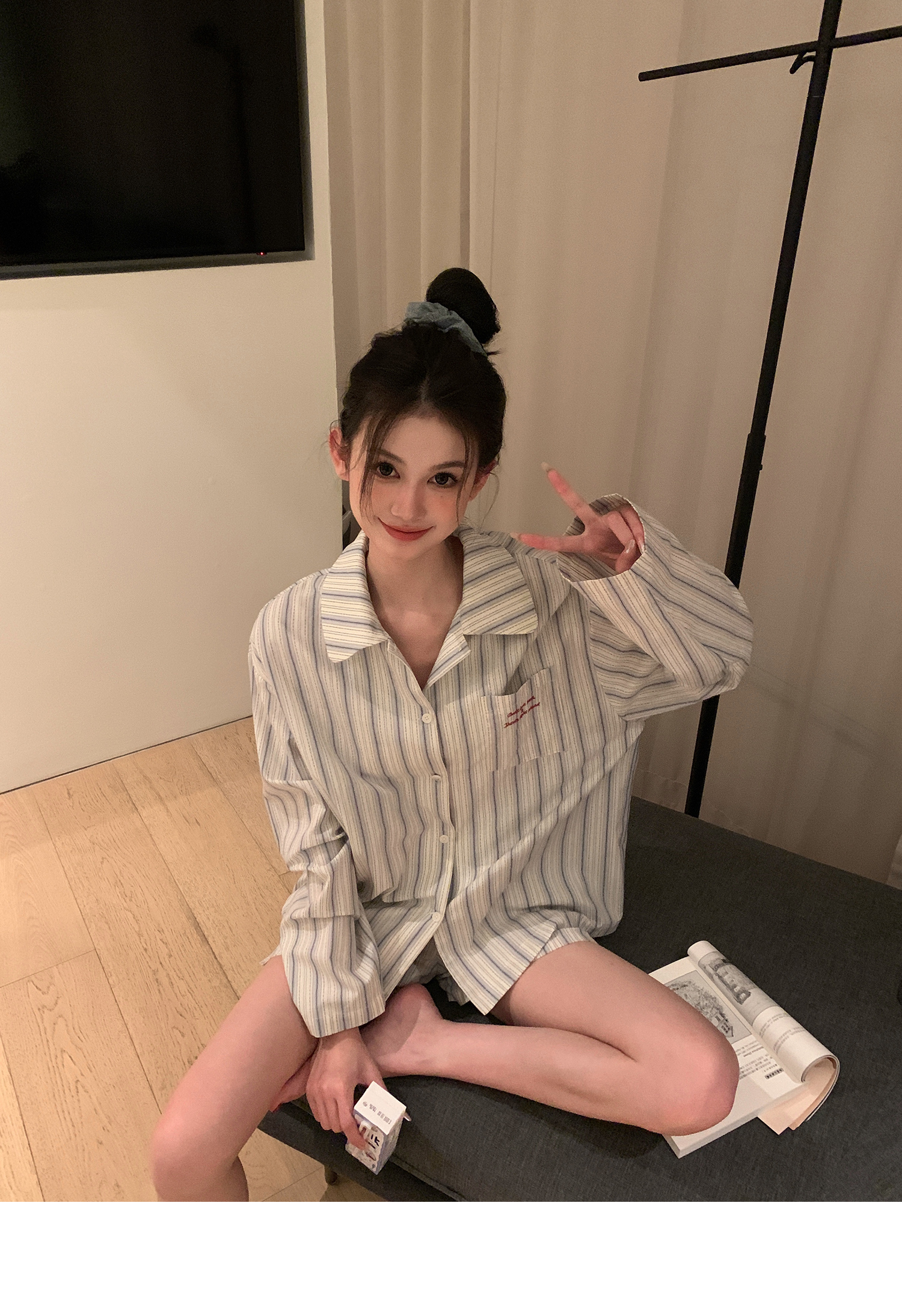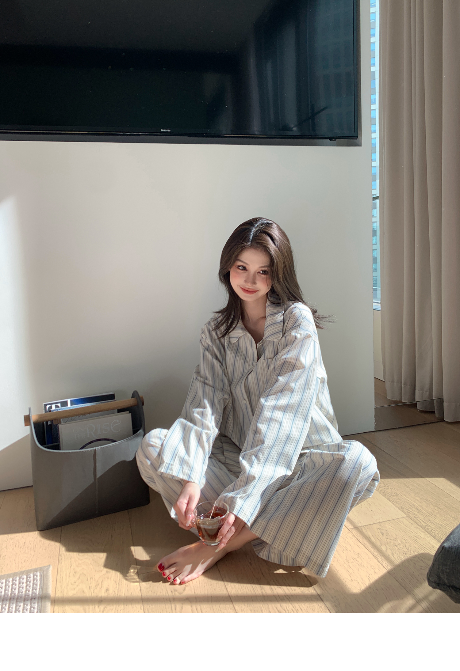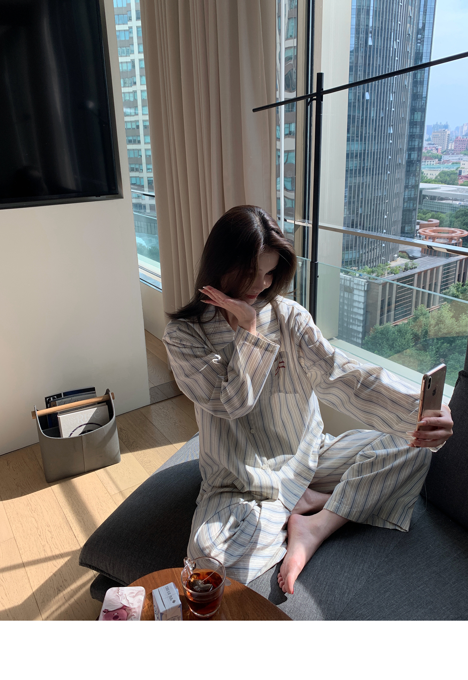 [Sleep Well] Retro Cotton Pajama Set - Women's Autumn Two-Piece Loungewear