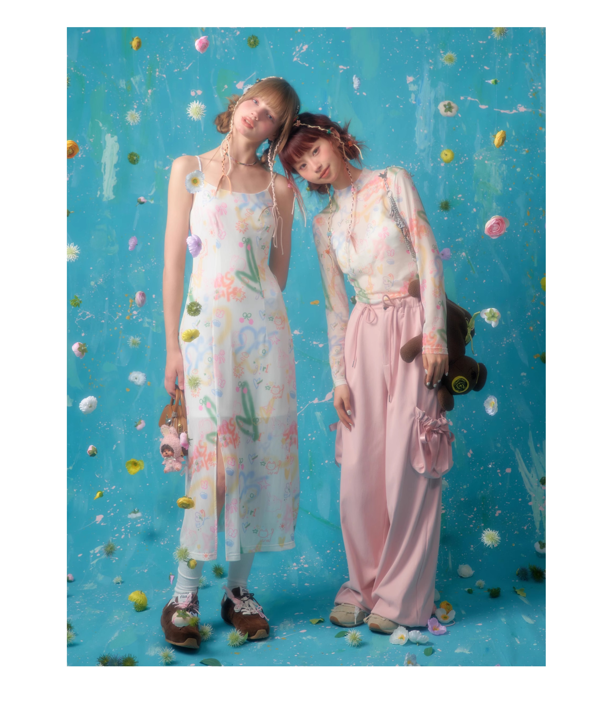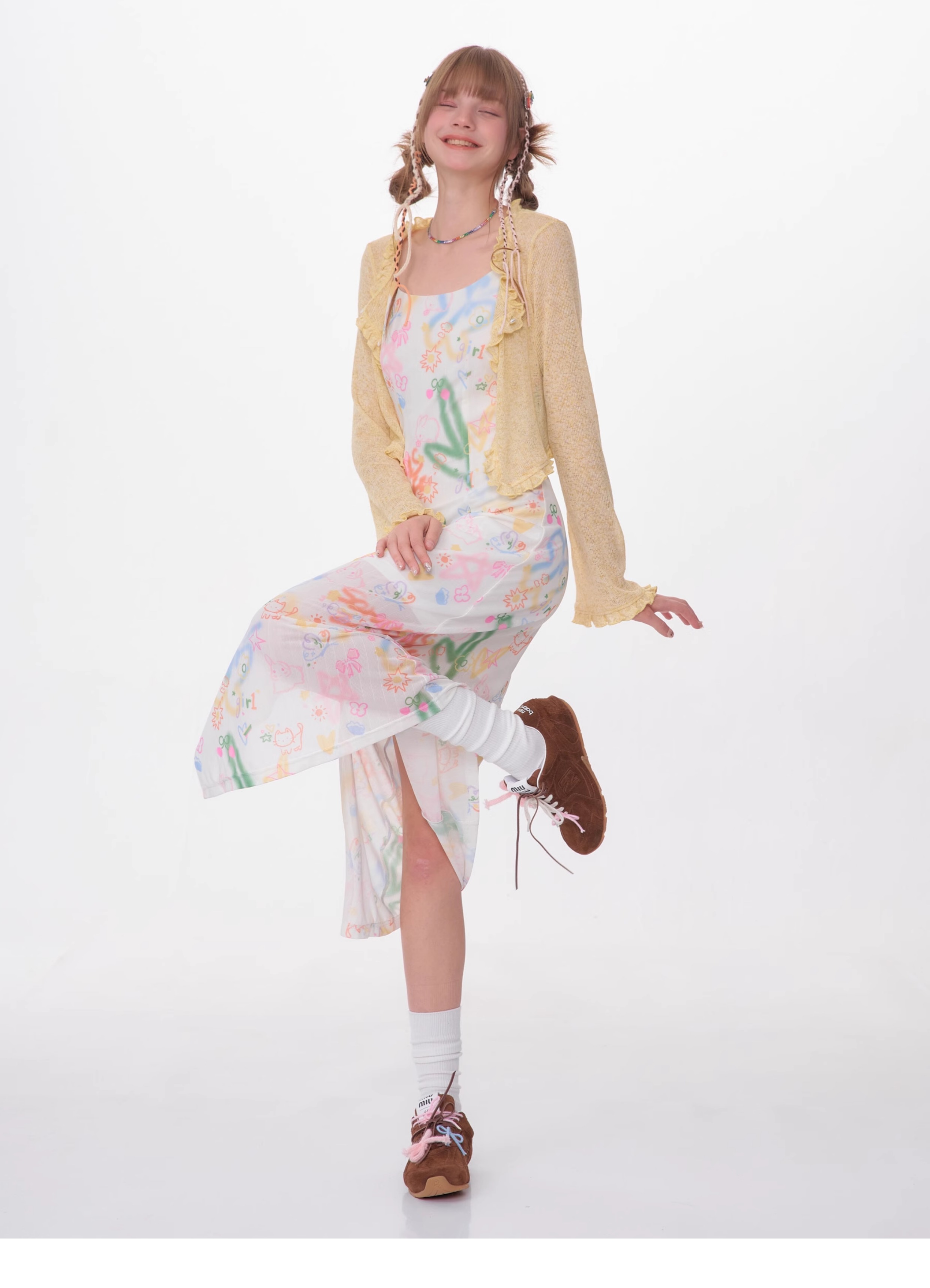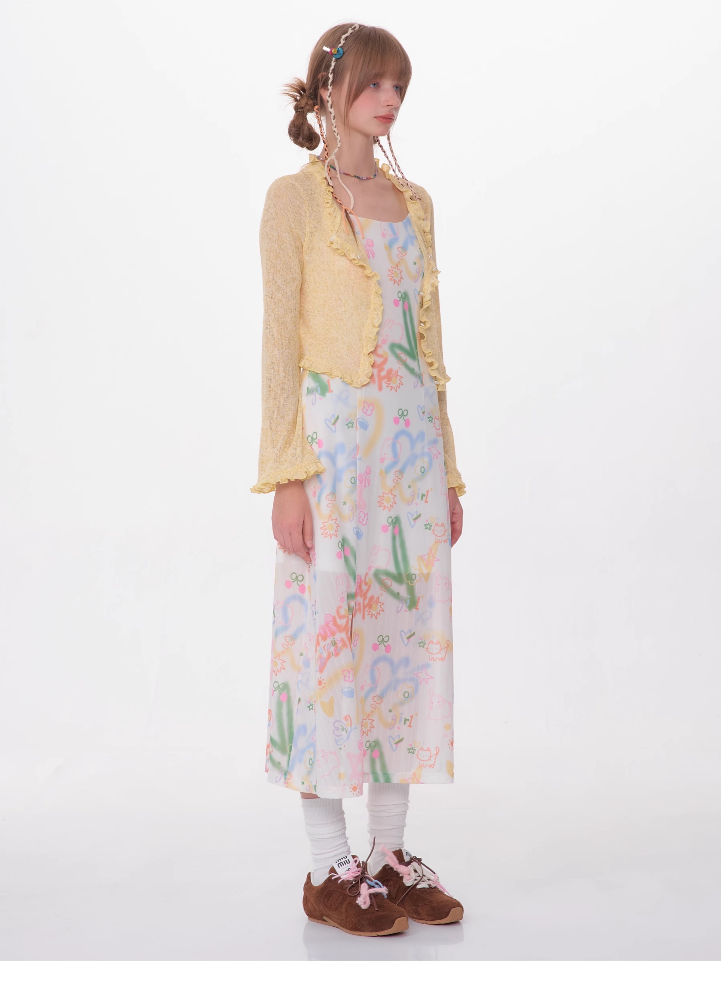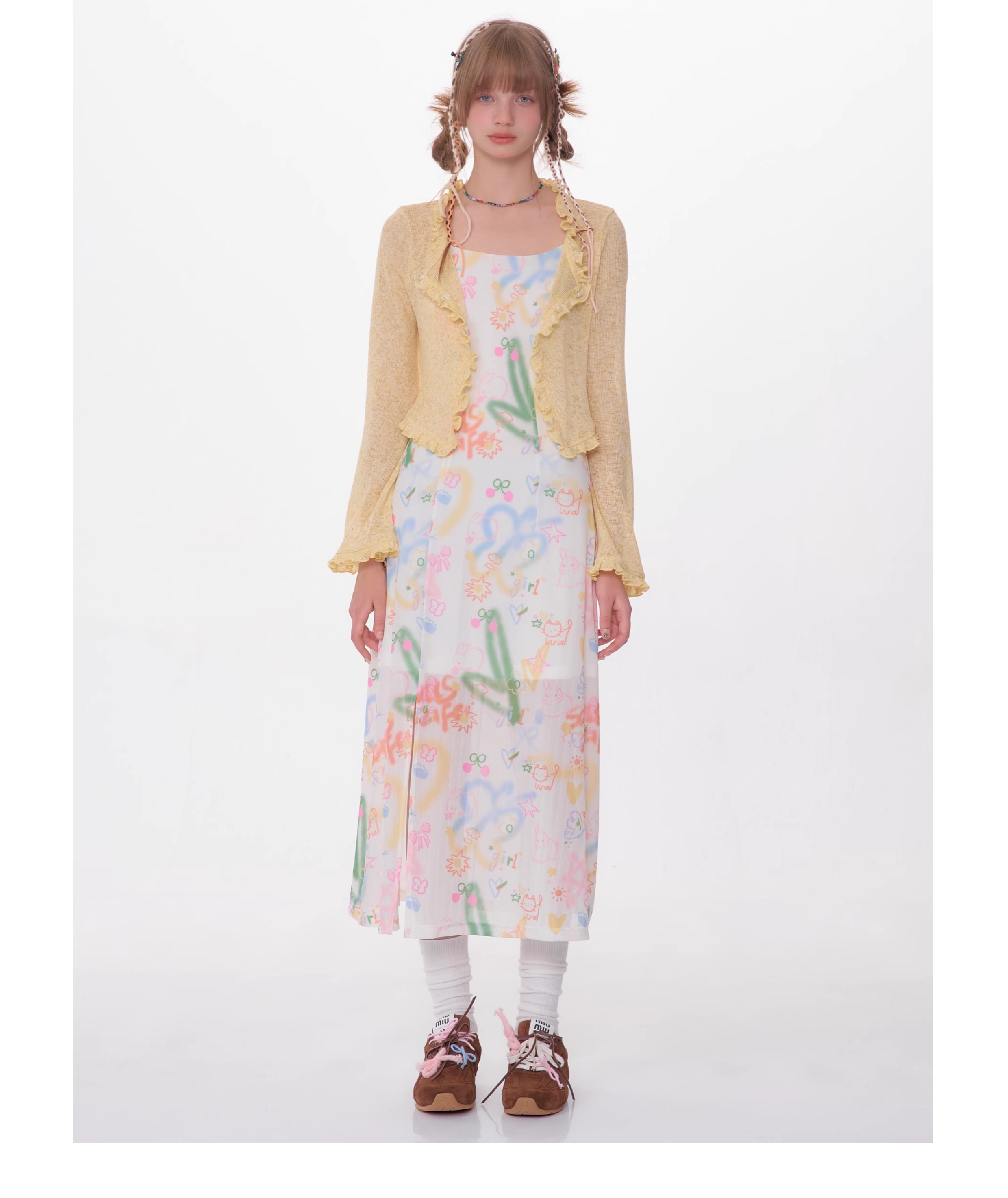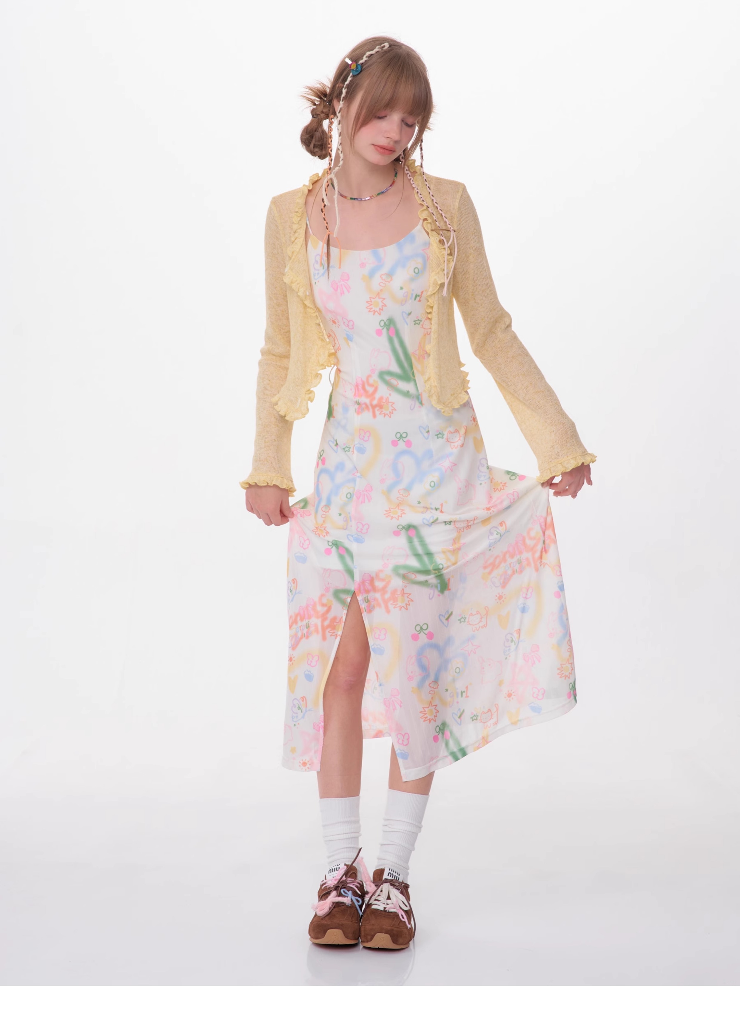 Платье на бретелях с принтом граффити | Длинная юбка приталенного кроя в стиле ретро весна/лето
