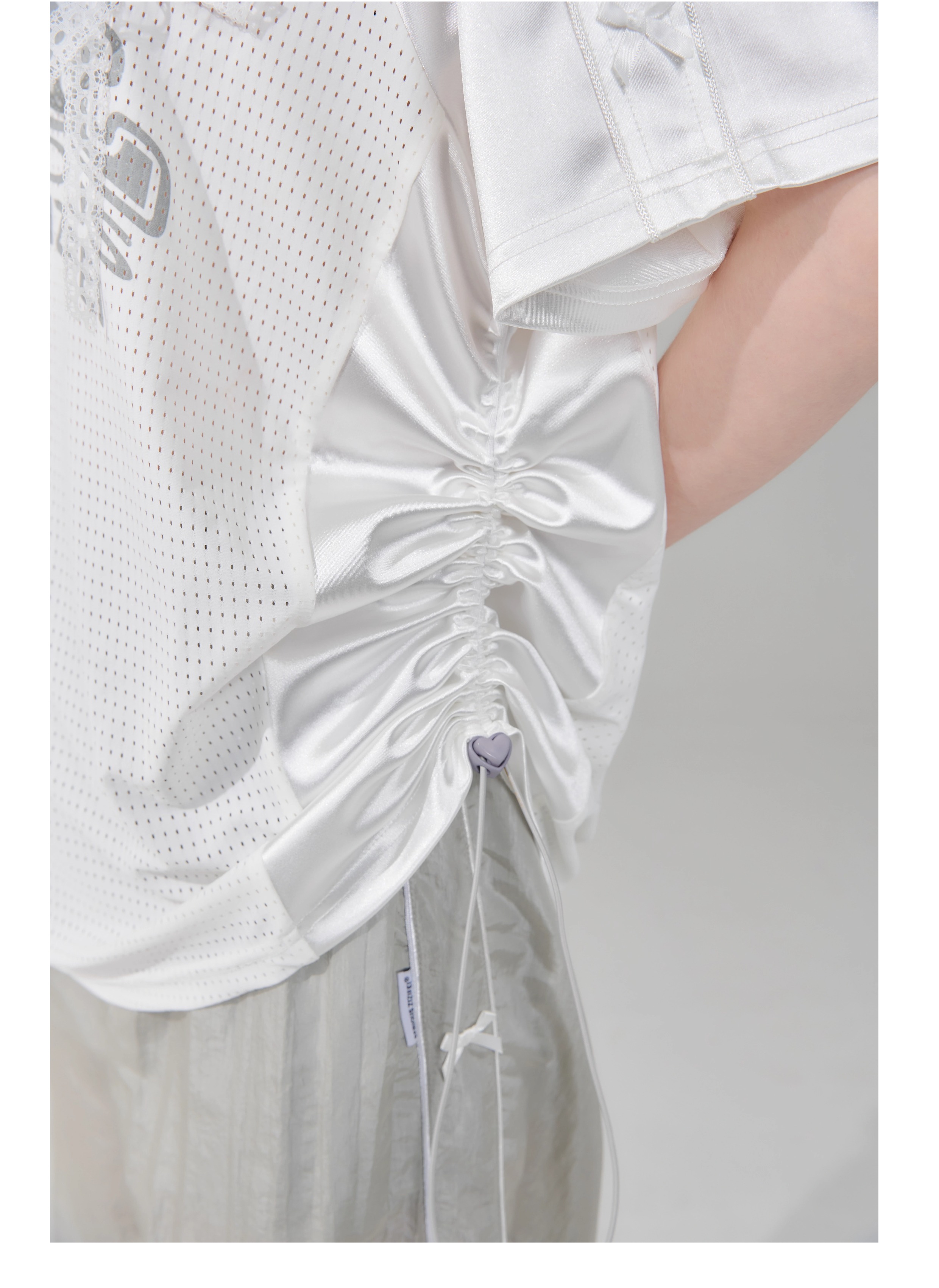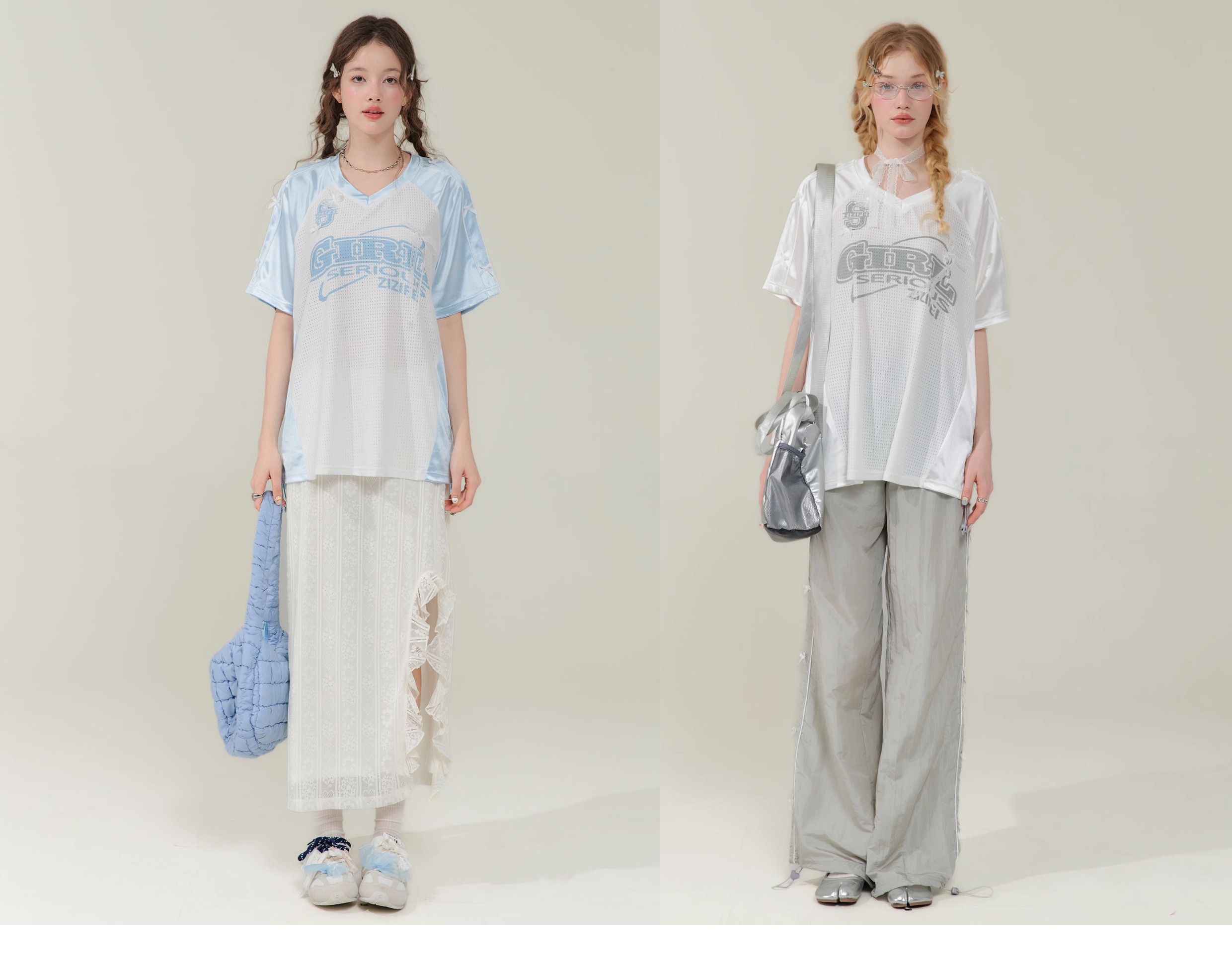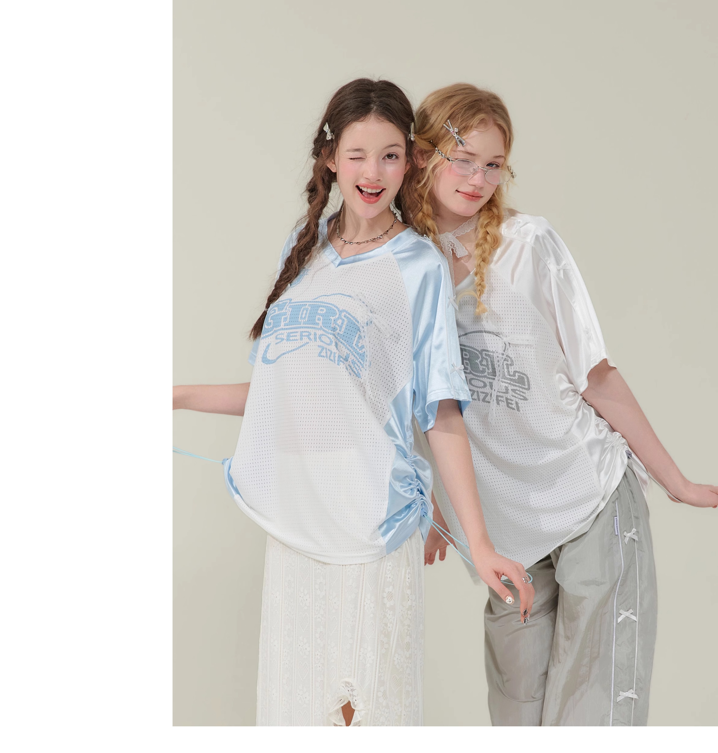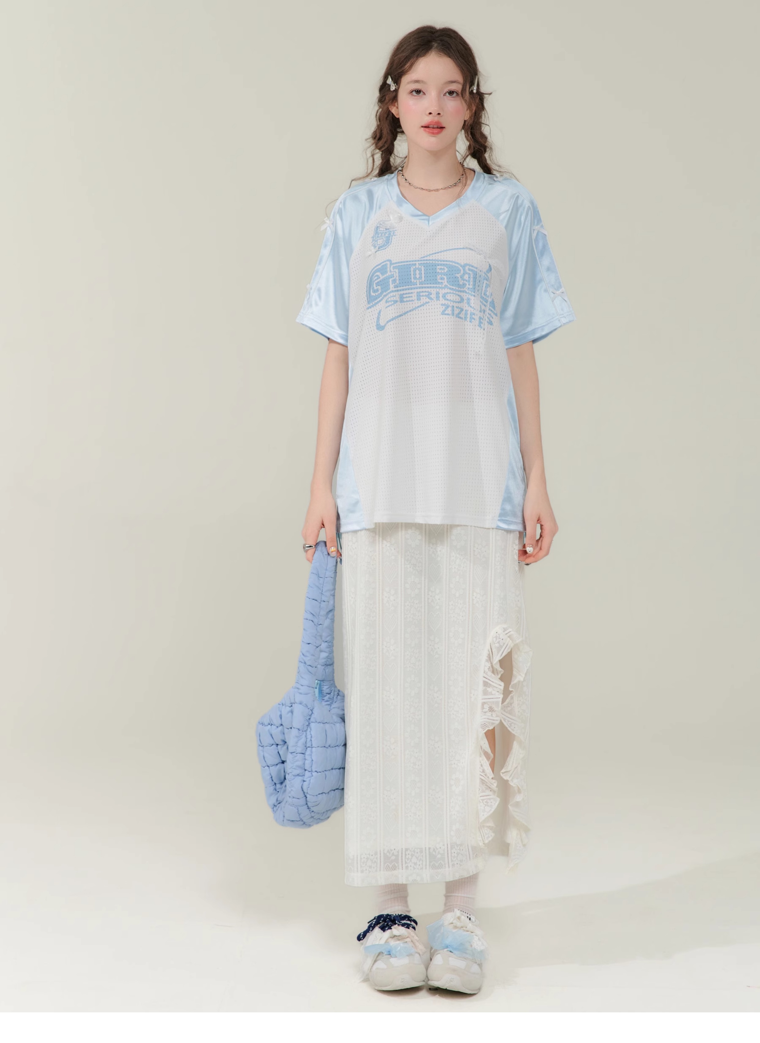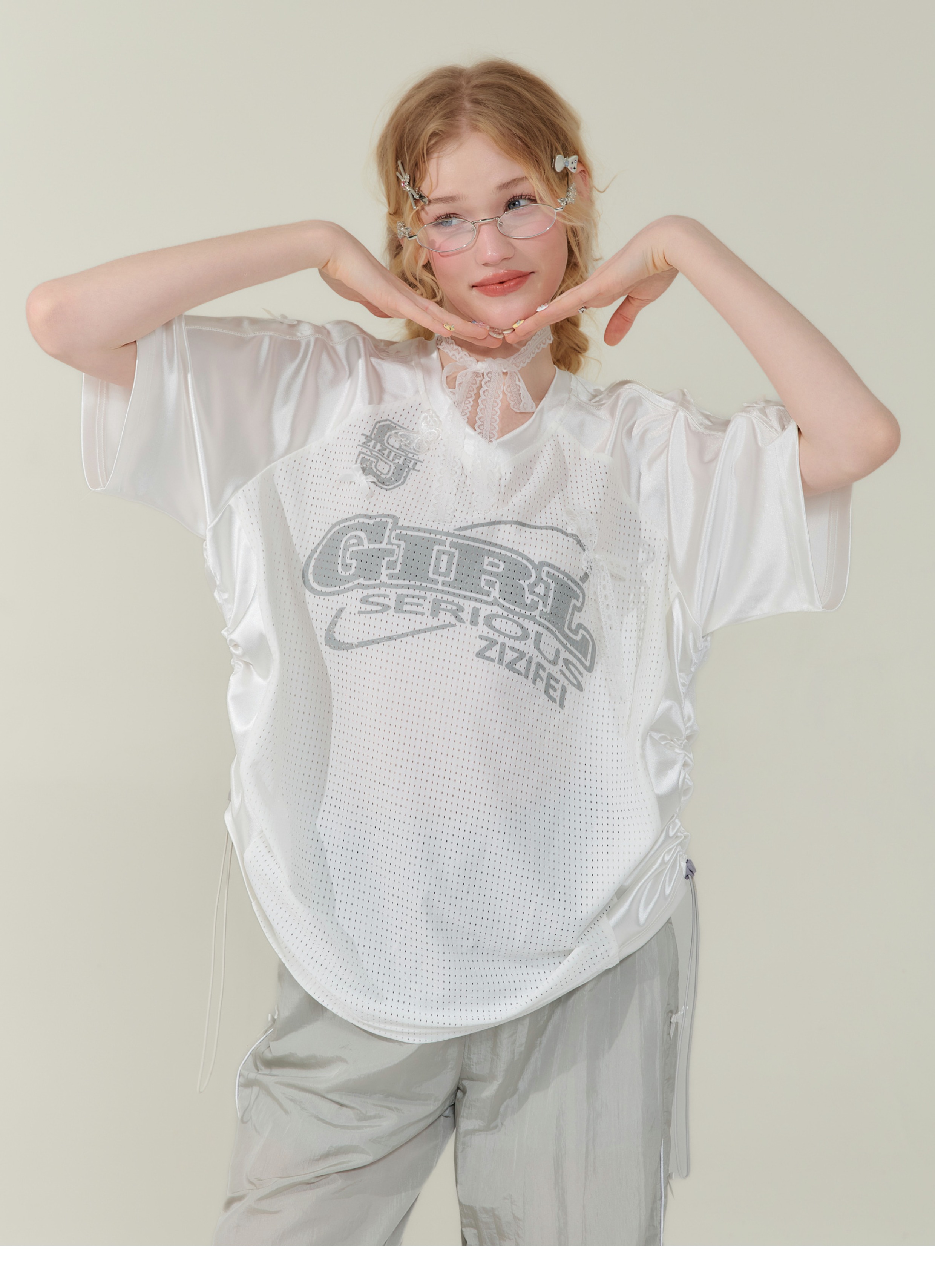 Футболка с V-образным вырезом и бантом с буквенным принтом Fast Dry Sports Design для лета в стиле ретро