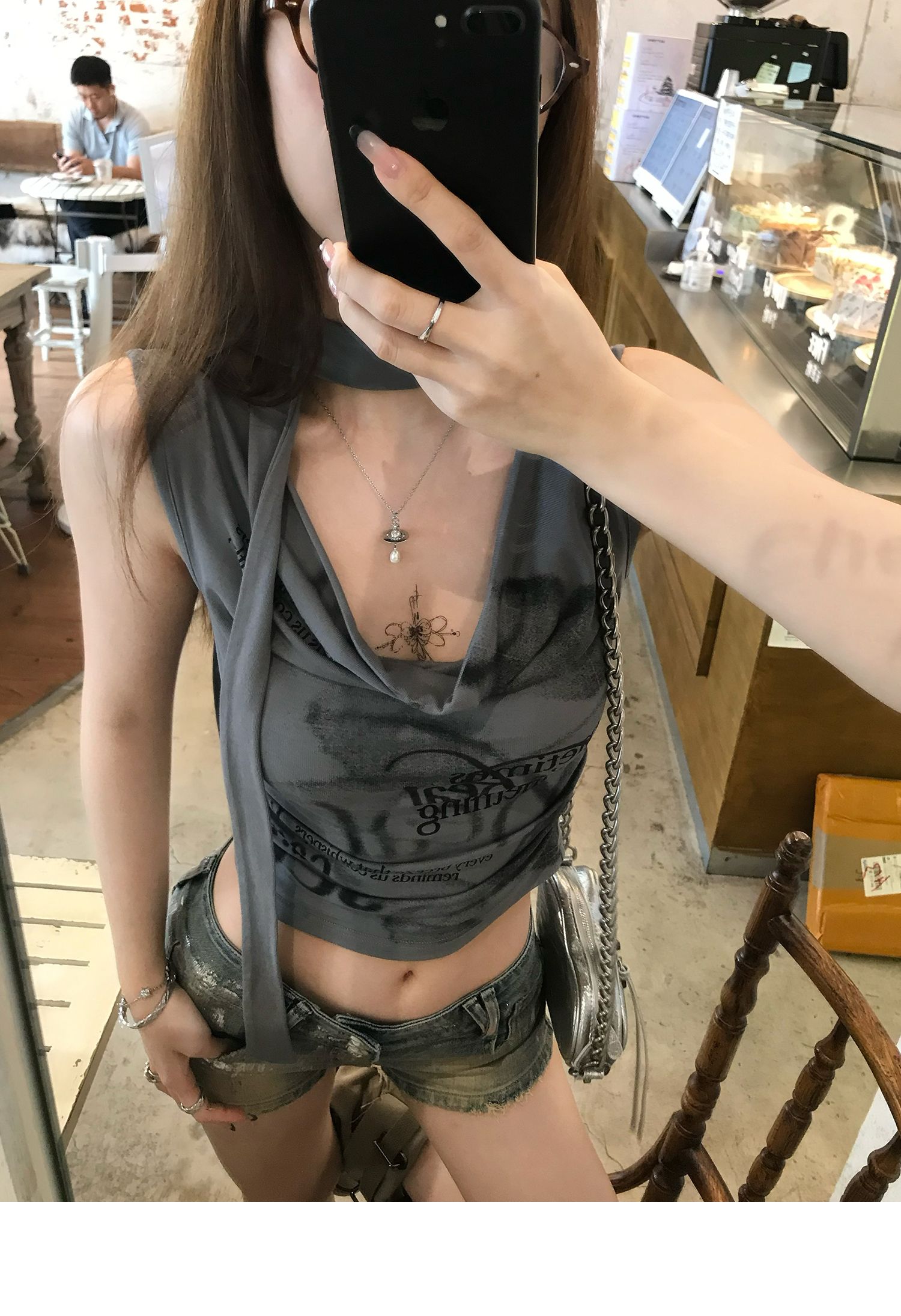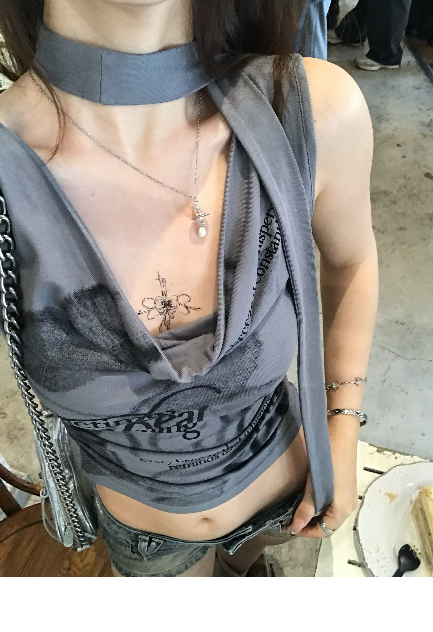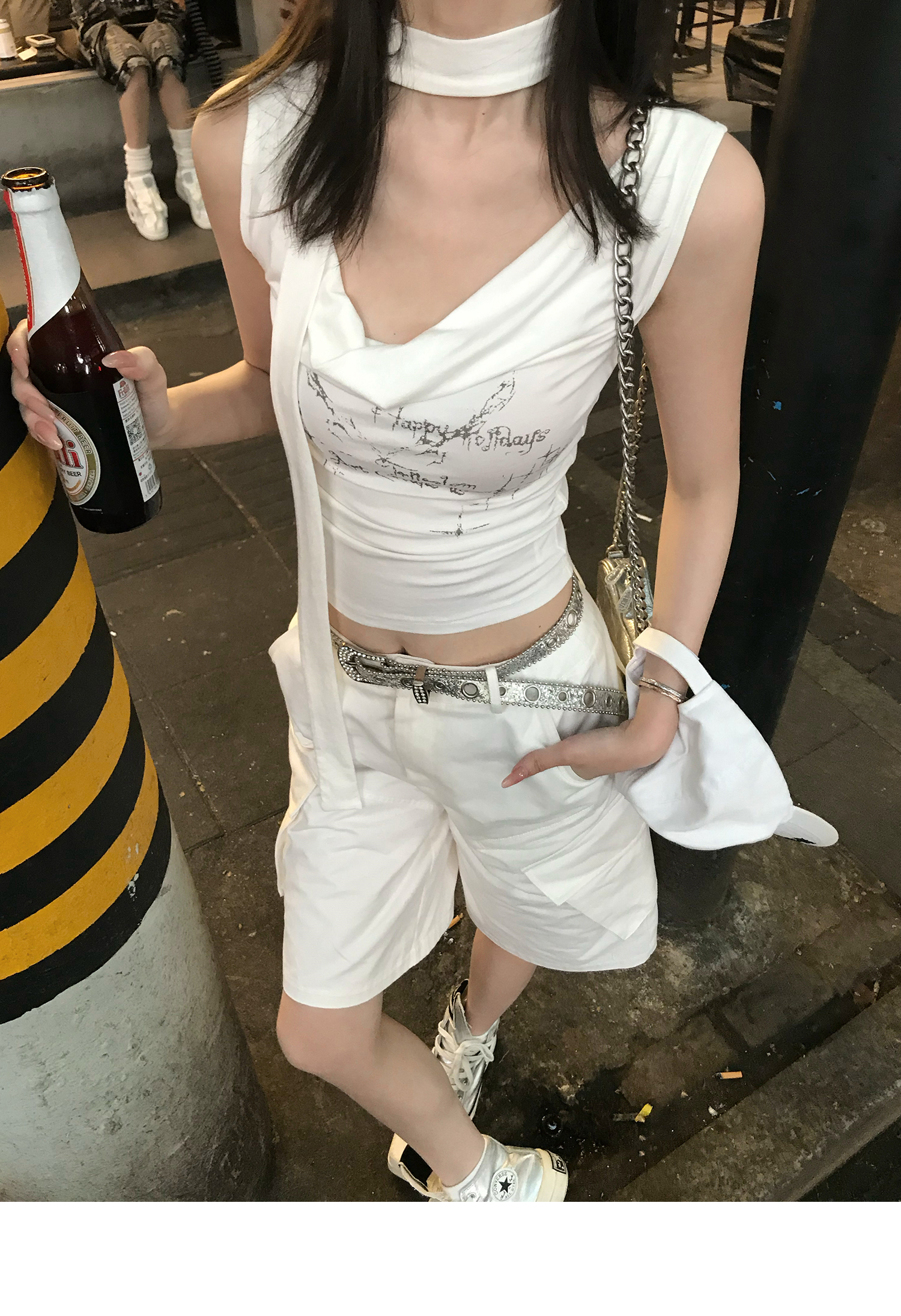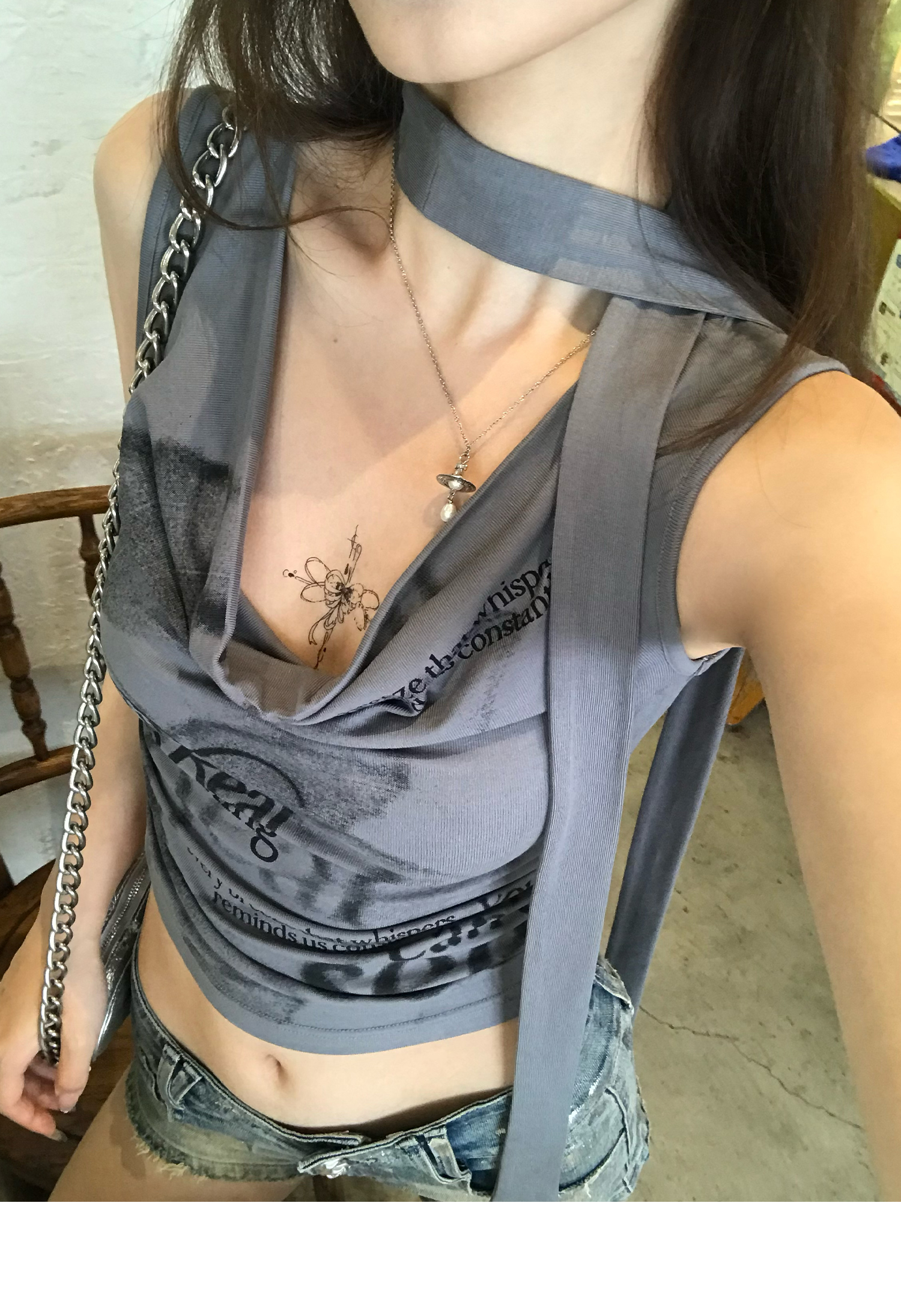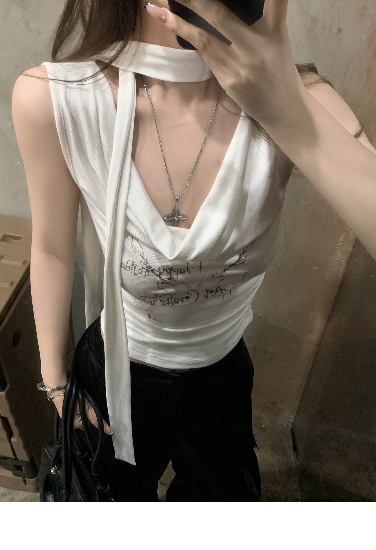 Swing Neck Short-Sleeve Halter Tank Top