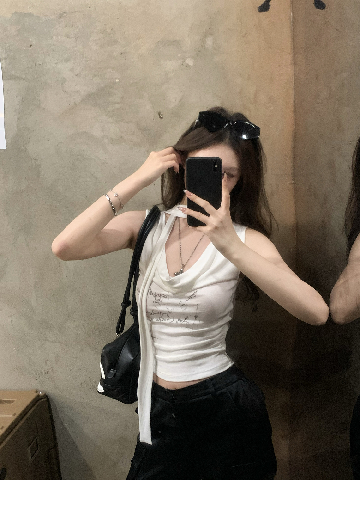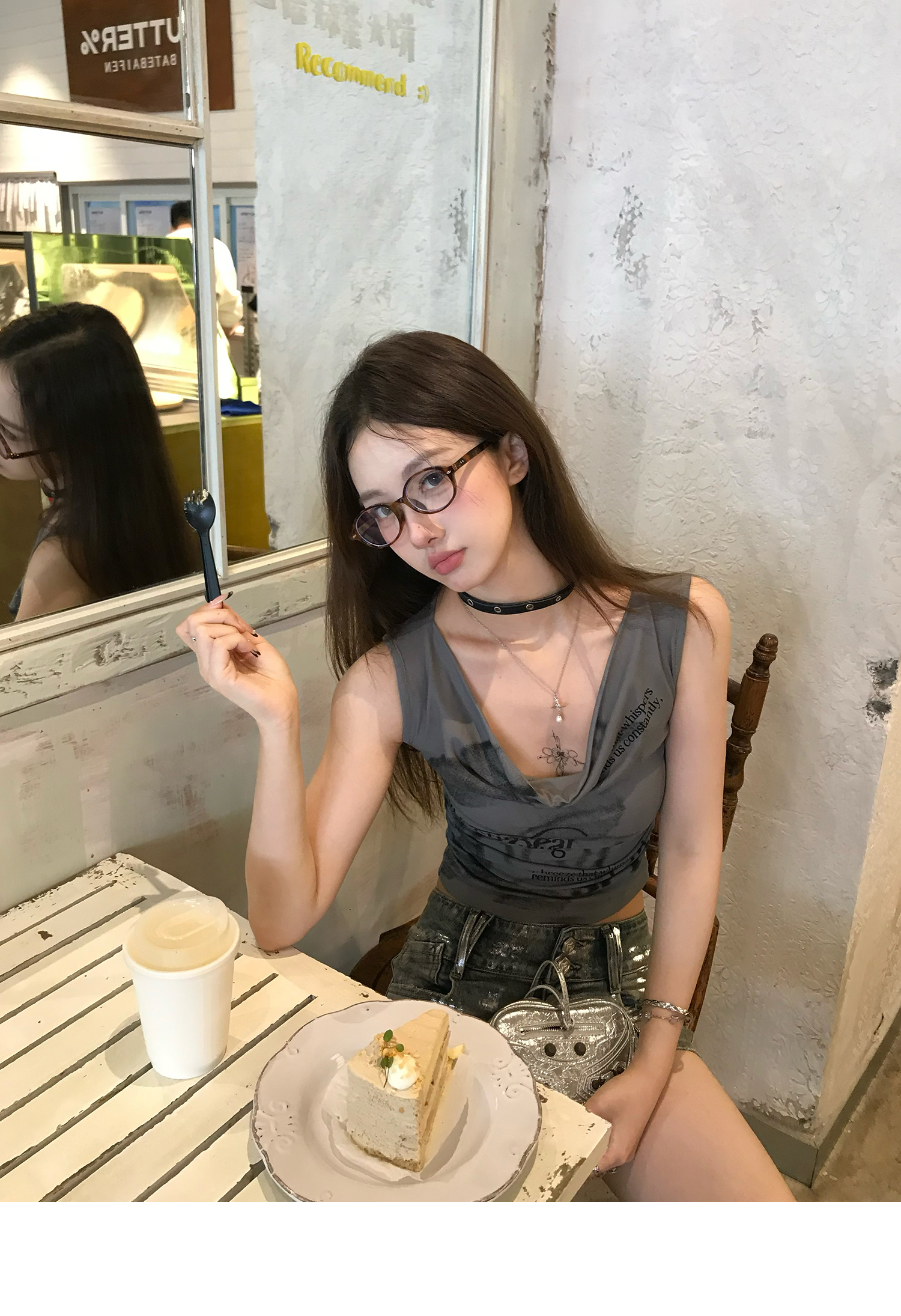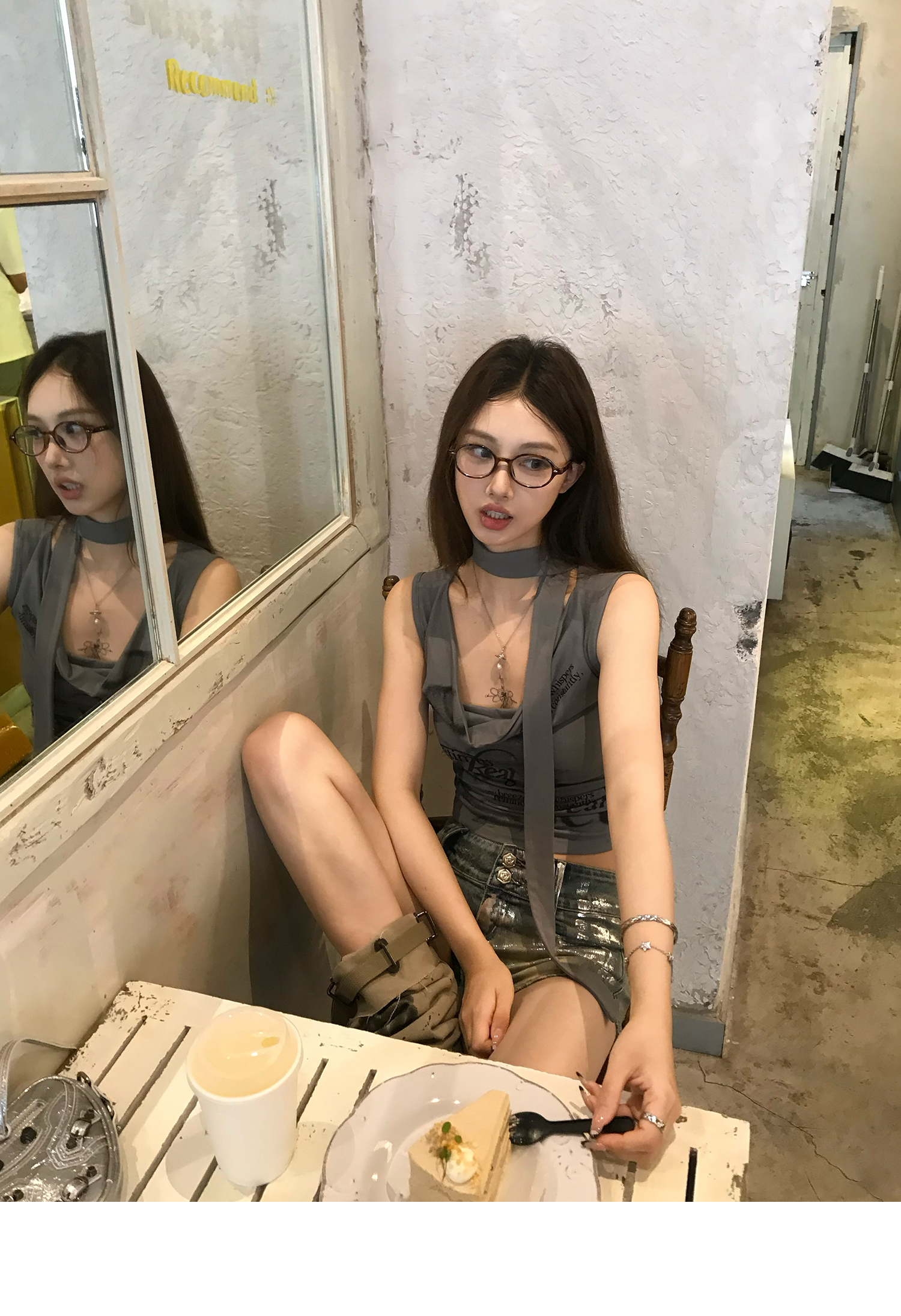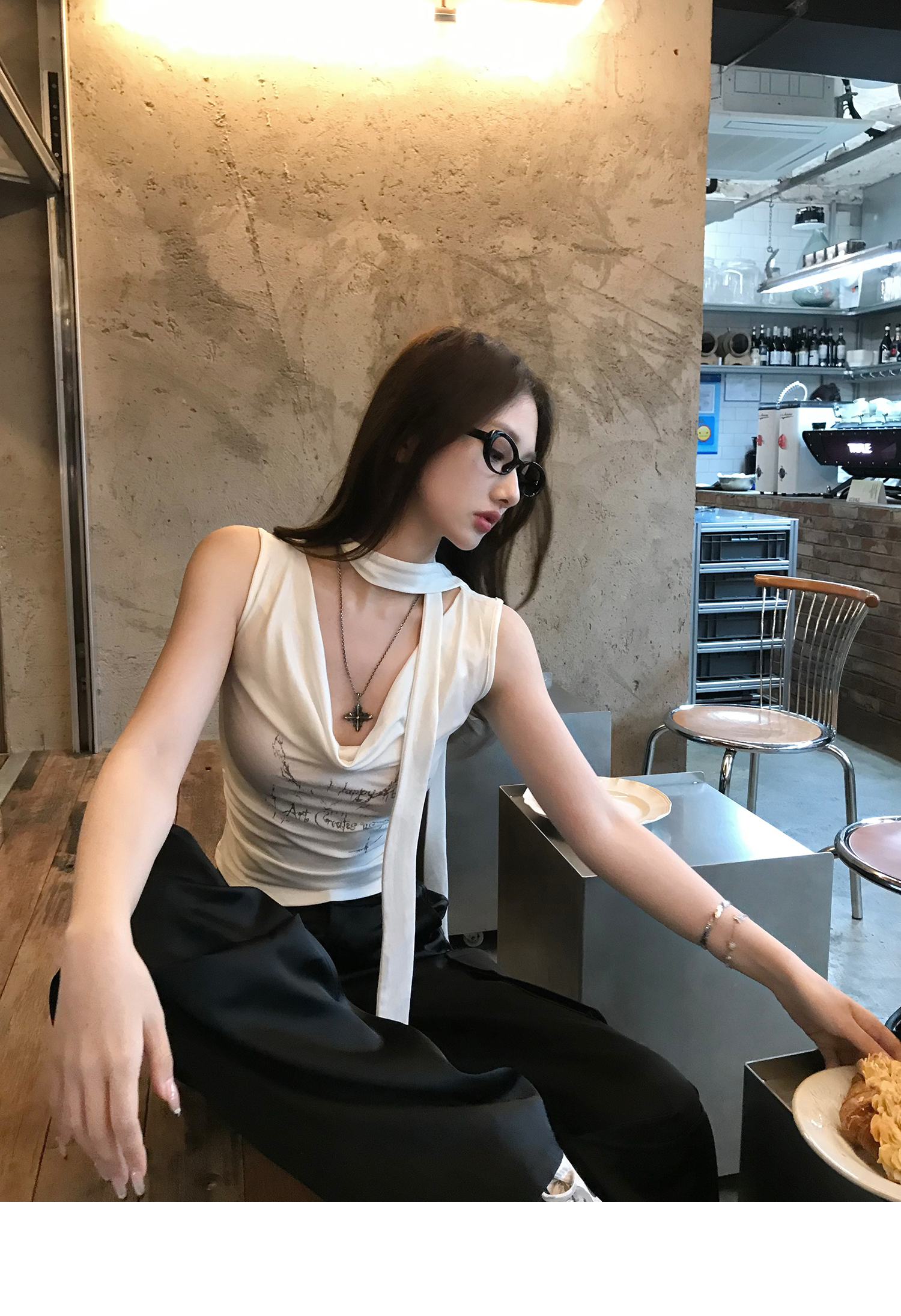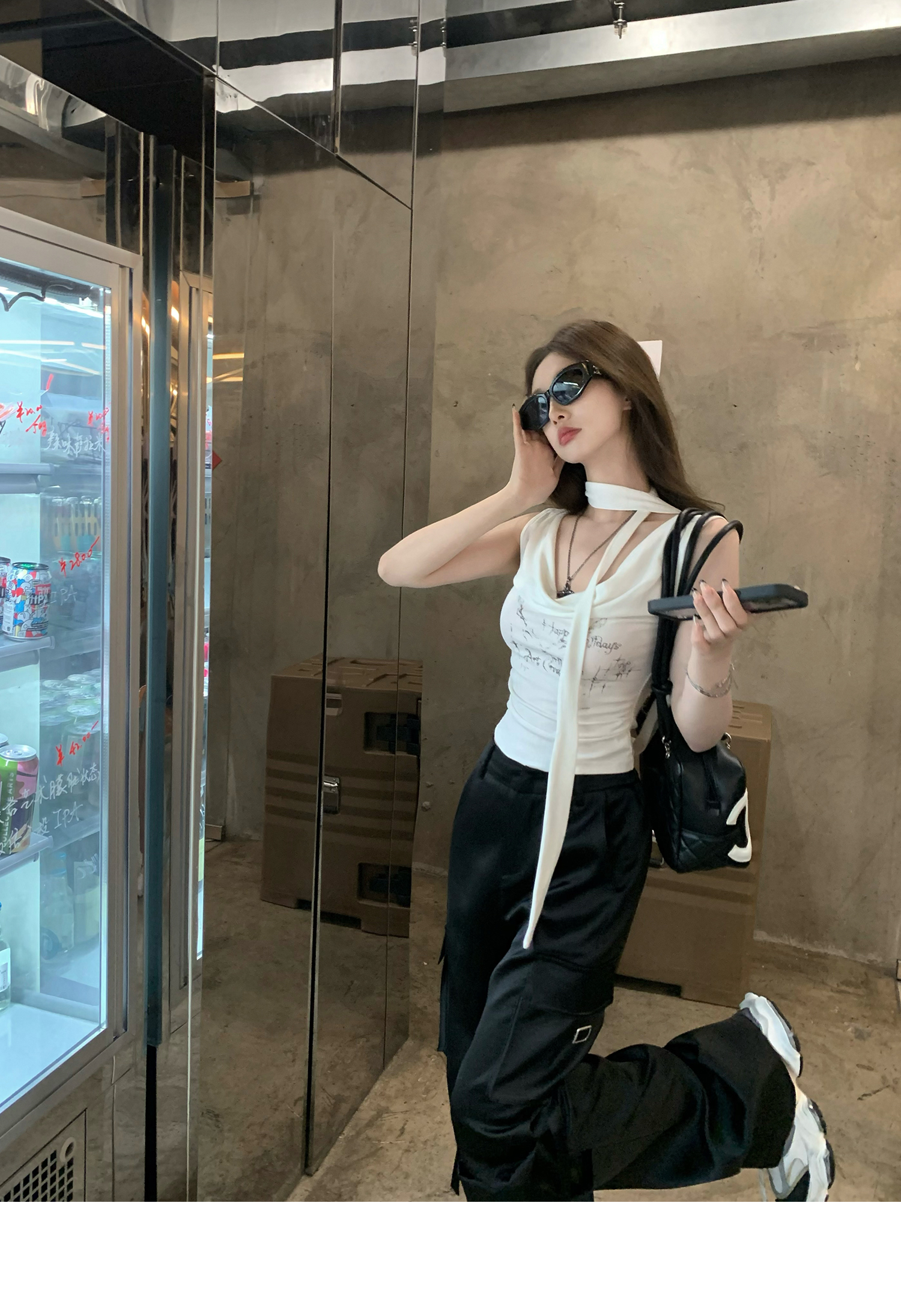 Swing Neck Short-Sleeve Halter Tank Top