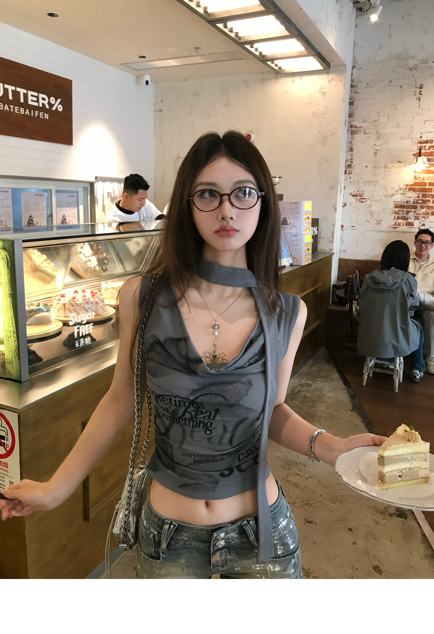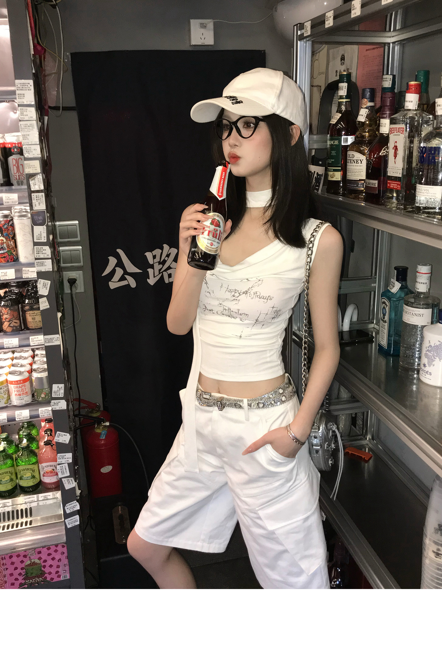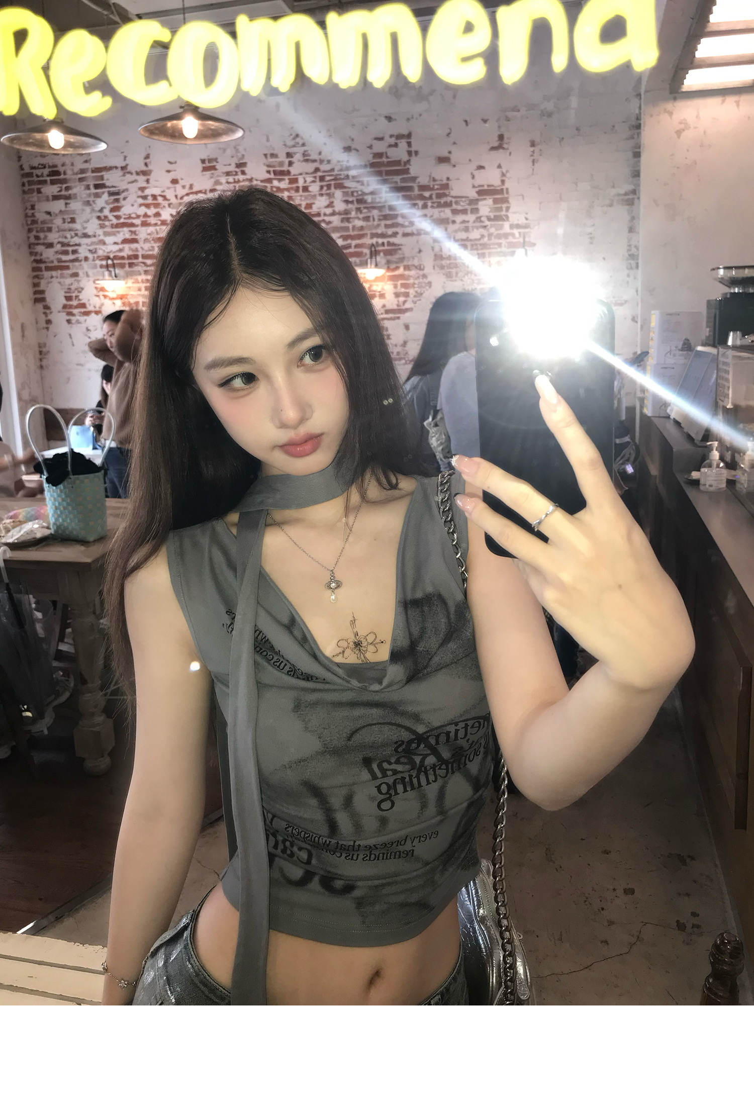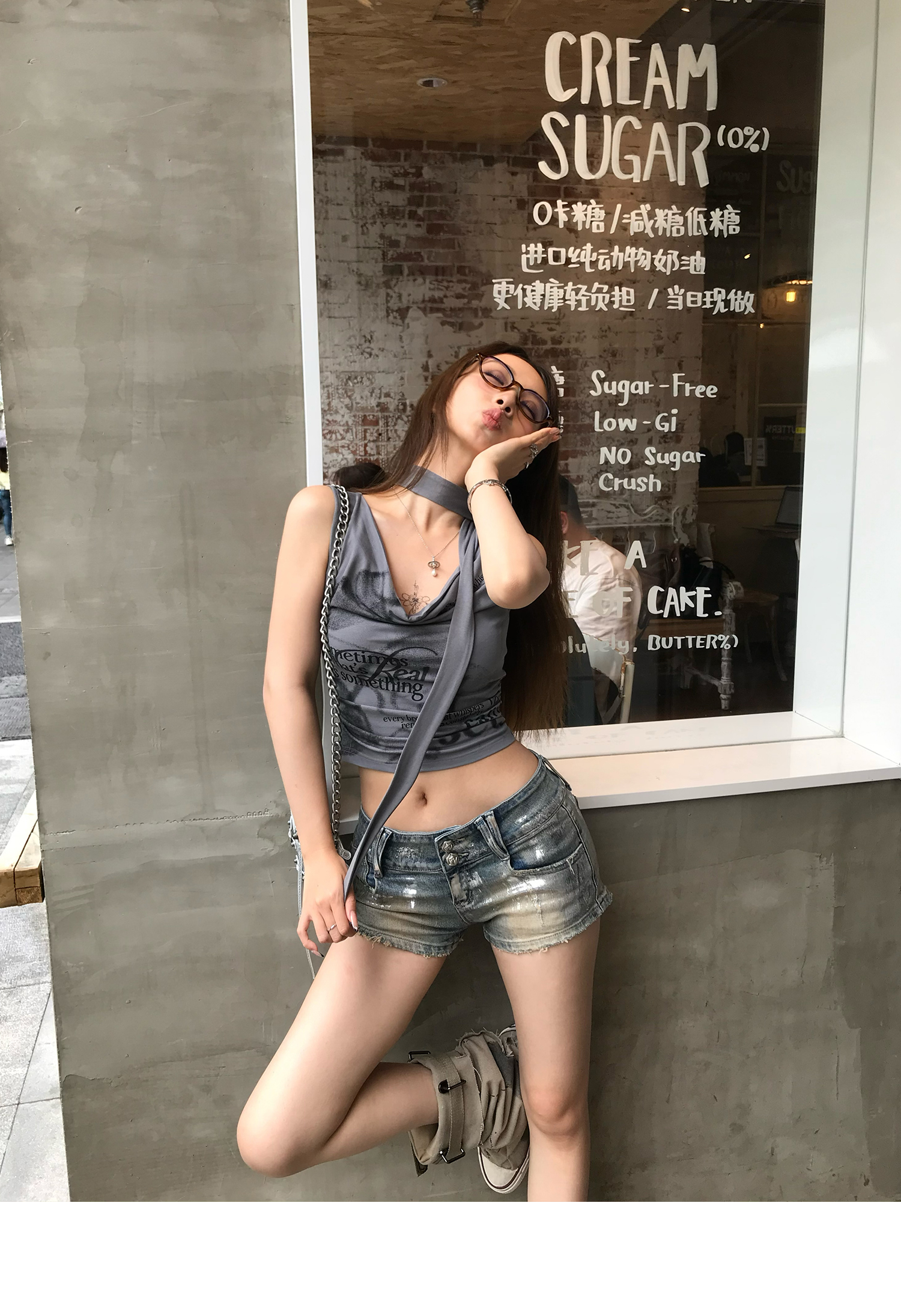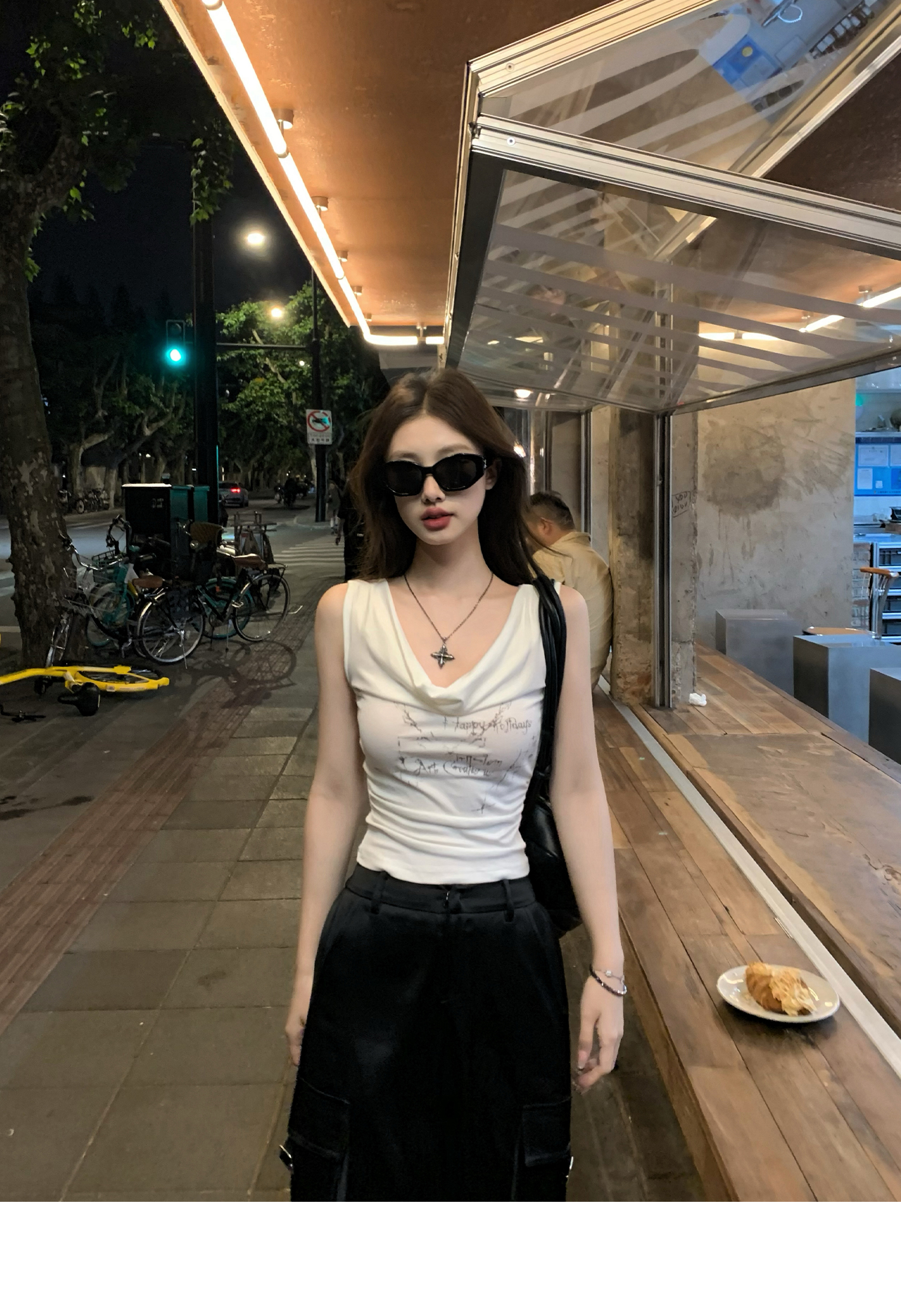 Swing Neck Short-Sleeve Halter Tank Top