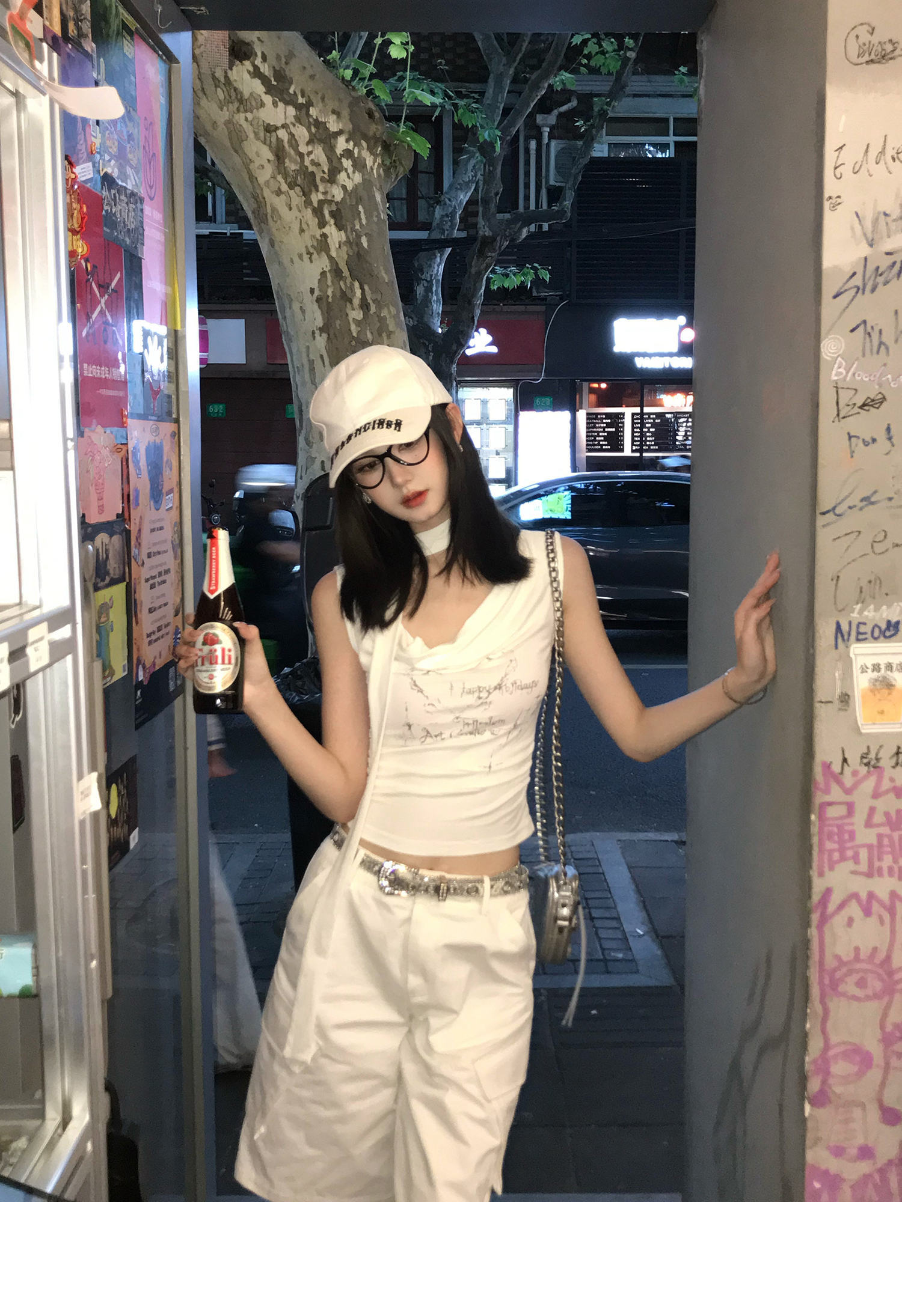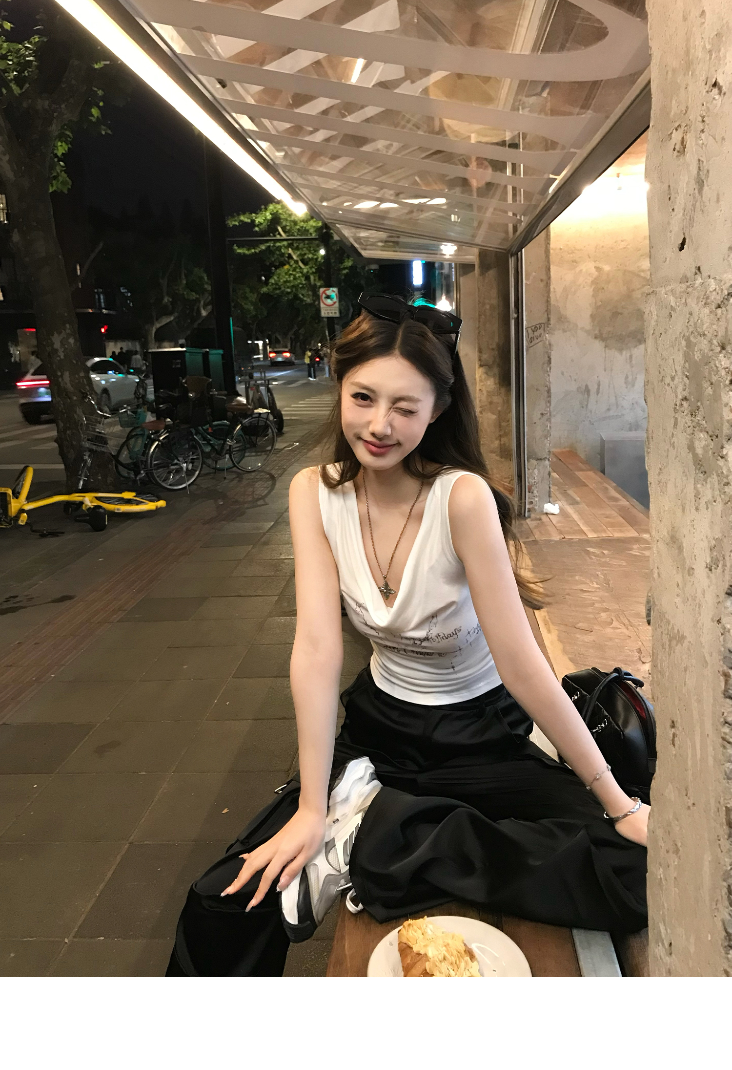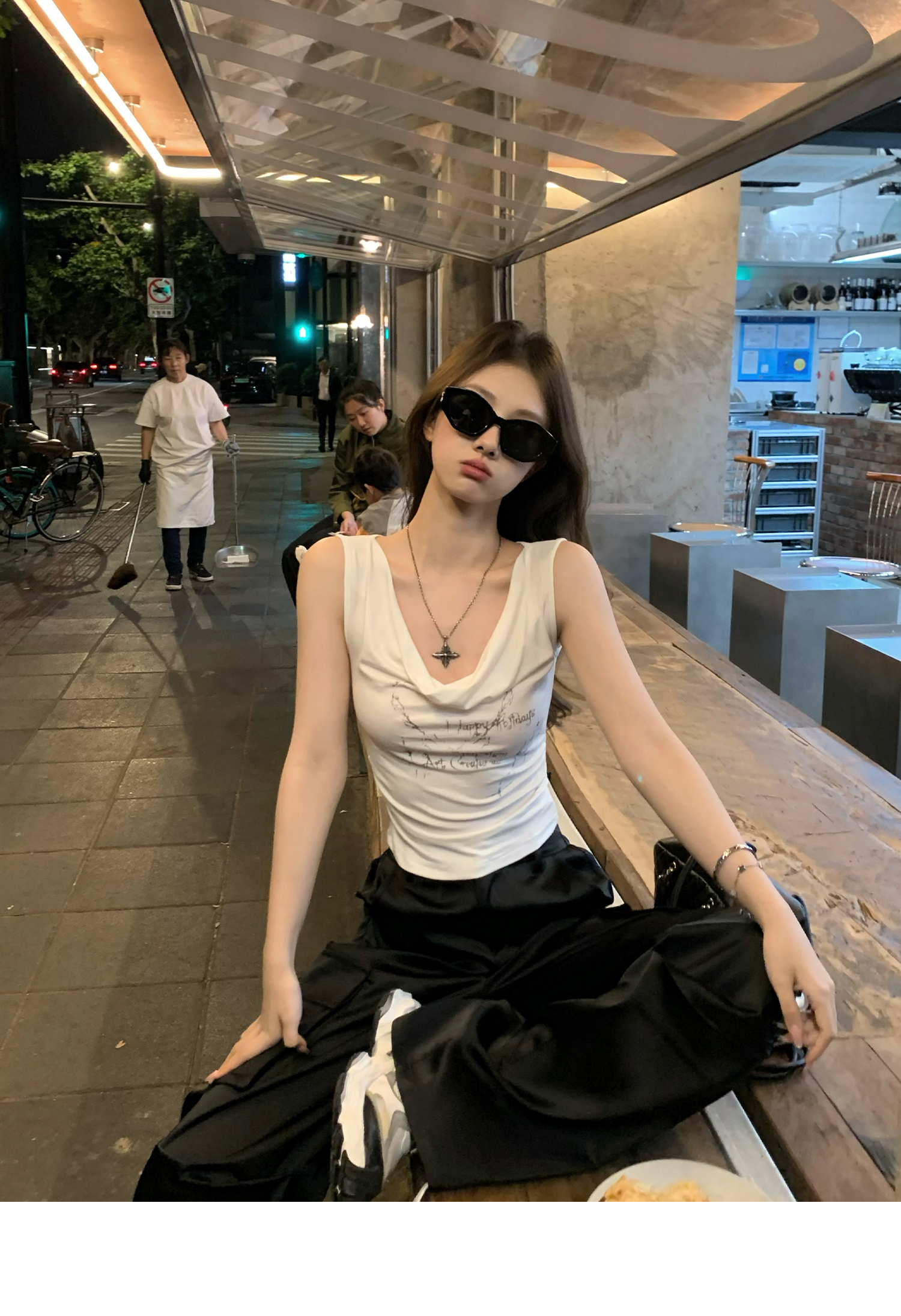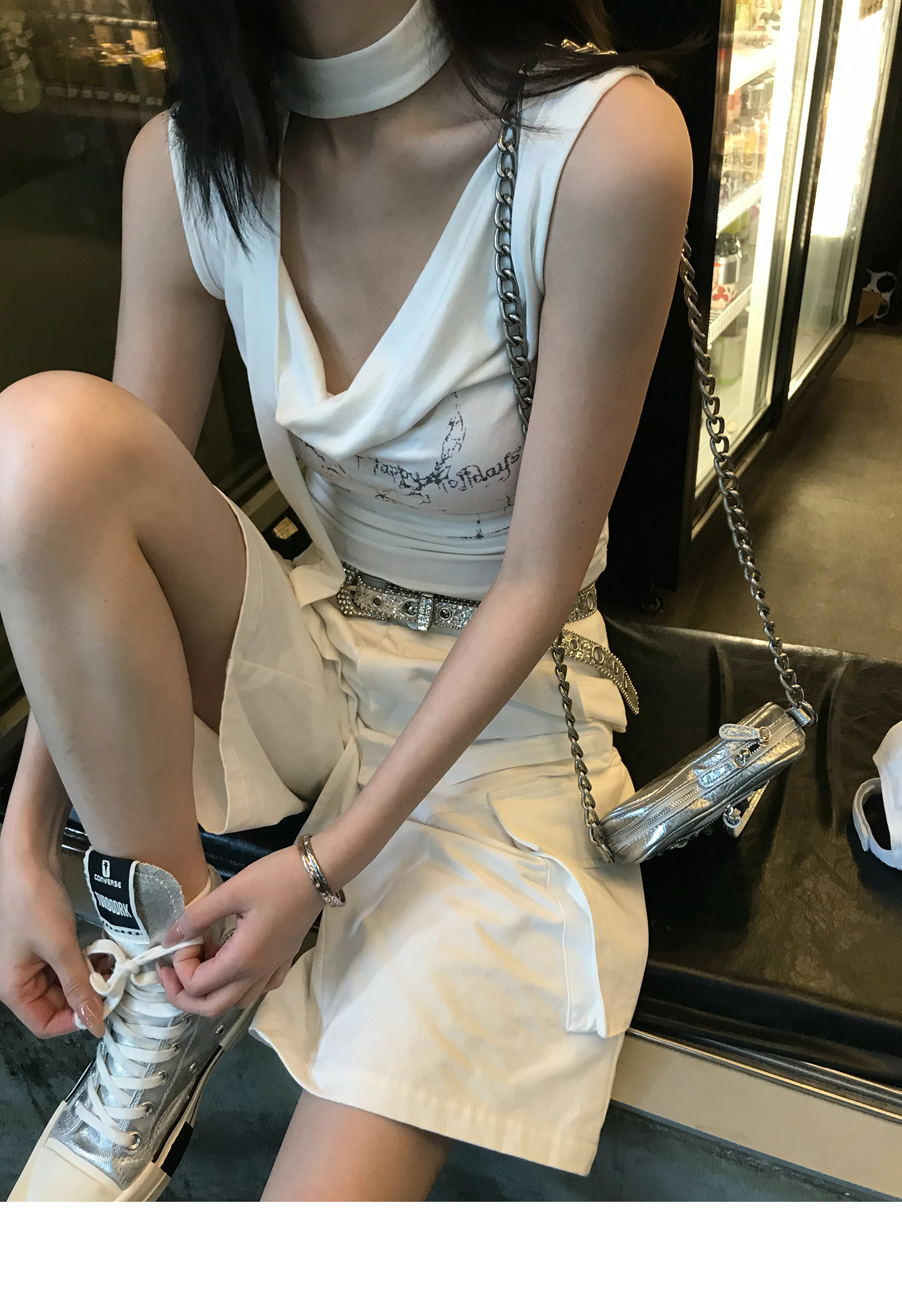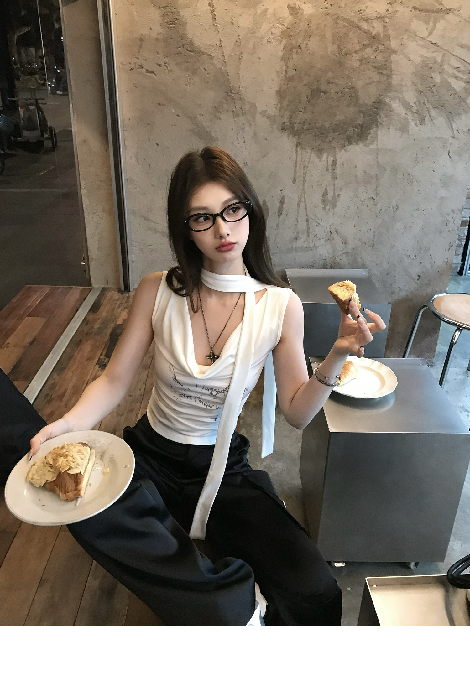 Swing Neck Short-Sleeve Halter Tank Top