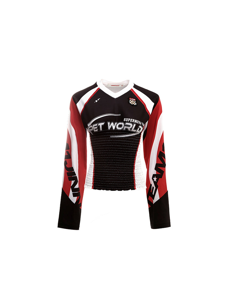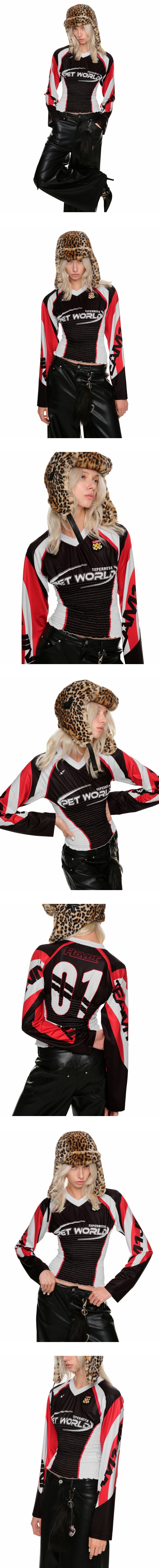 V-Neck Slim Cable Jersey Top – Cropped Long Sleeve Design