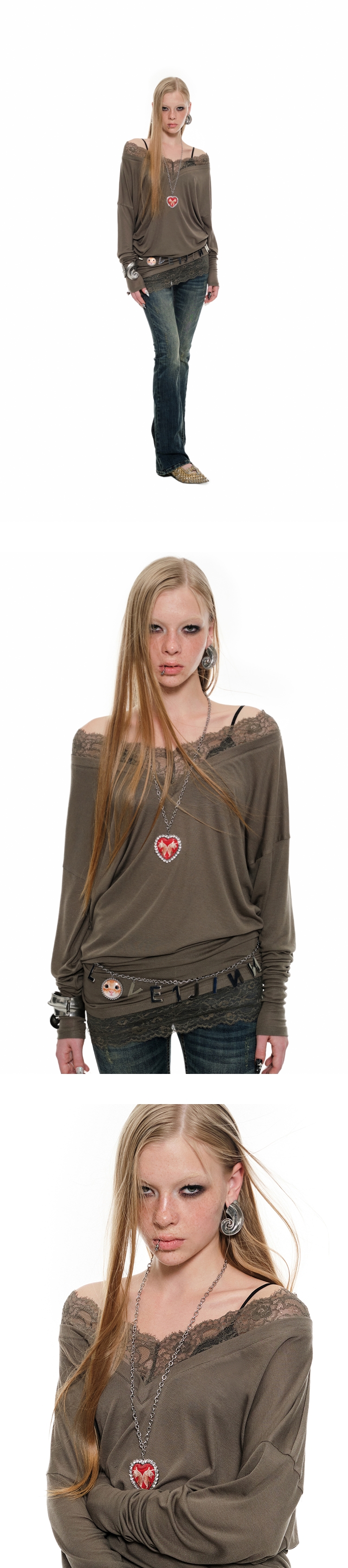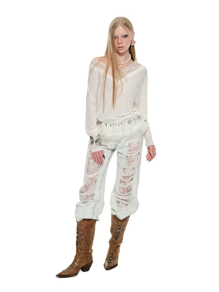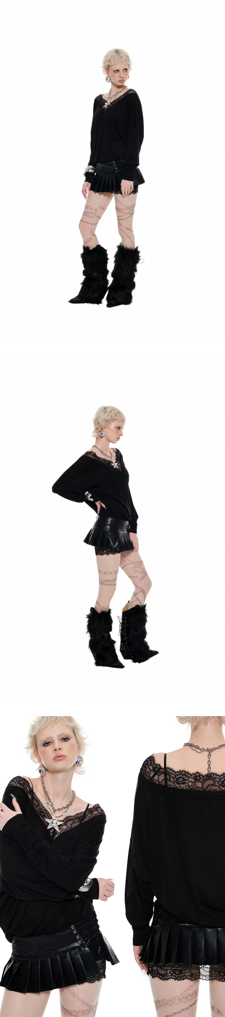 V-Neck Faux Two-Piece Lace Blouse – Loose Midi Cover-Up Top
