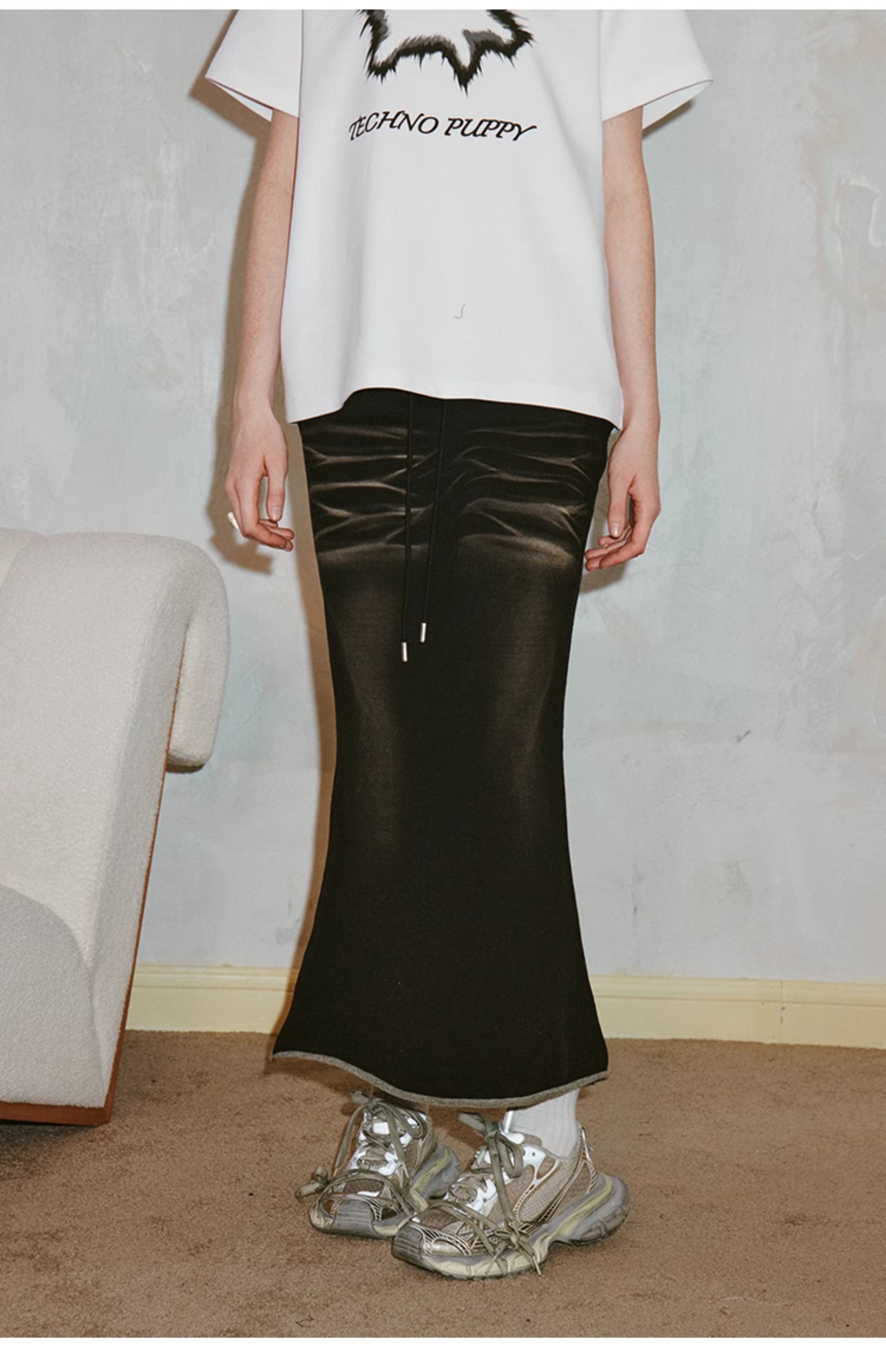 Юбка на бедрах с вымытыми кошачьими усами