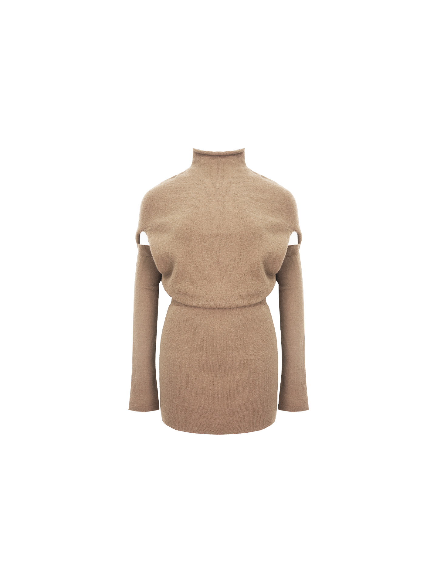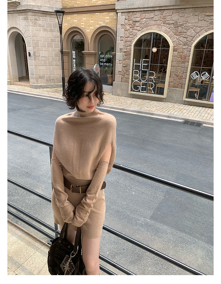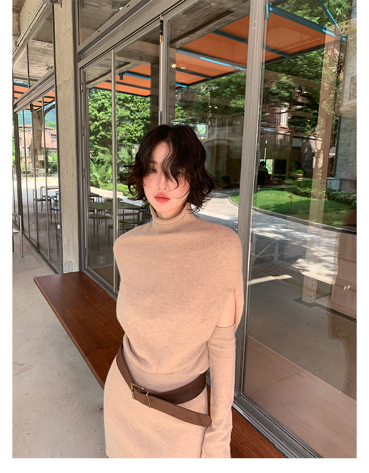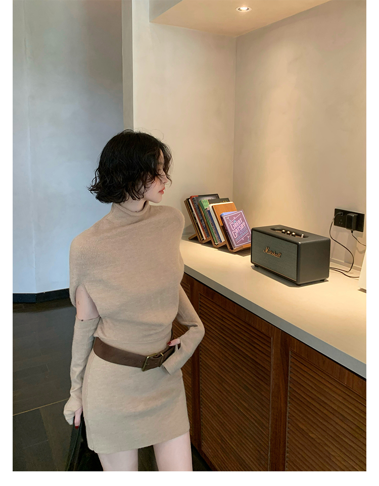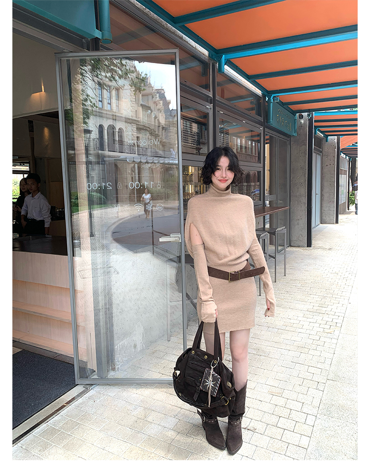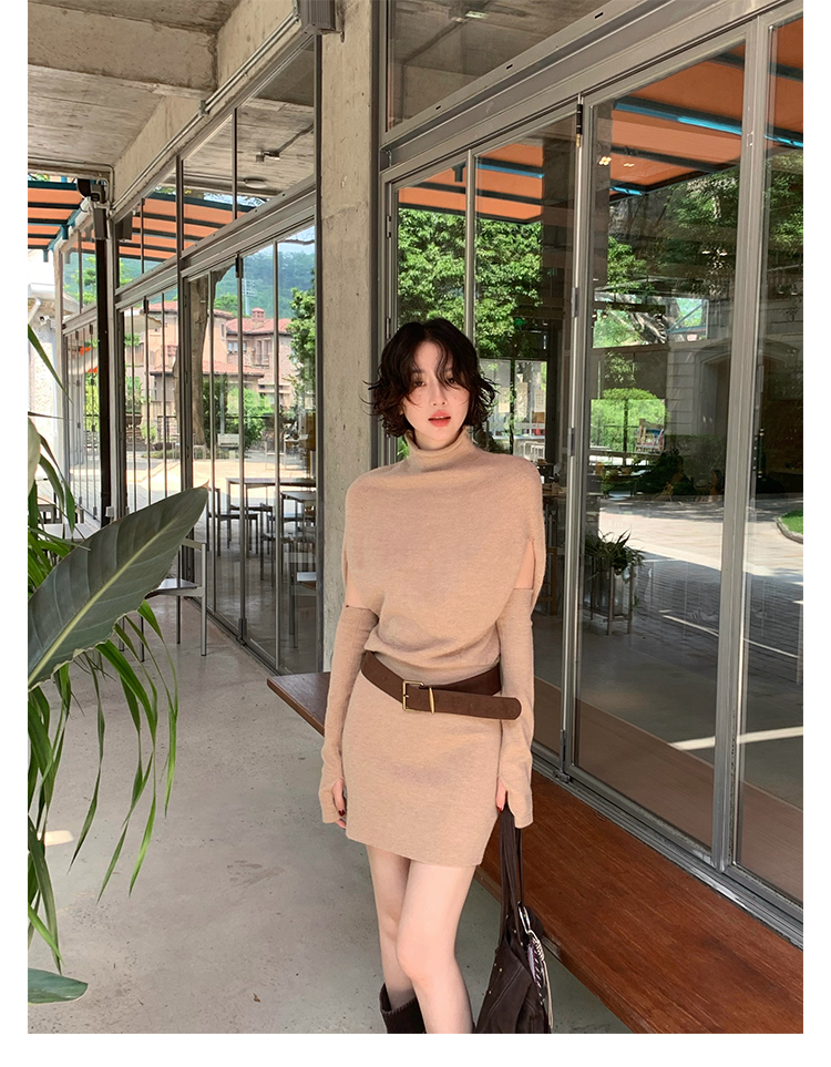 Wine Afternoon Semi-Turtleneck Knit Mini Dress – Retro Fall/Winter 2025