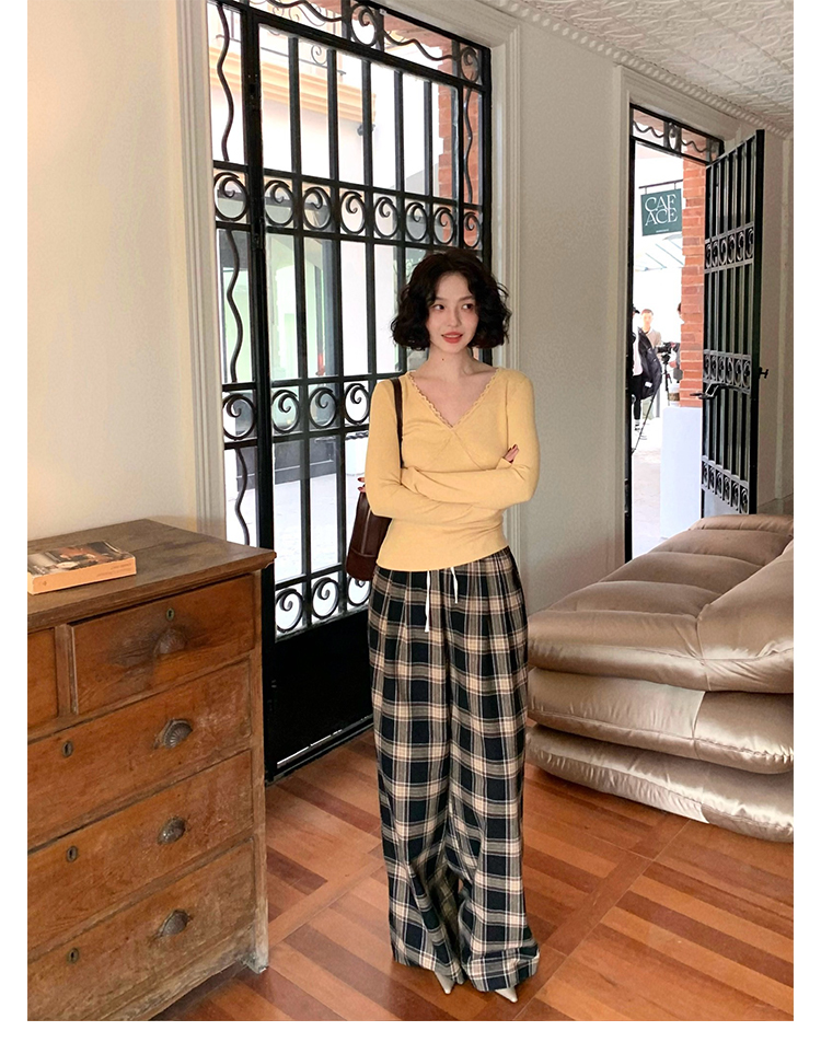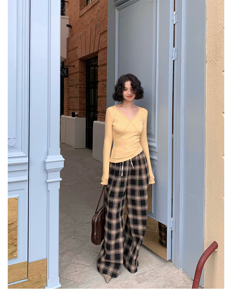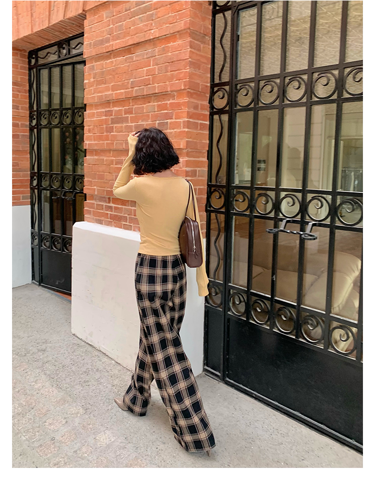 Morning Four Seasons Slim Check High-Waisted Casual Pants – Timeless Fit