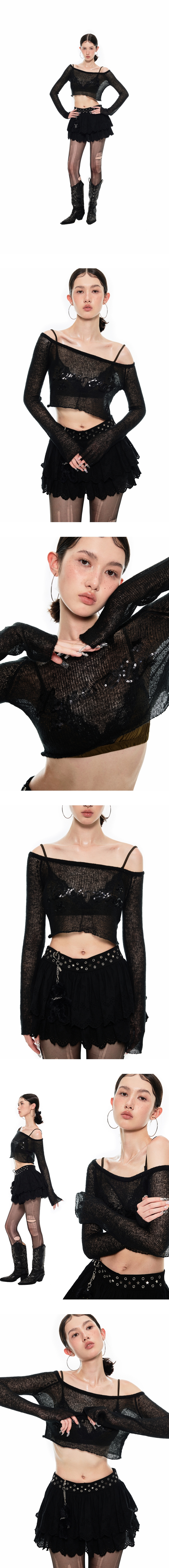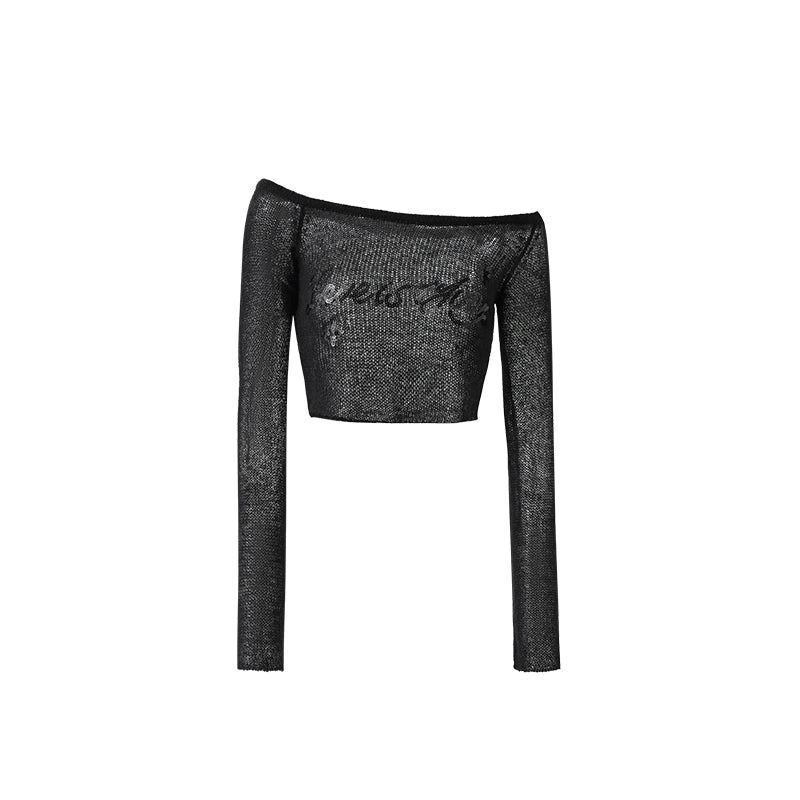Yoo Ji-min Inspired One-Shoulder Knit Cutout Blouse – Slightly Sheer Crop