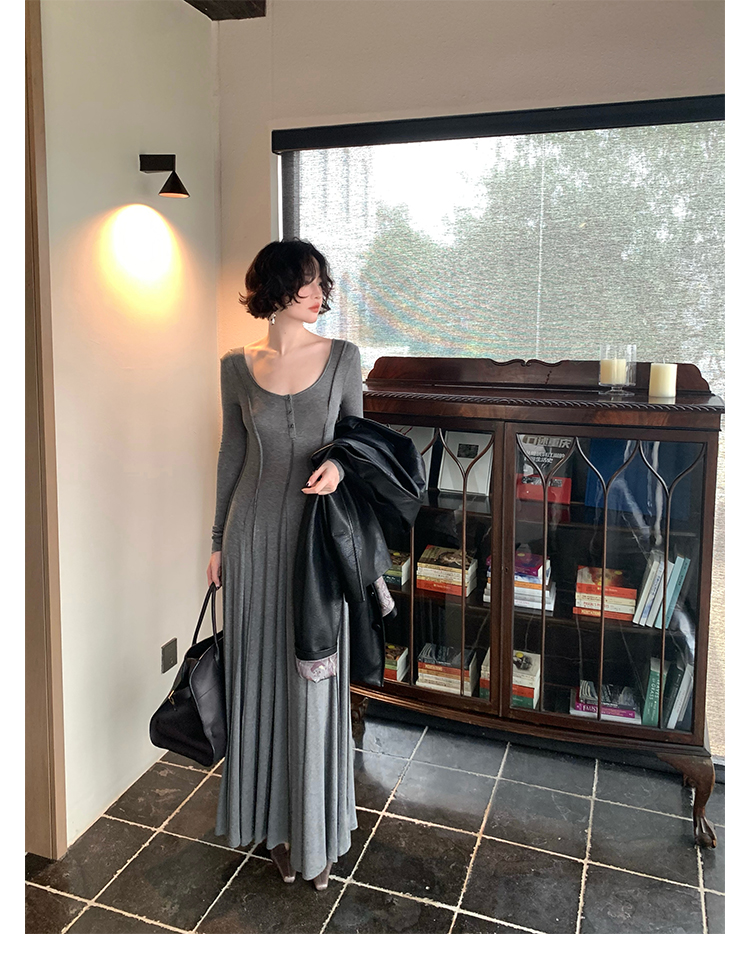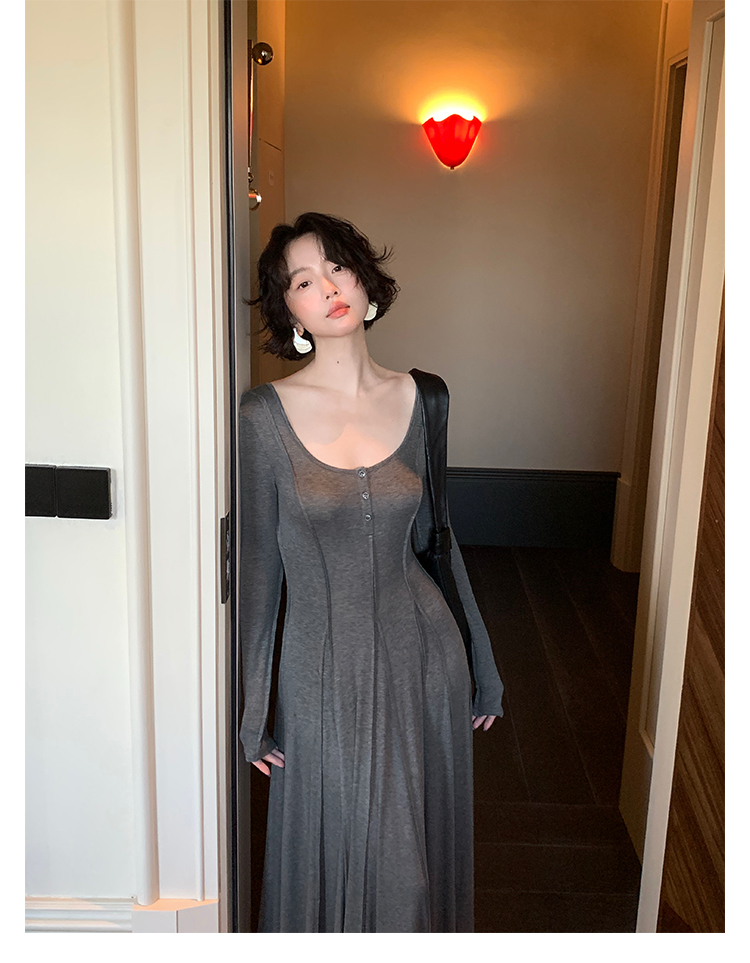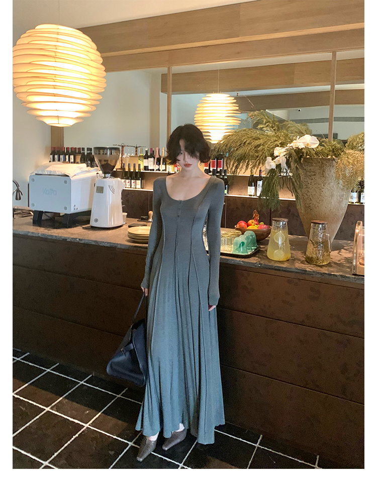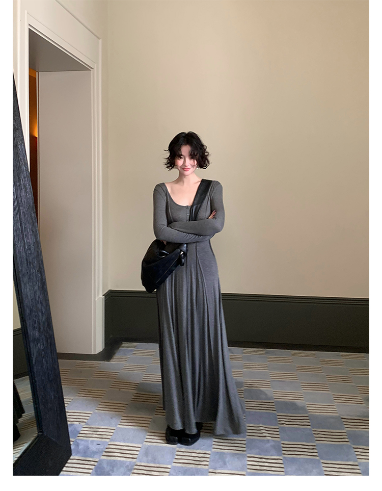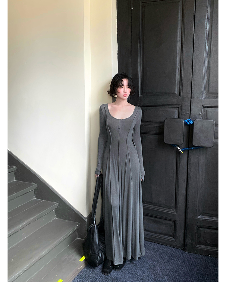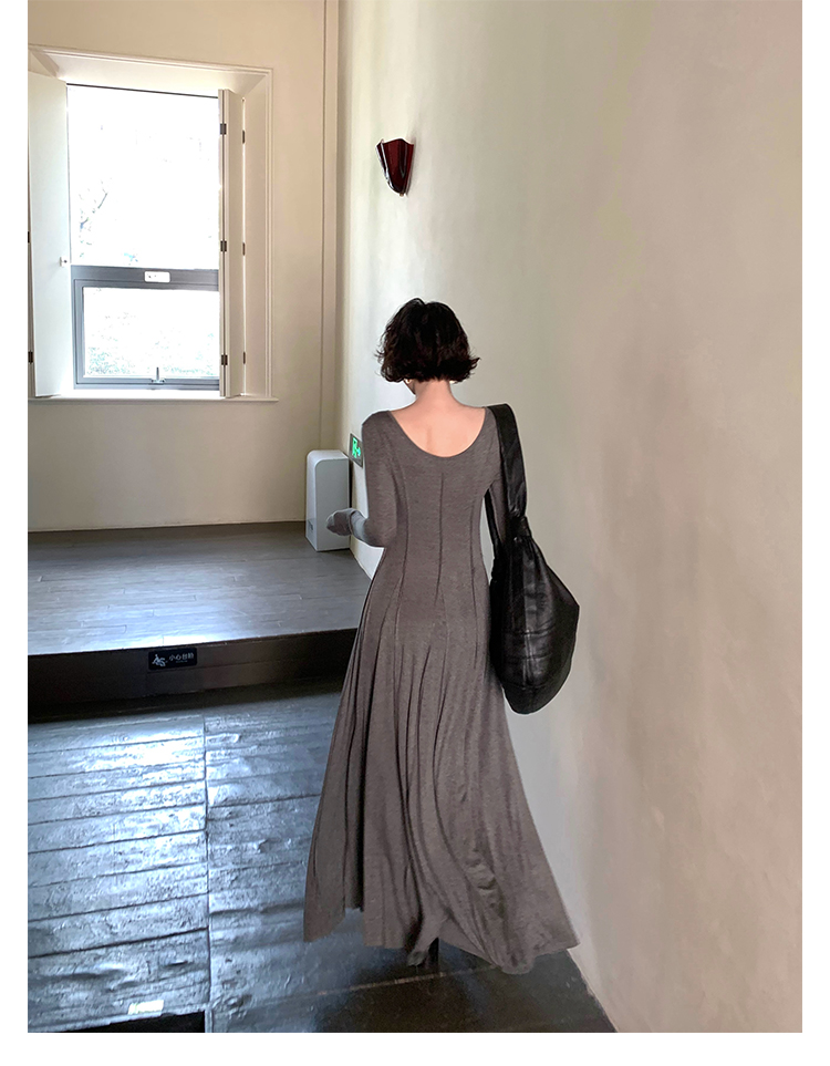 Yunshui Huai Wool-Blend Tencel U-Neck Retro Long Dress – Autumn Elegance