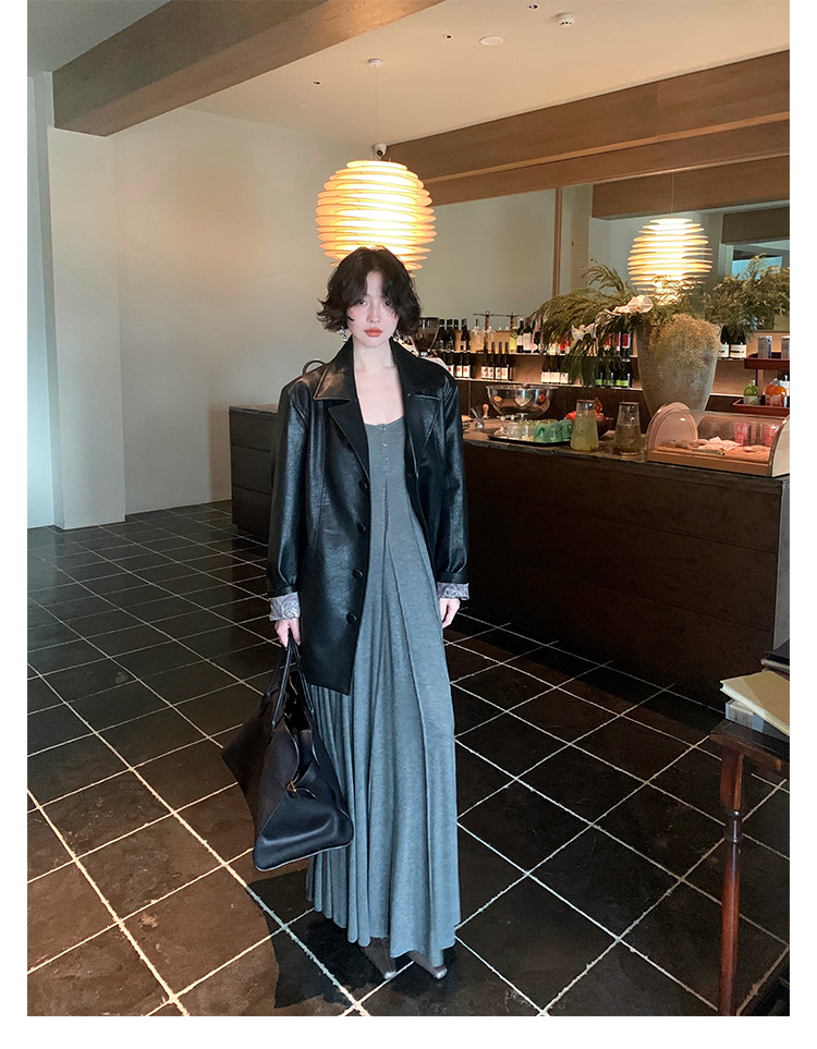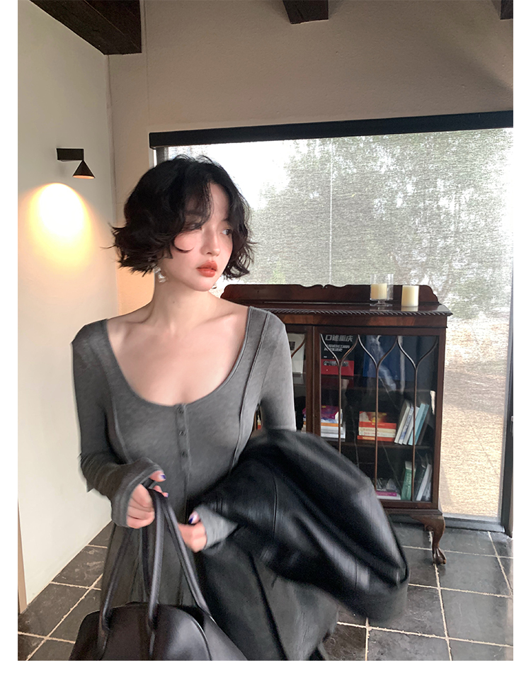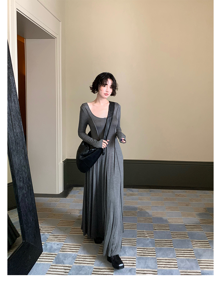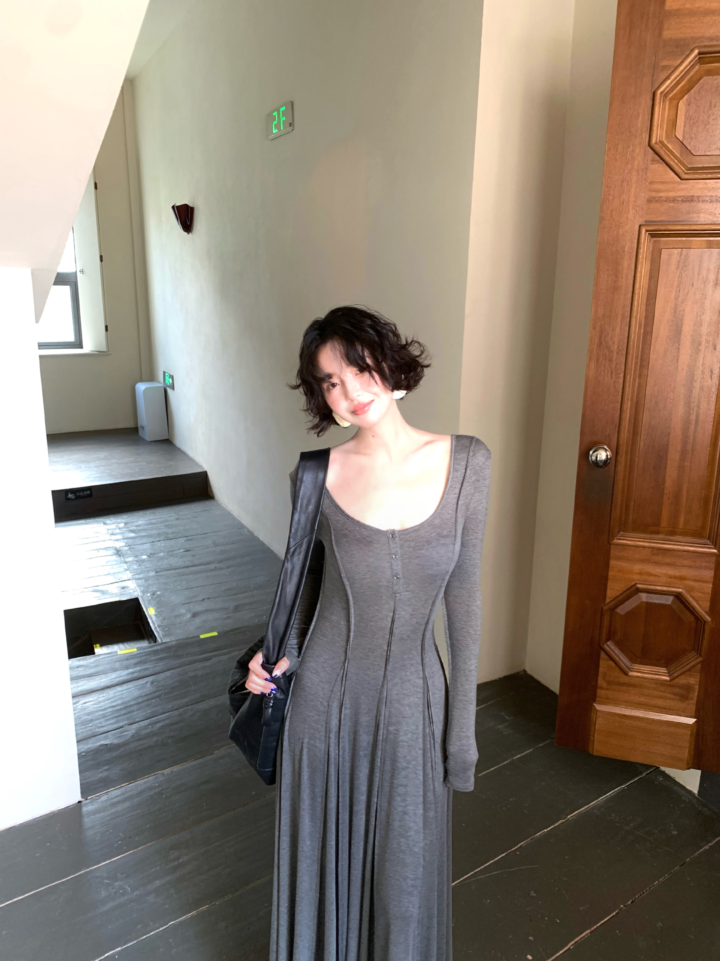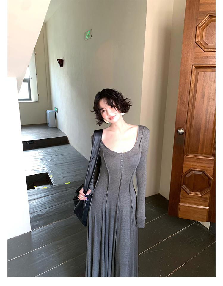 Yunshui Huai Wool-Blend Tencel U-Neck Retro Long Dress – Autumn Elegance